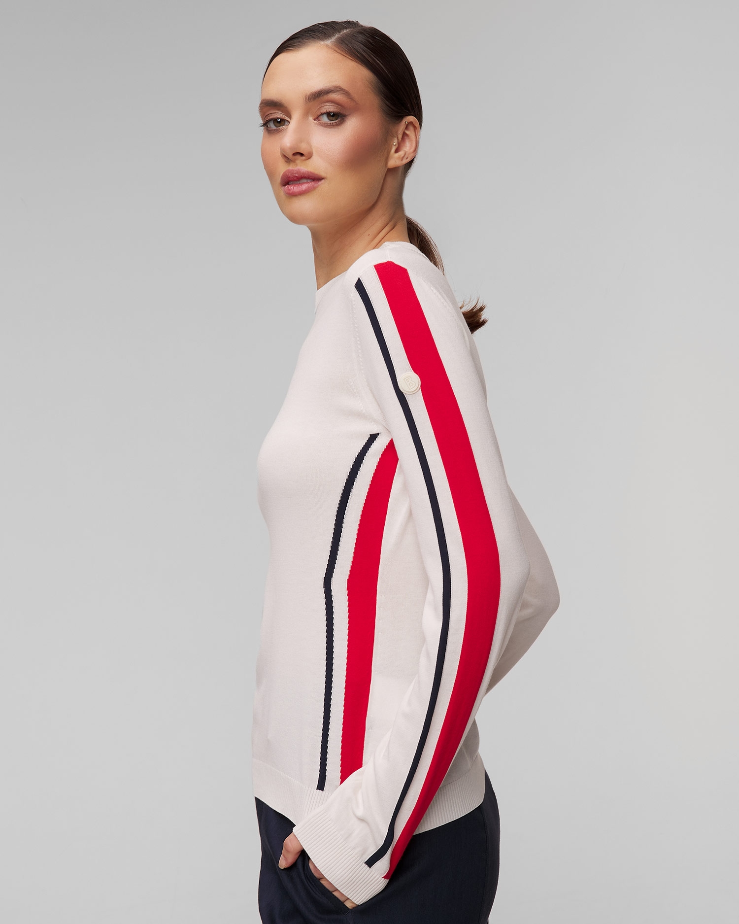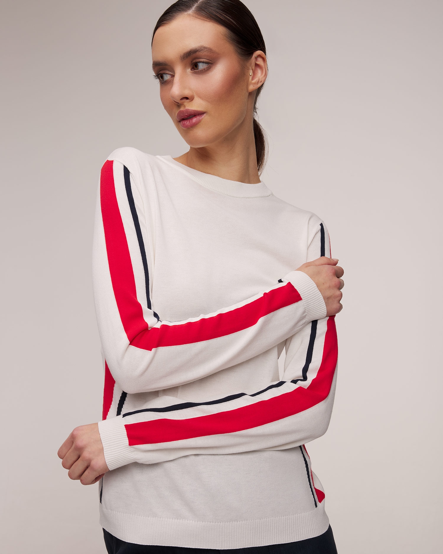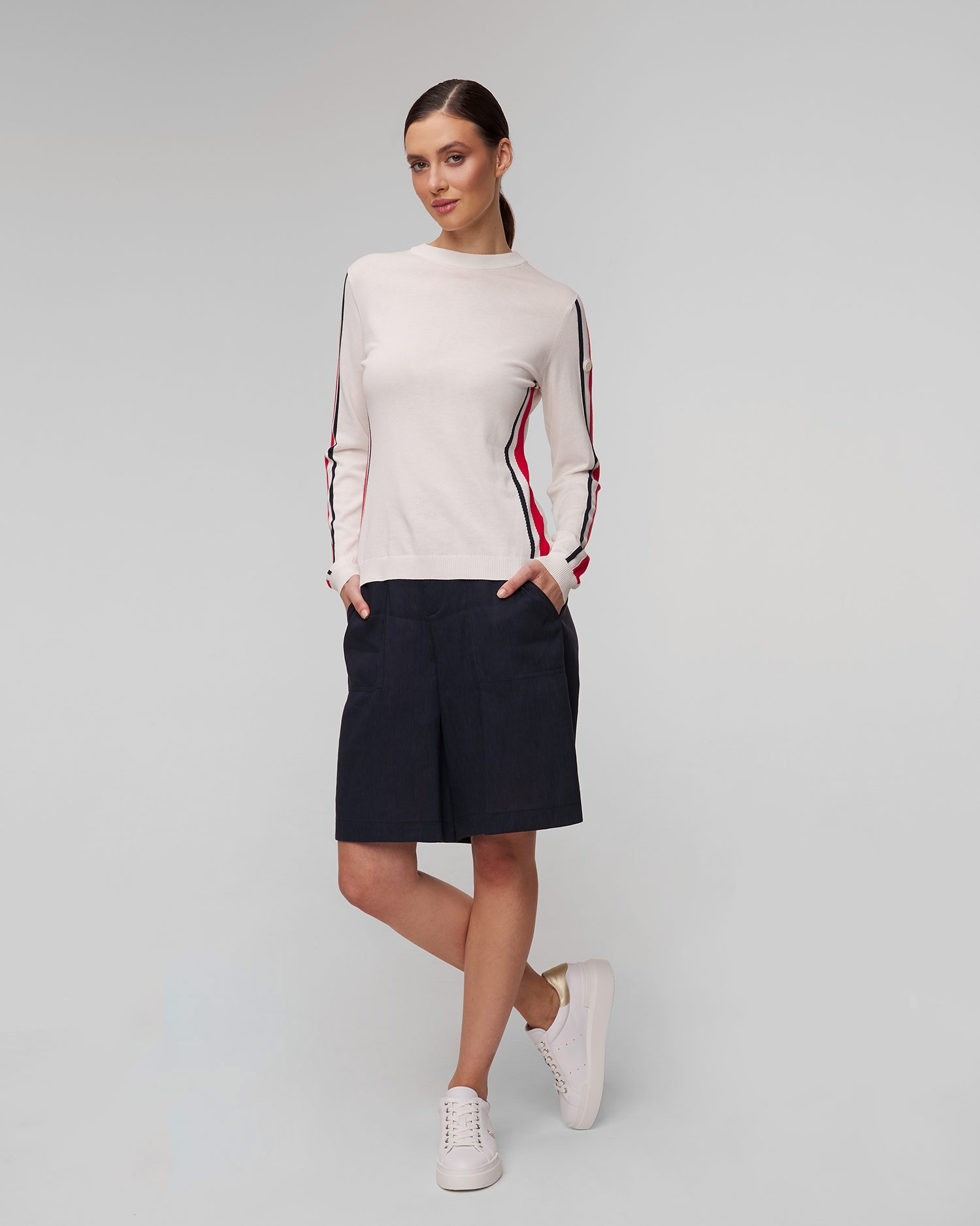 Dámský svetr BOGNER Enja je stylová nabídka na jarní a letní sezónu. Jednoduchý design, vyrobený z pleteniny s viskózou, stylově zvýrazněný kontrastními pruhovanými detaily. Klasický kulatý výstřih, mírně spadlá ramena a žebrované manžety celek módně doplňují.