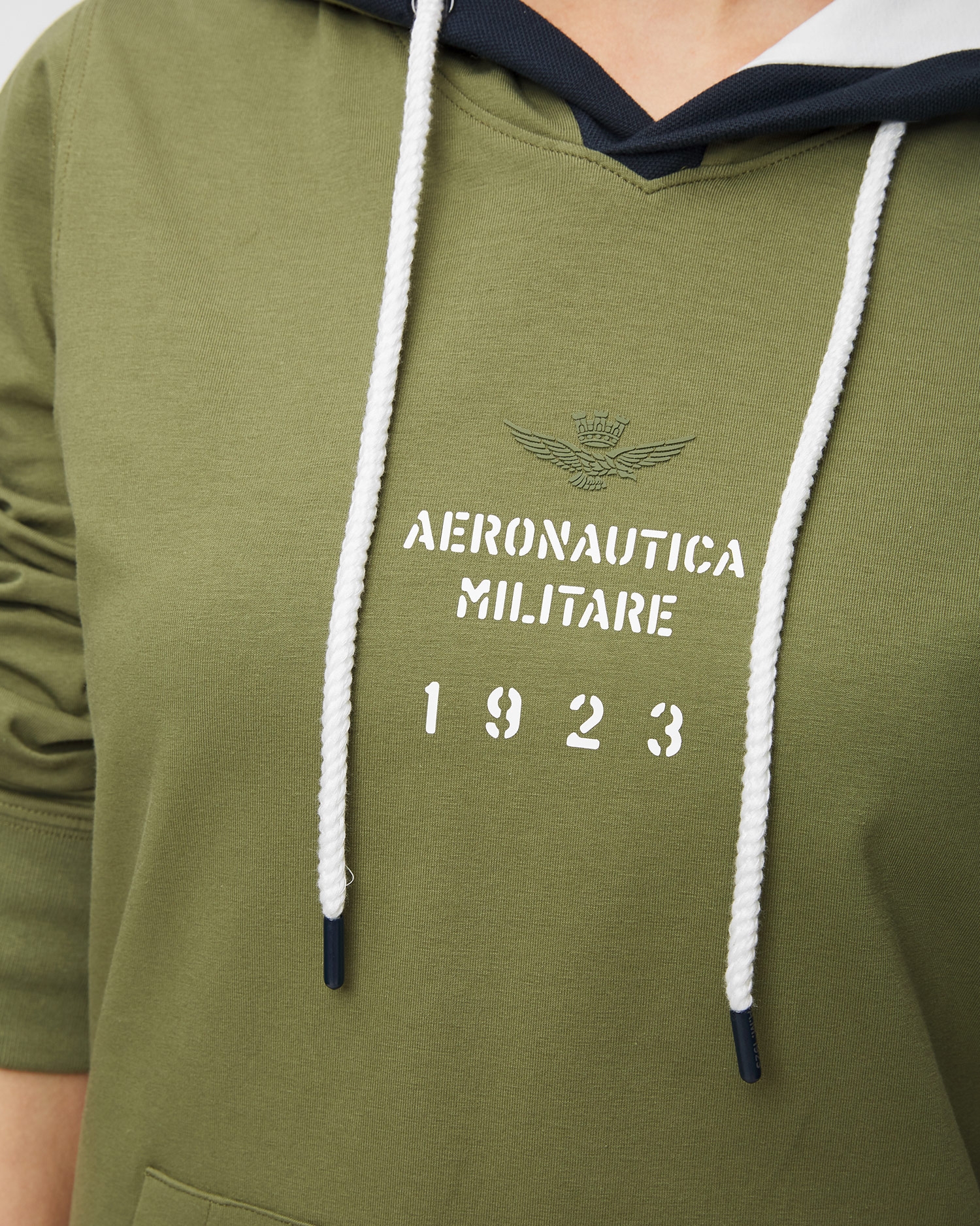 Mikina AERONAUTICA MILITARE je pohodlná nabídka sportovního střihu. Vyrobeno z měkké bavlny s přídavkem elatanu s přirozenými prodyšnými vlastnostmi. Postará se o maximální pohodlí a komfort při používání a zároveň zajistí plnou volnost pohybu. Mikina s kapucí a poutavou výplní v kontrastní barvě. Na přední straně klokaní kapsa a výrazný potisk značky. Spodní část mikiny a rukávy zakončené hladkým lemem.