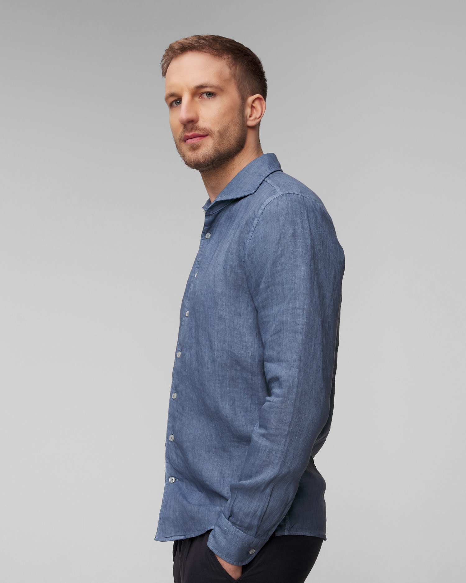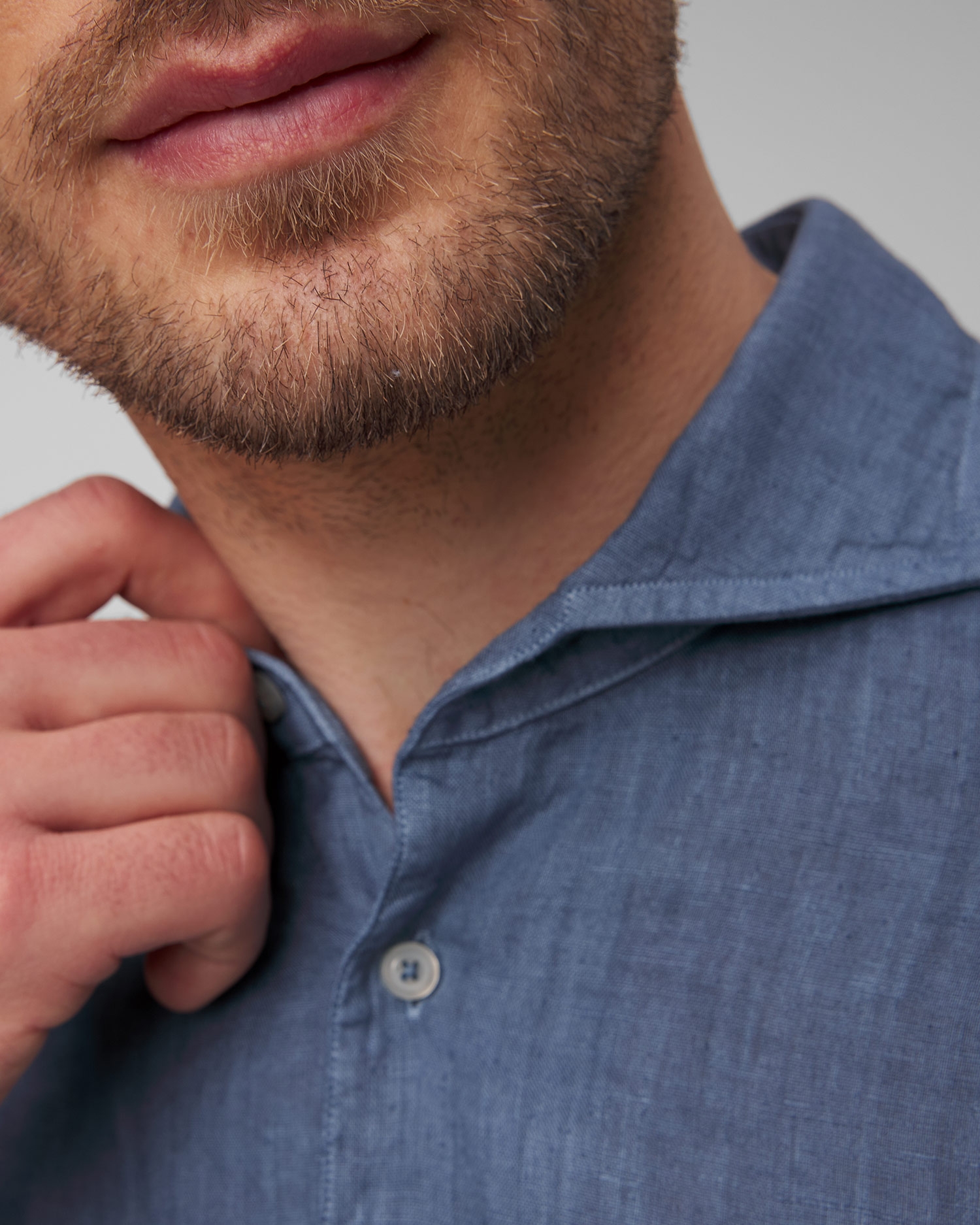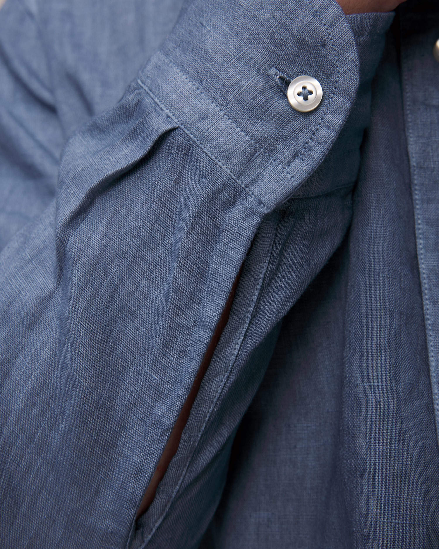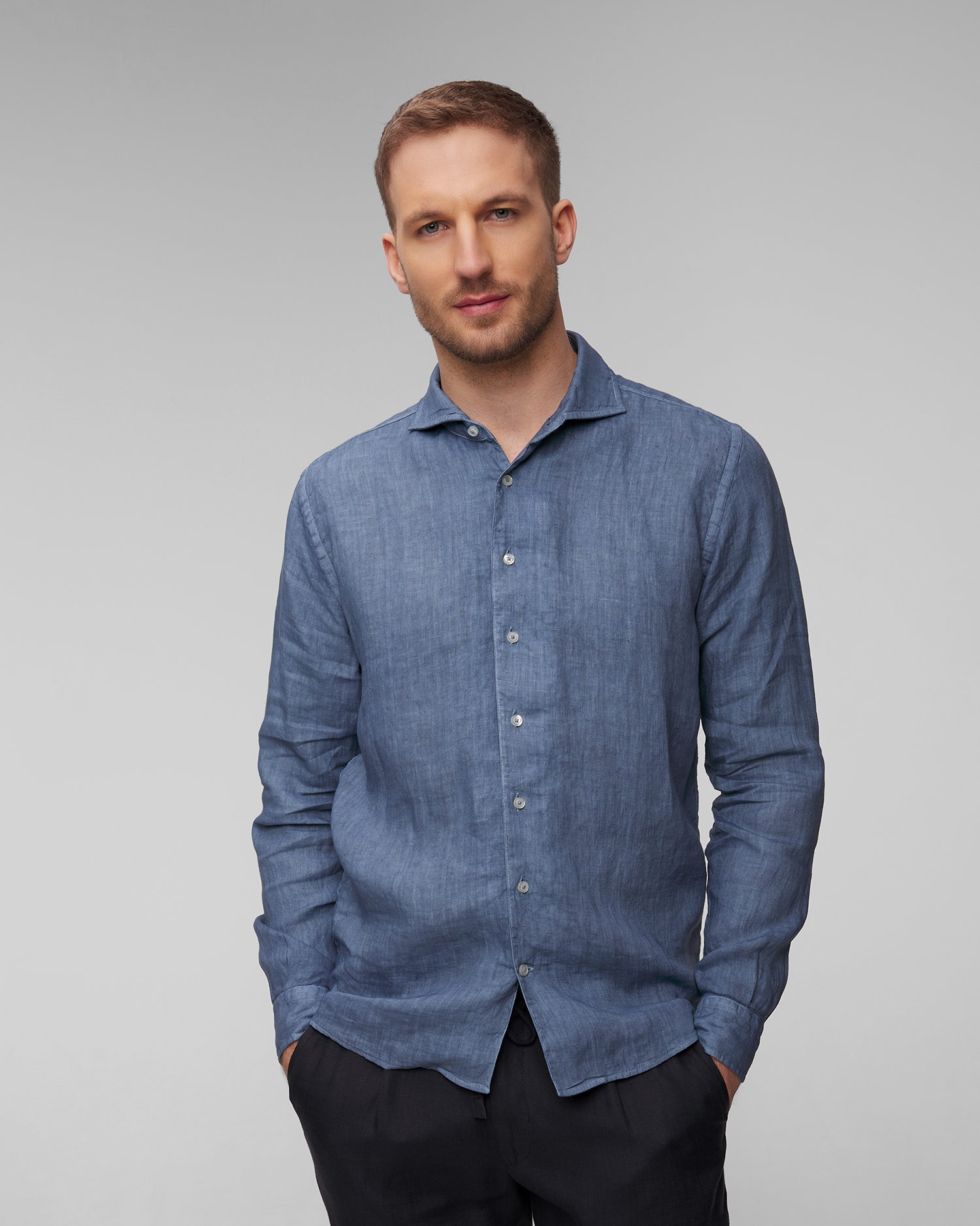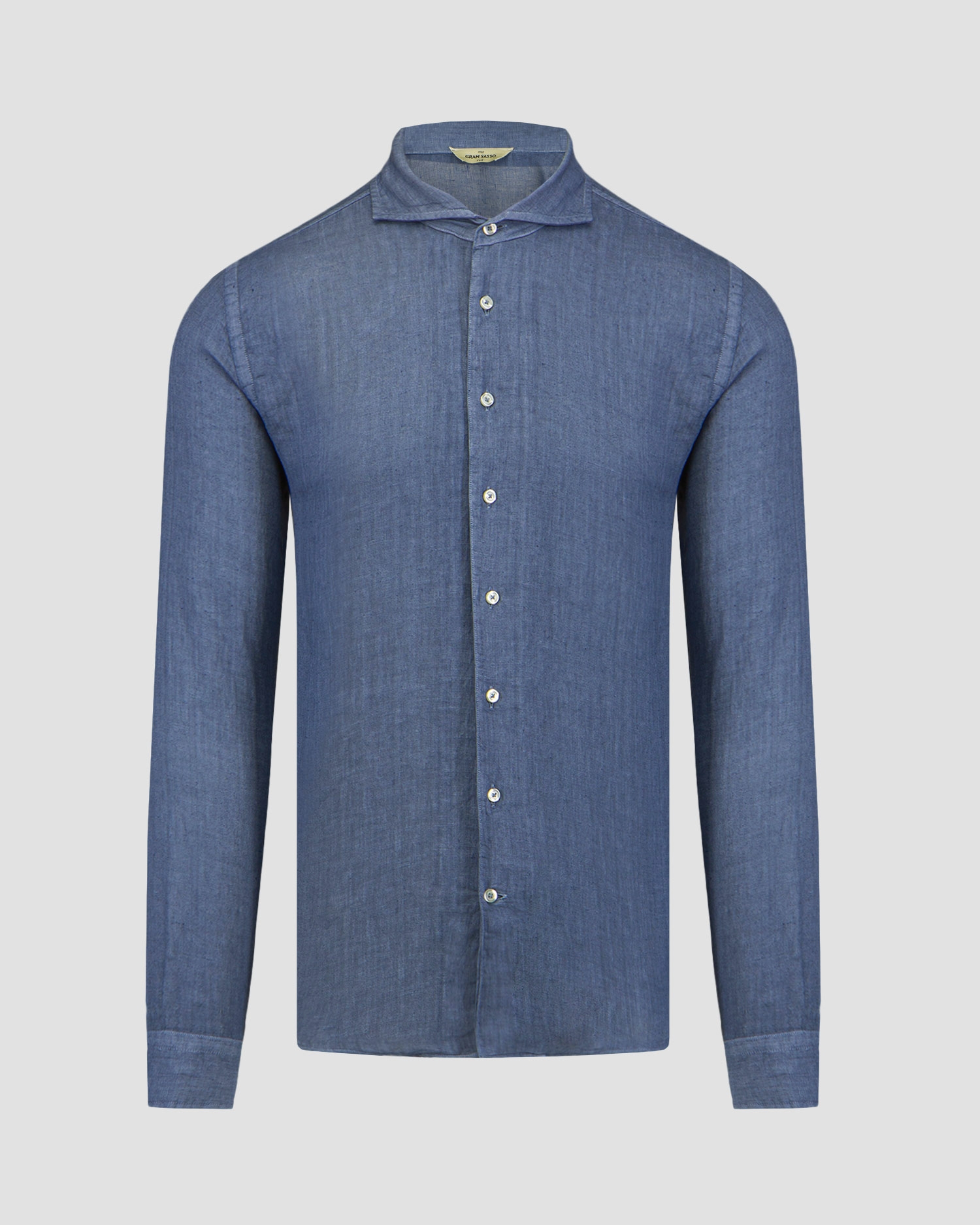 Lněná košile Gran Sasso s nádechem retro charakteru je dokonalou kombinací všestranného a pohodlného stylu vhodného pro letní, každodenní i večerní styling. Vyrobeno z lnu, které díky svým přirozeným vlastnostem propouští vzduch a dodává Vám pocit chladu, abyste se po celou dobu cítili příjemně a svěže. Zapínání na knoflíky. Dlouhé rukávy zakončené manžetami. Francouzský límec s široce rozmístěnými rohy dodává méně formální vzhled. Prošívání na zádech pro lepší přizpůsobení košile postavě.
