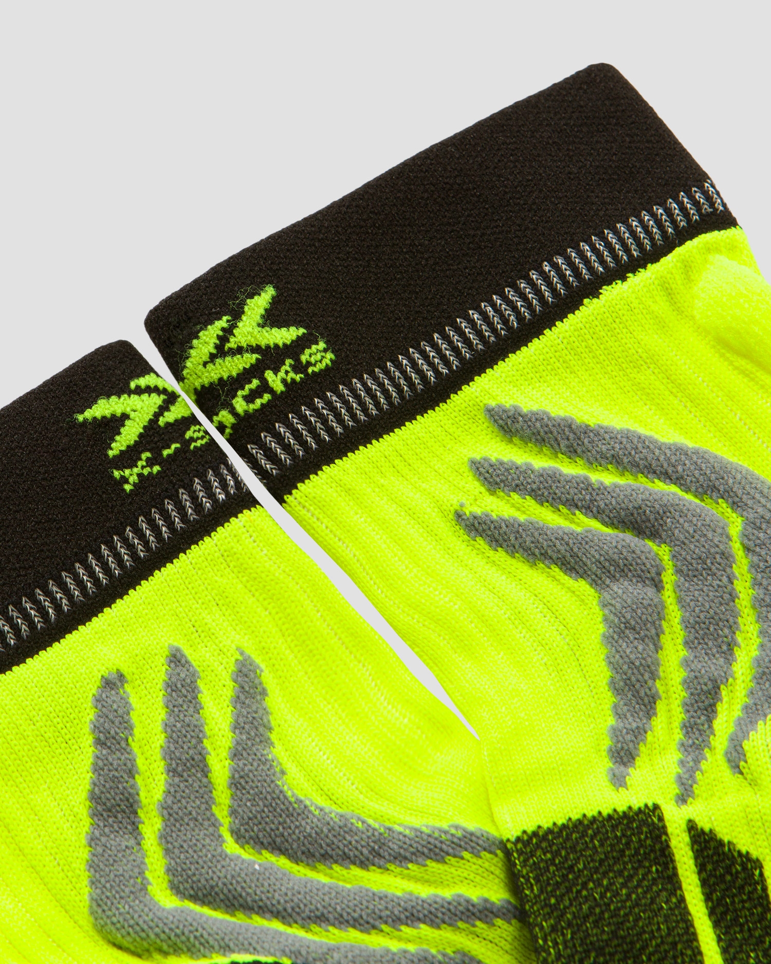 Superlehké ponožky pro cyklisty X-Socks BIKE HERO UL 4.0 pomáhají navýšit výkonnost sportovce při jízdě na kole. S přispěním až 12 patentů výrobce se ponožky postarají o navýšení výkonnosti svalů při sportování skrze jejich efektivní ochlazování bez nutnosti vydávat nadměrnou energii z vlastního těla během jízdy na bicyklu. Ponožky byly vytvořeny s cílem udržet teplotu pokožky v ideální hodnotě 37° C, aby se chodidla při aktivním pohybu nepřehřívala. Zároveň usnadňují proudění krve v podkožních vrstvách, kam vlásečnice přivádějí kyslík a živiny. Kanálky Air-Conditioning Channel® 4.0 se starají o intenzivní ventilaci chodidel a odvádění vlhkosti od pokožky, kde se následně pot lépe odpařuje. Pod ploskou nohy je látka ponožek vybavena technologií Instep Protector. Nejenže napomáhá odvětrávání spodní části chodidla, ale jejím hlavním úkolem je tlumit nárazovou energii a snížením tlaku zabránit vzniku puchýřů. Stahovací vlastnosti technologie Suppronation® X-Cross® Bandage stabilizují chodidla v jejich přirozeném ohybu, omezují nepřirozené pohyby, nadměrnou pronaci a supinaci a jsou proto nápomocná při šlapání v pedálech kola. Elastický pásek Aktiv-Bund umožňuje lepší dopasování podle tvaru nohou a držení ponožek na svém místě bez omezení pohybu nebo tlačení. Ponožky BIKE 4.0 HERO UL 4.0 od X-Socks dokonale chrání chodidla a prsty před otlačeninami, zabraňují srolování látky, speciální chránič Lambertz-Nicholson Achilles Tendon Protector 4.0 snižuje riziko přetížení a přetažení Achillovy šlachy a sedření okolní jemné kůže pomocí měkkého polštářku okolo. Nalezneme na nich také chránič přední části chodidla a špiček prstů, paty, kotníků. Použitá dutá vlákna Bisentio® jsou odolná, netřepí se a dokáží mírnit tlak a pohlcovat otřesy. Lehká příze Mythlan® se vyznačuje vlastnostmi zabraňujícími množení bakterií, díky čemuž se ani po mnohahodinovém nošení a běhání neobjevuje nepříjemný zápach. Látka ponožek si poradí se vznikem nepříjemných zápachů, vytvářených bakteriemi, a to díky značkou navrženým umělým vláknům Skin Nodor®. Ta uvolňují do okolního vlhkého prostředí ionty, nepříznivé pro rozvoj bakterií, ale současně nedráždící lidskou pokožku. Na manžetě každé z ponožek se nachází reflexní pásek Albedo® 360° Reflective Technology, jehož úlohou je při nasvětlení za snížené viditelnosti a ve tmě odrážet světlo, aby byl cyklista vidět, čímž se navyšuje bezpečnost tréninku zejména na silnicích. Pásek odráží světlo bez ohledu na úhel jeho dopadu. Všechny modely ponožek ze série X-Socks® 4.0 vznikly díky využití jedinečných patentovaných metod výroby, do nichž se promítly důmyslné, výzkumem a vývojem ustálené procesy, jejichž cílem je ochrana chodidel a navýšení komfortu nošení. Advanced Foot Protection System zaměřený na ochranu a stabilizaci chodidel byl navržen takovým způsobem, aby co možná nejlépe odpovídal dané sportovní disciplíně, pro niž jsou ponožky předurčeny. Každý z párů ponožek X-Socks® 4.0 proto bude pro sportovce nejlepší oporou. Ponožky BIKE HERO UL 4.0 od X-Socks se stanou ideálním řešením pro každého, kdo hledá vynikající cyklistické ponožky na trénink, jejichž předností je funkčnost a nízká hmotnost.