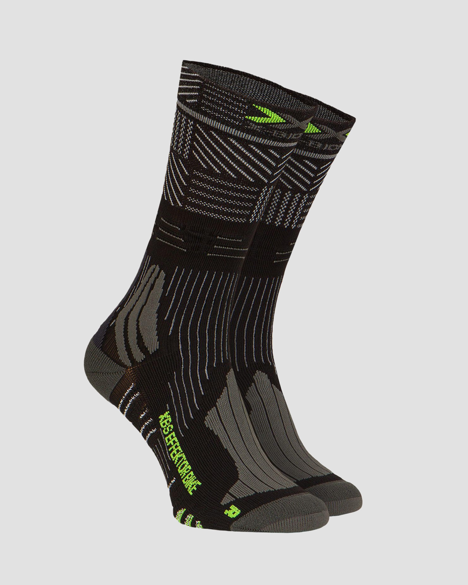 EFFEKTOR BIKE 4.0 od X-Socks představují nejvyšší úroveň kompresních vlastností látky, tentokrát v provedení sportovních ponožek pro cyklisty. Patentovaný systém X-Bionic® Partialkompression® se spolu s až 16 dalšími technologiemi značky postará o navýšení výkonnosti svalů během jízdy na kole skrze jejich efektivní ochlazování bez nutnosti vydávat nadměrnou energii z vlastního těla, a to vše za účelem dosažení lepších sportovních výsledků. Ponožky byly vytvořeny s cílem udržet teplotu pokožky v ideální hodnotě 37° C, aby se chodidla při aktivním pohybu nepřehřívala. Zároveň usnadňují proudění krve v podkožních vrstvách, kam vlásečnice přivádějí kyslík a živiny. Kanálky Air-Conditioning Channel® 4.0 se starají o intenzivní ventilaci chodidel a odvádění vlhkosti od pokožky, kde se následně pot lépe odpařuje. Pod ploskou nohy je látka ponožek vybavena technologií Instep Protector with Air-Cool Stripes. Jejím hlavním úkolem je tlumit nárazovou energii a snížením tlaku zabránit vzniku puchýřů, vedle toho také pomáhá k lepší termoregulaci nohou a ochlazování. Anatomicky tvarovaná výstelka Effektor® byla přizpůsobena pro levé i pravé chodidlo, chrání jej a poskytuje komfort i při dlouhodobém nošení a námaze, zatímco stahovací vlastnosti technologie Suppronation® Bandage stabilizují chodidla v jejich přirozeném ohybu, snižují riziko podvrtnutí kotníku a jiné nepřirozené pohyby, regulují nadměrnou pronaci a supinaci. Ponožky EFFEKTOR BIKE 4.0 od X-Socks dokonale chrání chodidla a prsty před otlačeninami, zabraňují srolování látky. Speciální chránič Lambertz-Nicholson Achilles Tendon Protector 4.0 snižuje riziko přetížení a přetažení Achillovy šlachy a sedření okolní jemné kůže pomocí měkkého polštářku okolo. Látka ponožek si poradí se vznikem nepříjemných zápachů, vytvářených bakteriemi, a to díky značkou navrženým umělým vláknům Skin Nodor®. Ta uvolňují do okolního vlhkého prostředí ionty, nepříznivé pro rozvoj bakterií, ale současně nedráždící lidskou pokožku. Použitá dutá vlákna Bisentio® jsou odolná, netřepí se a dokáží mírnit tlak a pohlcovat otřesy. Lehká příze Mythlan® se vyznačuje vlastnostmi zabraňujícími množení bakterií, díky čemuž se ani po mnohahodinovém nošení a běhání neobjevuje nepříjemný zápach ani po dlouhých hodinách, strávených v sedle bicyklu překonáváním dlouhých tras. Na manžetě každé z ponožek se nachází reflexní pásek Albedo® 360° Reflective Technology, jehož úlohou je při nasvětlení za snížené viditelnosti a ve tmě odrážet světlo, aby byl cyklista vidět, čímž se navyšuje bezpečnost tréninku zejména na silnicích. Pásek odráží světlo bez ohledu na úhel jeho dopadu. Všechny modely ponožek ze série X-Socks® 4.0 vznikly díky využití jedinečných patentovaných metod výroby, do nichž se promítly důmyslné, výzkumem a vývojem ustálené procesy, jejichž cílem je ochrana chodidel a navýšení komfortu nošení. Advanced Foot Protection System zaměřený na ochranu a stabilizaci chodidel byl navržen takovým způsobem, aby co možná nejlépe odpovídal dané sportovní disciplíně, pro niž jsou ponožky předurčeny. Každý z párů ponožek X-Socks® 4.0 proto bude pro sportovce nejlepší oporou. Ponožky X-Socks EFFEKTOR BIKE 4.0 se stanou ideálním řešením pro každého, kdo hledá vynikající běžecké ponožky s cílem dosažení stále lepších sportovních výsledků.