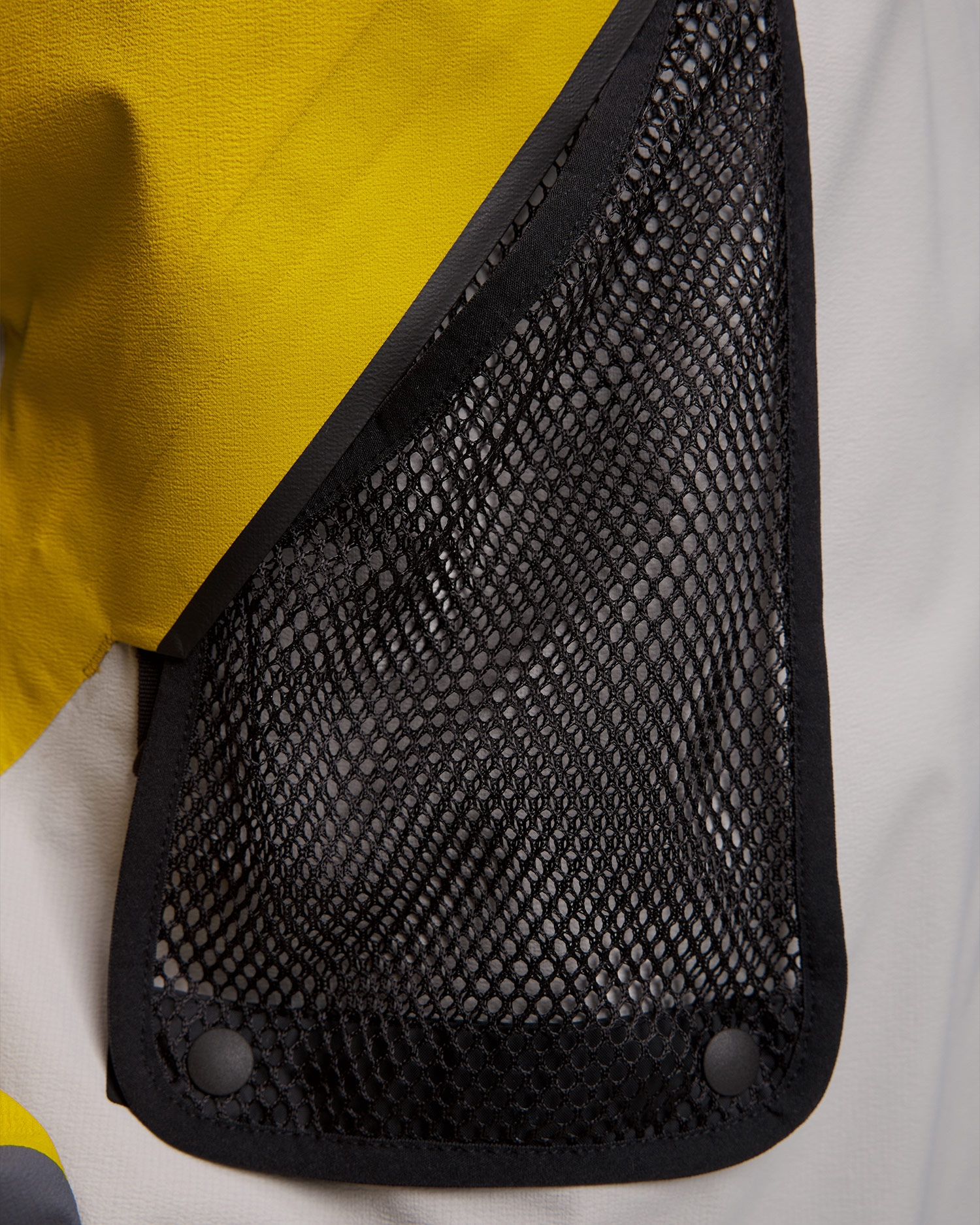 Bunda má dvě kapsy umístěné nad lezeckým úvazkem. Oba jsou vybaveny síťovaným materiálem, který funguje jako ventilace, zajišťuje cirkulaci vzduchu a komfort nošení. Byly také navrženy tak, aby fungovaly jako vnitřní kapsa, která Vám umožní uložit mokré rukavice nebo čepice.