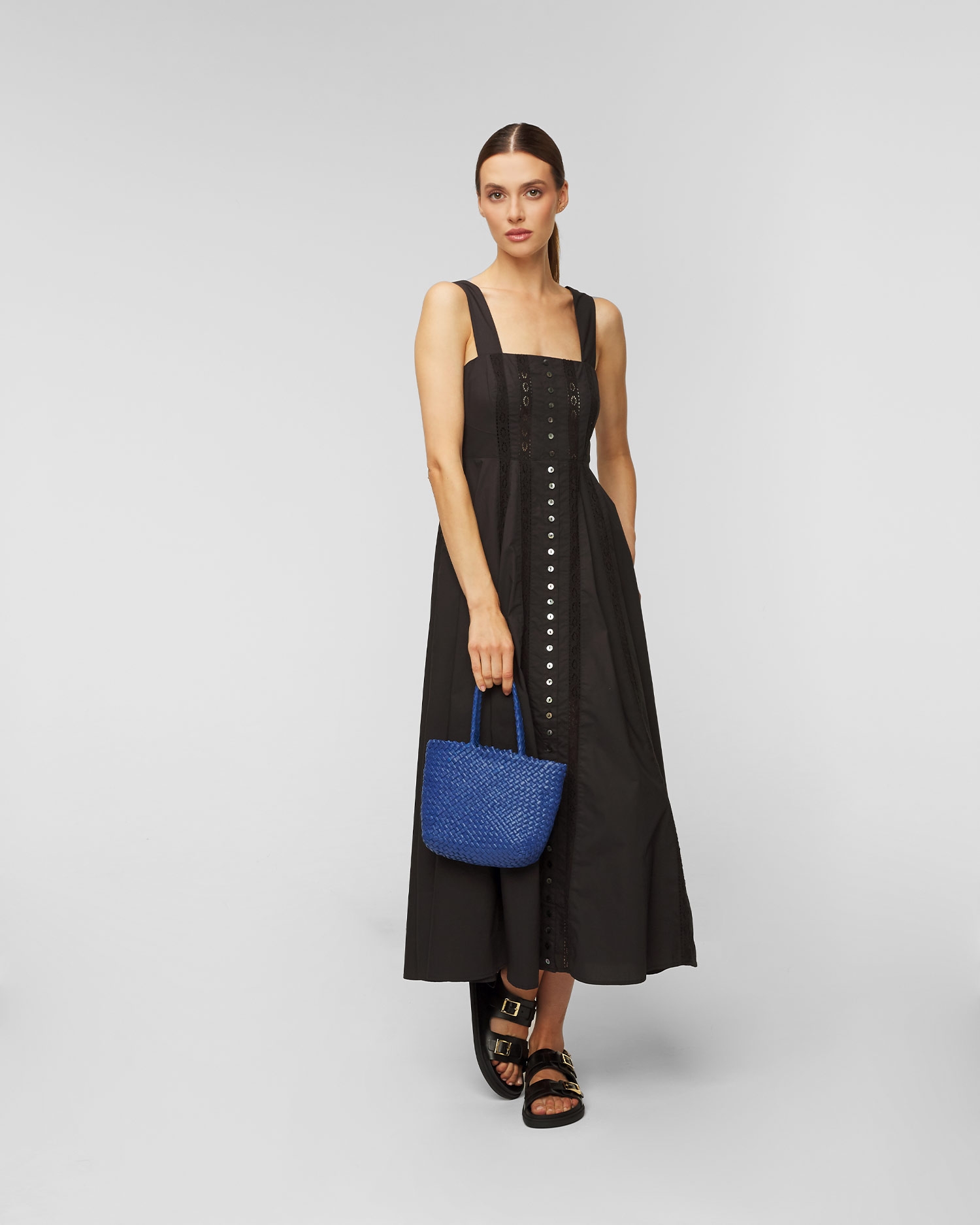 Tkaná taška Dragon Diffusion Mini Inside-Out je navržena jako praktická malá taška přes tělo díky nastavitelnému ramennímu popruhu. Po schování popruhu dovnitř bude fungovat jako tradiční košík. Má unikátní vzor nepravidelně tkaných keprových kožených řemínků. Uvnitř kapsa pro uložení kreditních karet nebo osobních dokladů.