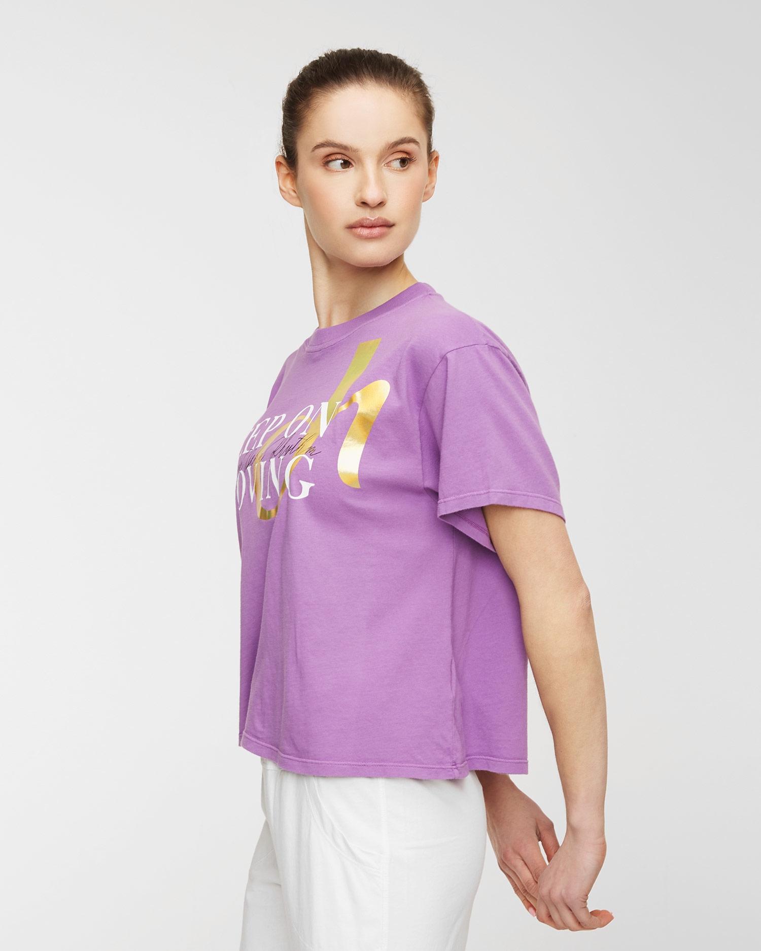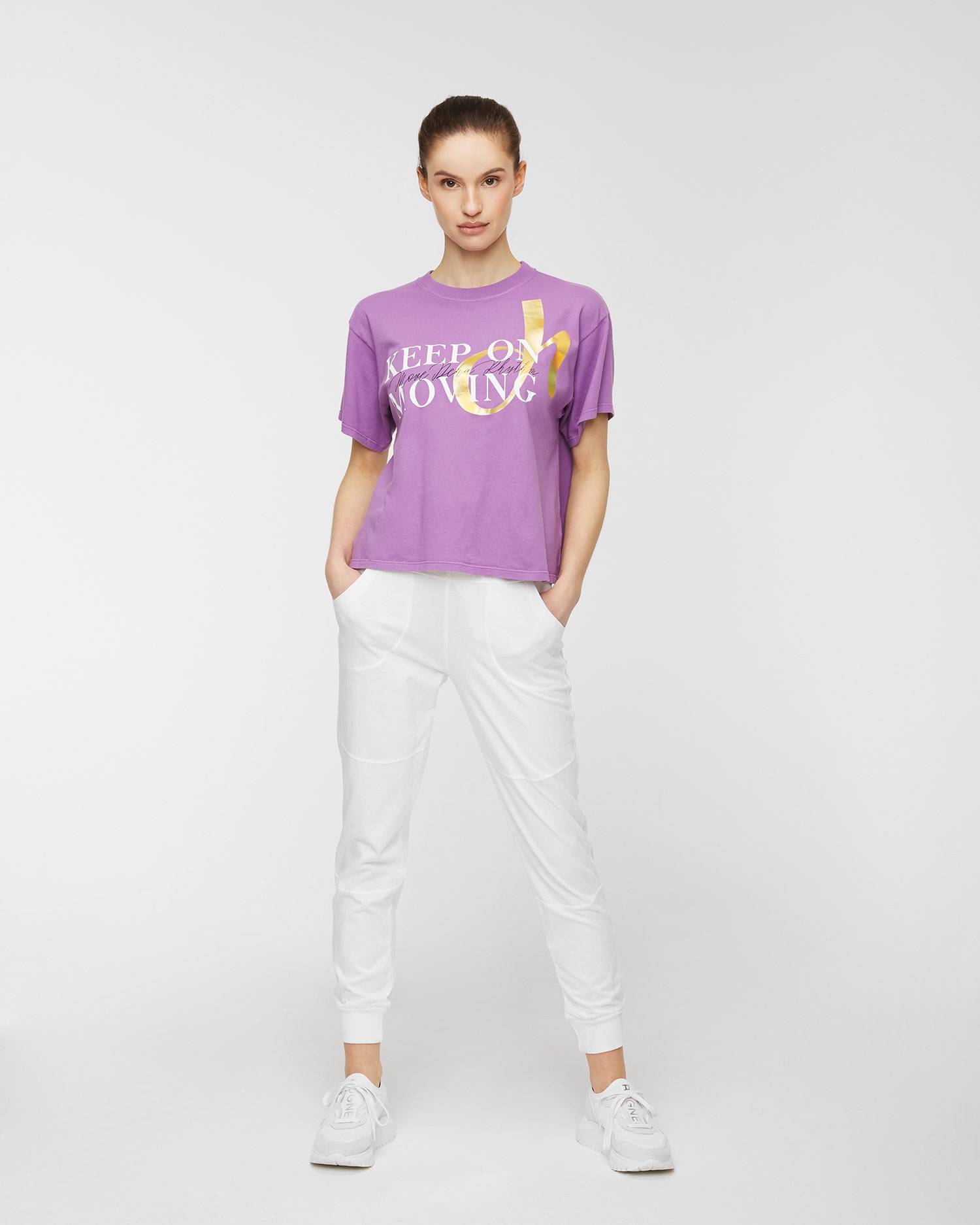 Tričko DEHA MOVE zaujme motivačním potiskem se zlatým logem. Funguje dobře nejen při tanečním tréninku, ale i na denní bázi. Vyrobeno z organické bavlny, šetrné k pokožce a životnímu prostředí. Kulatý výstřih zakončený lemy. Volný, zkrácený střih se sníženou linií ramen zaručuje volnost pohybu. Na krku je podepsaný odznak