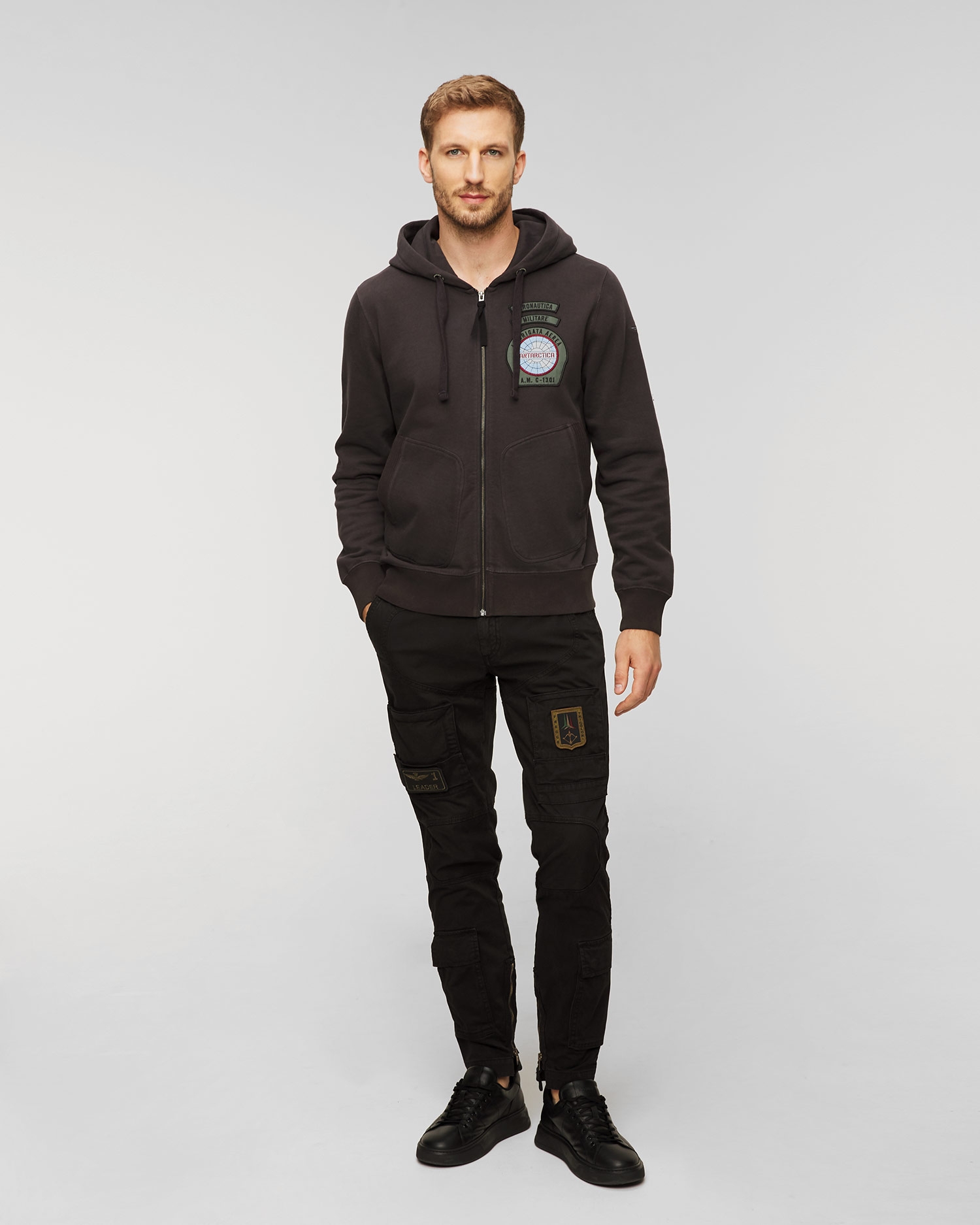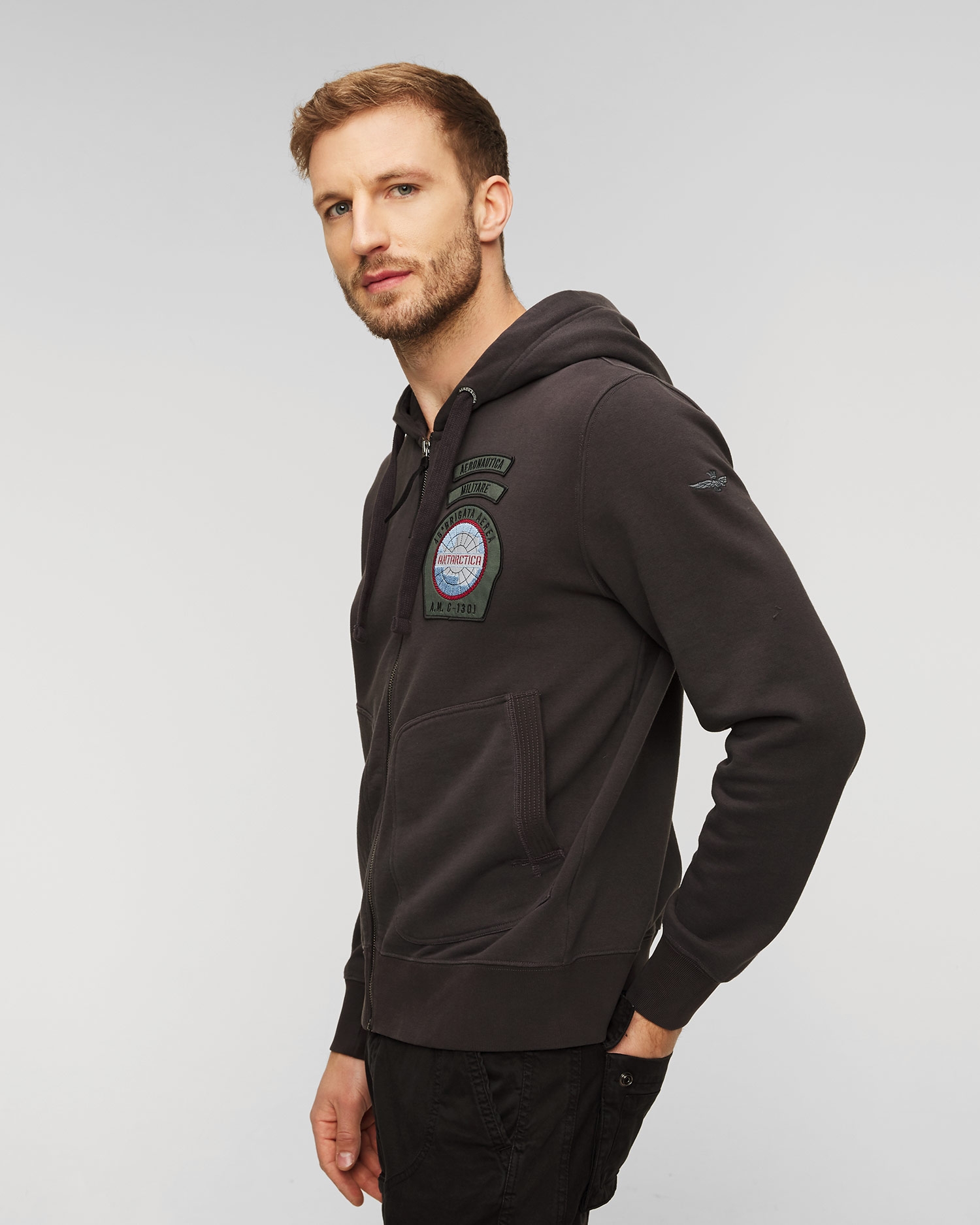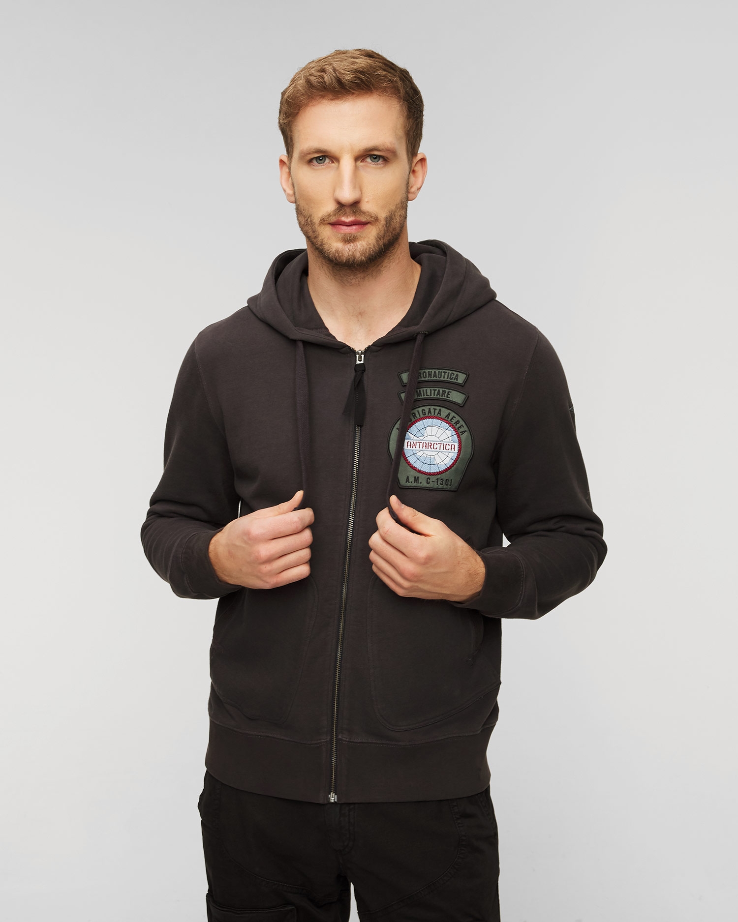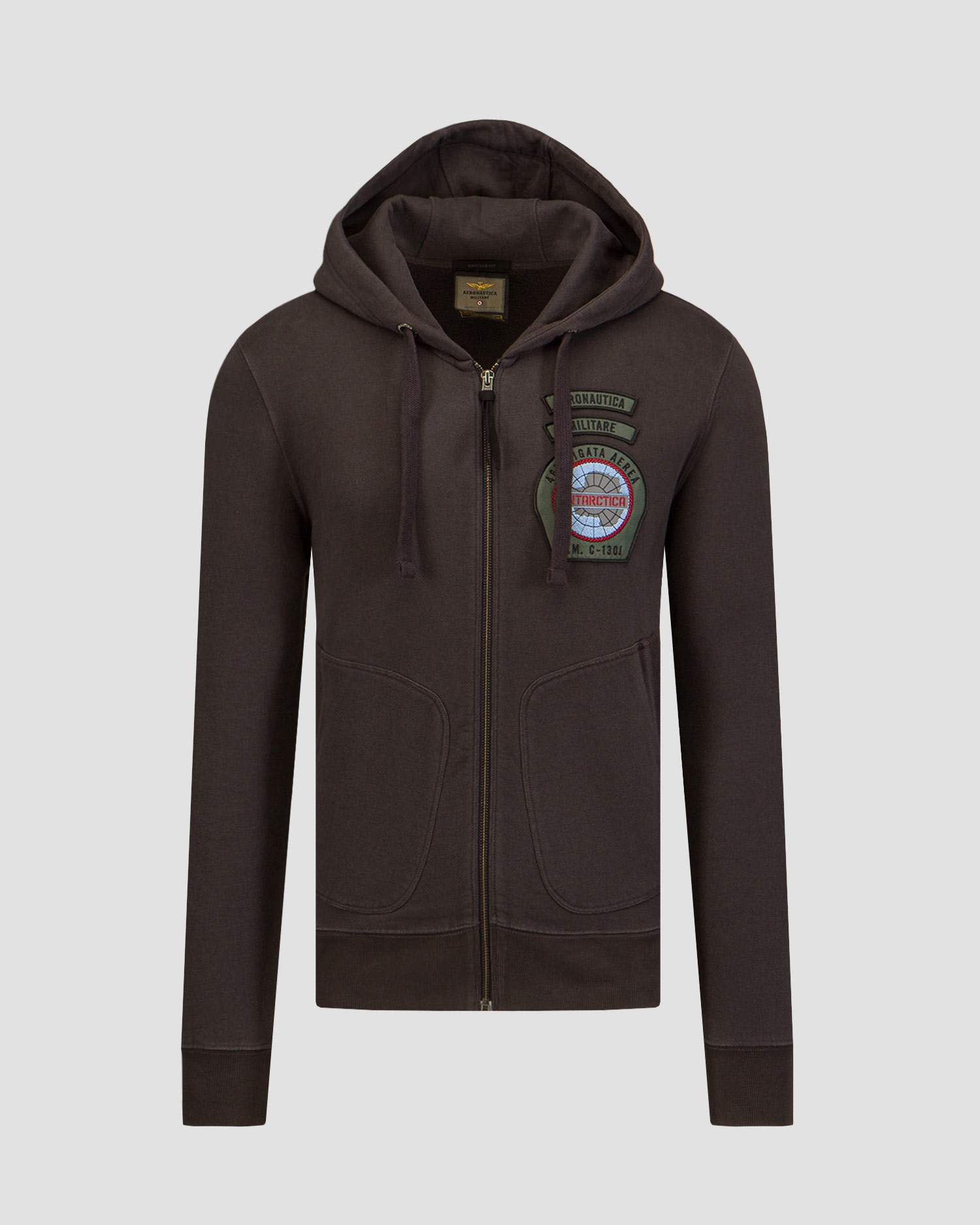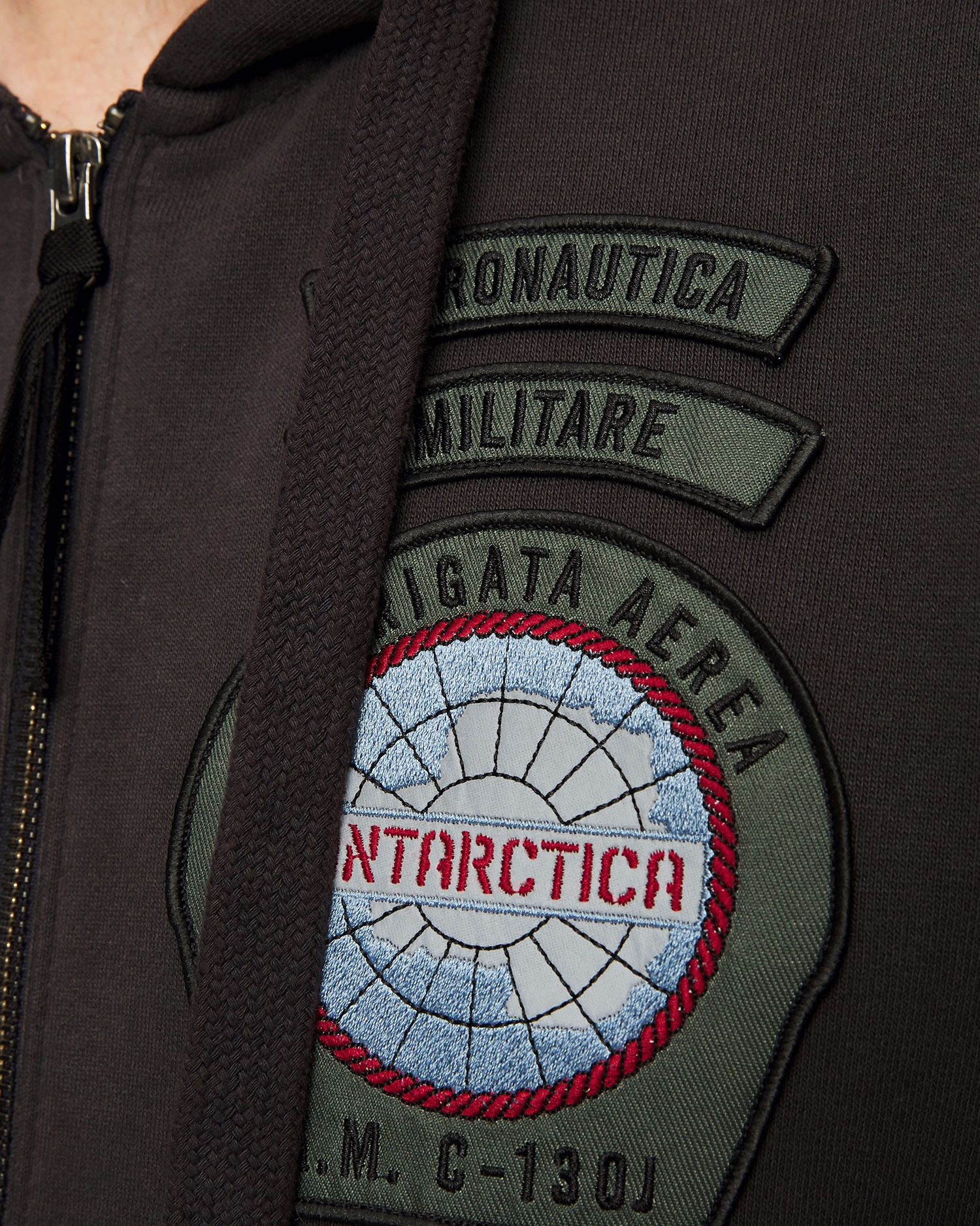 Der Aeronautica Militare Herren-Kapuzenpullover mit Reißverschluss ist ein Angebot aus der neuen, einzigartigen Antarctica-Kapsel-Edition der Marke Aeronautica Militare, die Kleidungsmodelle präsentiert, die von der wissenschaftlichen Expedition des 46. Jahrhunderts inspiriert sind. Luftbrigade auf den kalten und trostlosen Gletschern in der Nähe des Südpols.