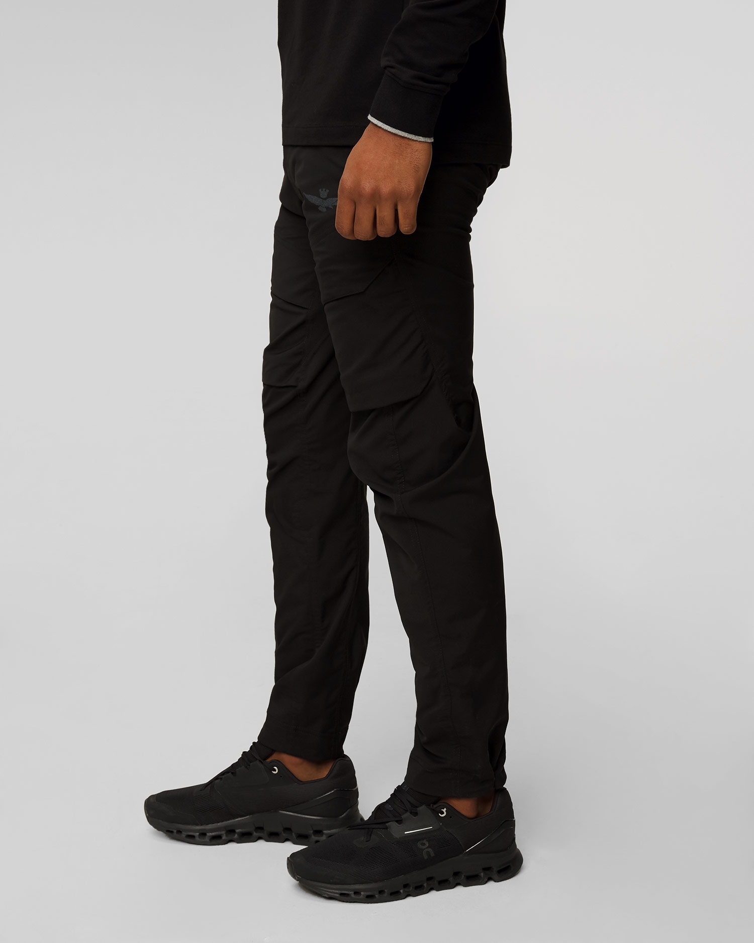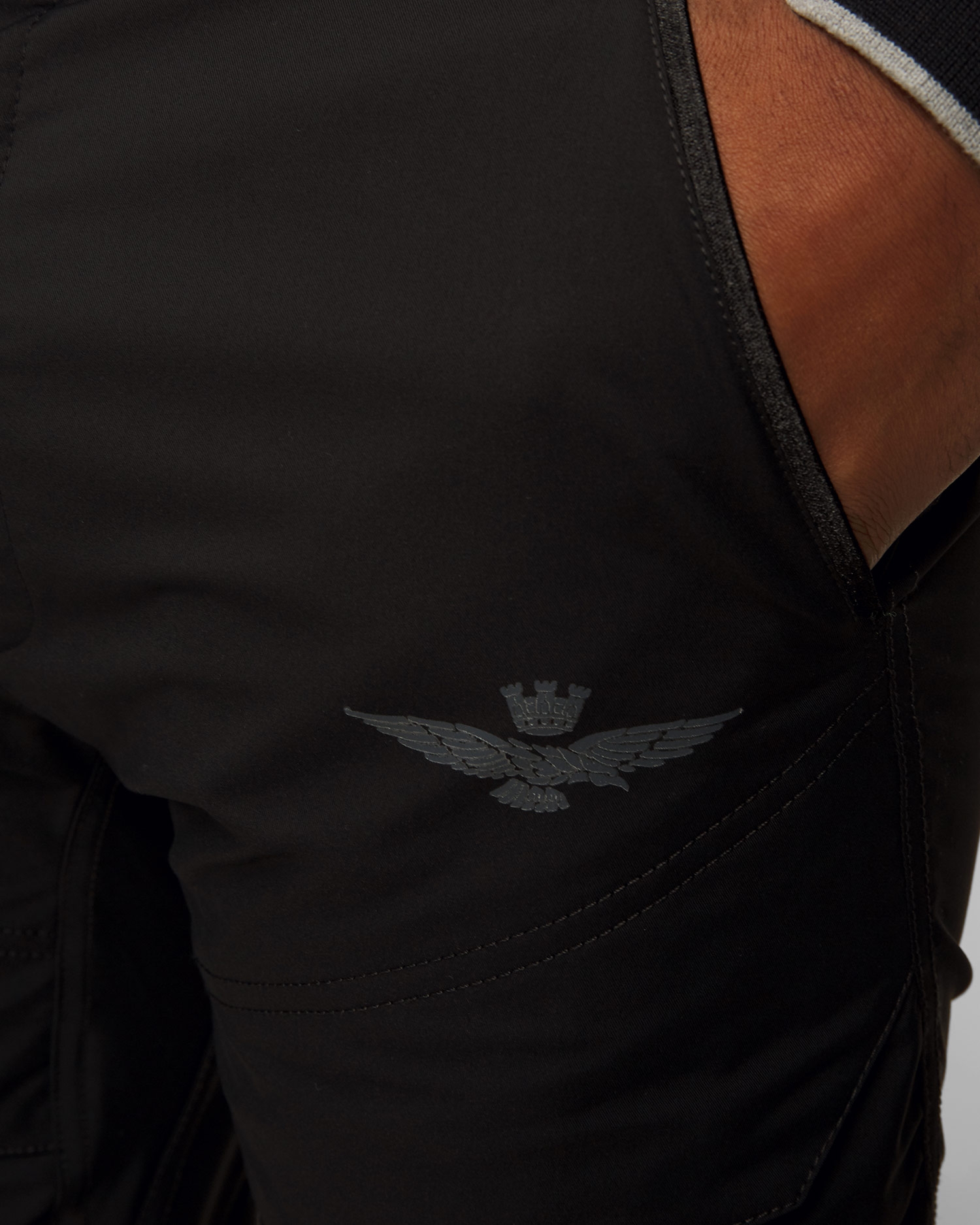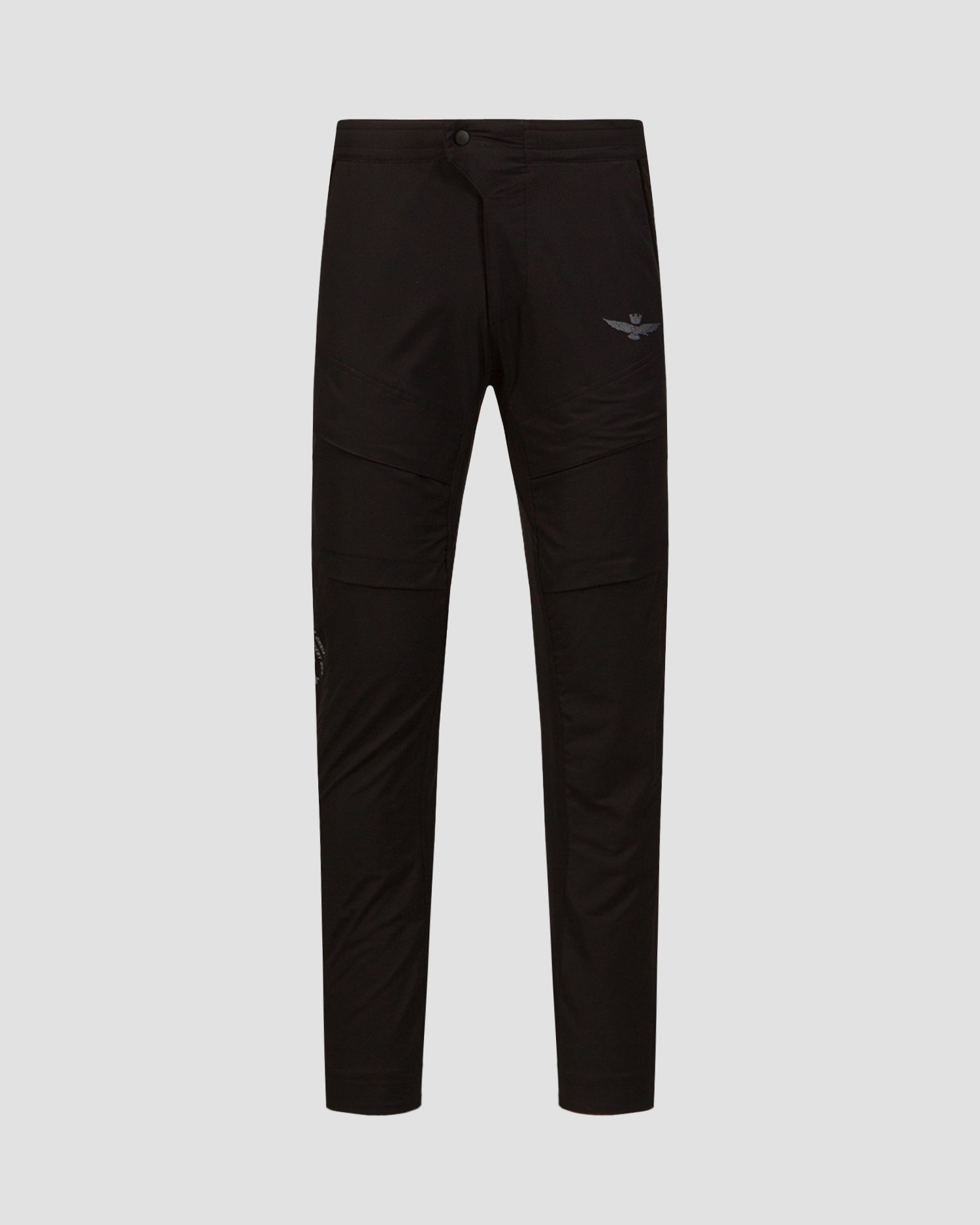 Die schwarze Aeronautica Militare Herrenhose ist eine praktische Wahl für Liebhaber funktioneller Lösungen. Sie besteht aus strapazierfähigem, flexiblem Stoff, der bei ungünstigen Wetterbedingungen ausreichend Schutz vor Feuchtigkeit bietet. Ein durchdachtes Design mit normalem Schnitt und elastischem Bund sorgt dafür, dass sie sich Ihrer Körperform anpasst und gleichzeitig Komfort bietet. Die Hose zeichnet sich durch die aufgenähten Cargotaschen an den Beinen aus. Darüber hinaus ist sie mit zwei Seitentaschen ausgestattet. Auf der linken Seite befindet sich eine Applikation mit dem Markenlogo.