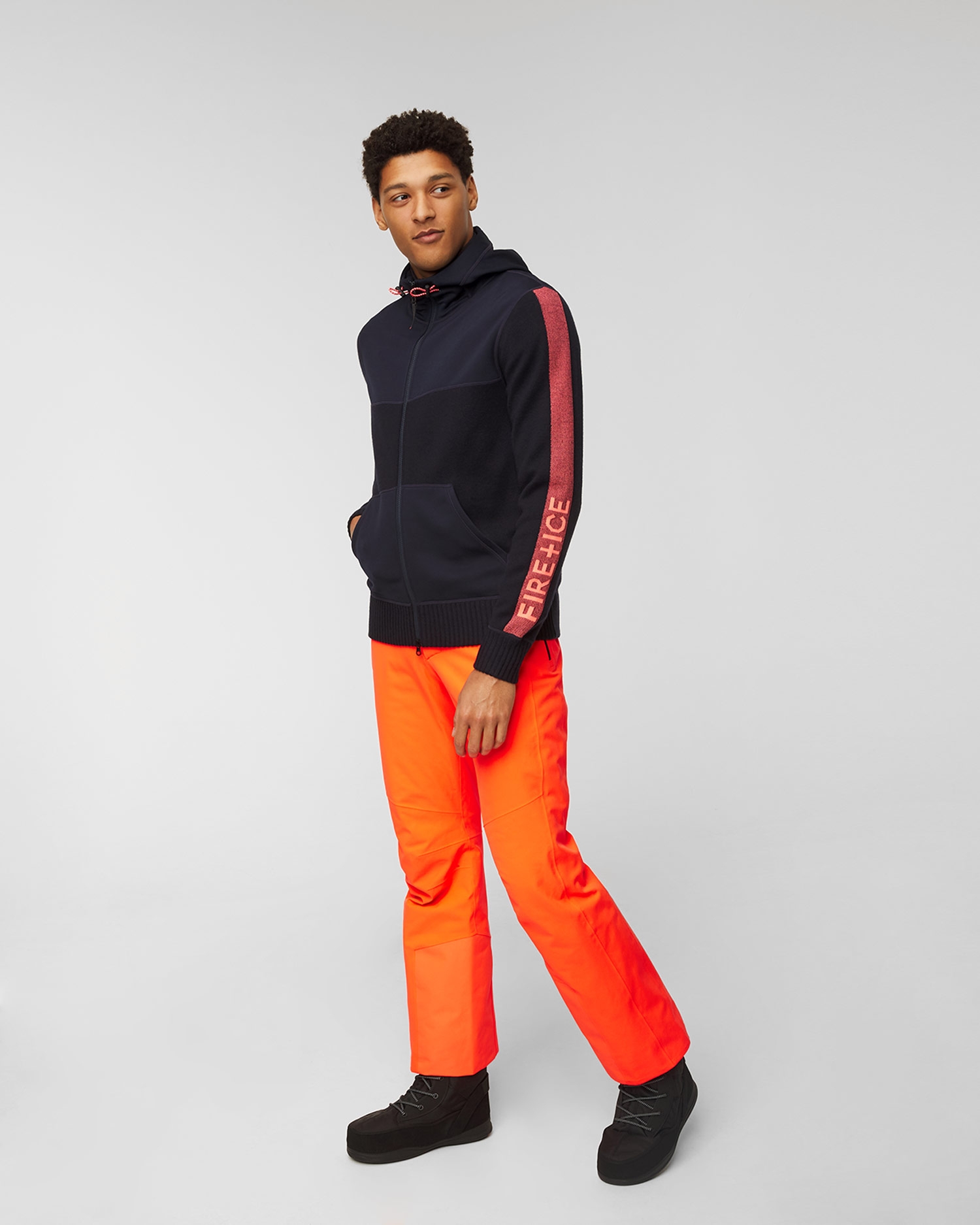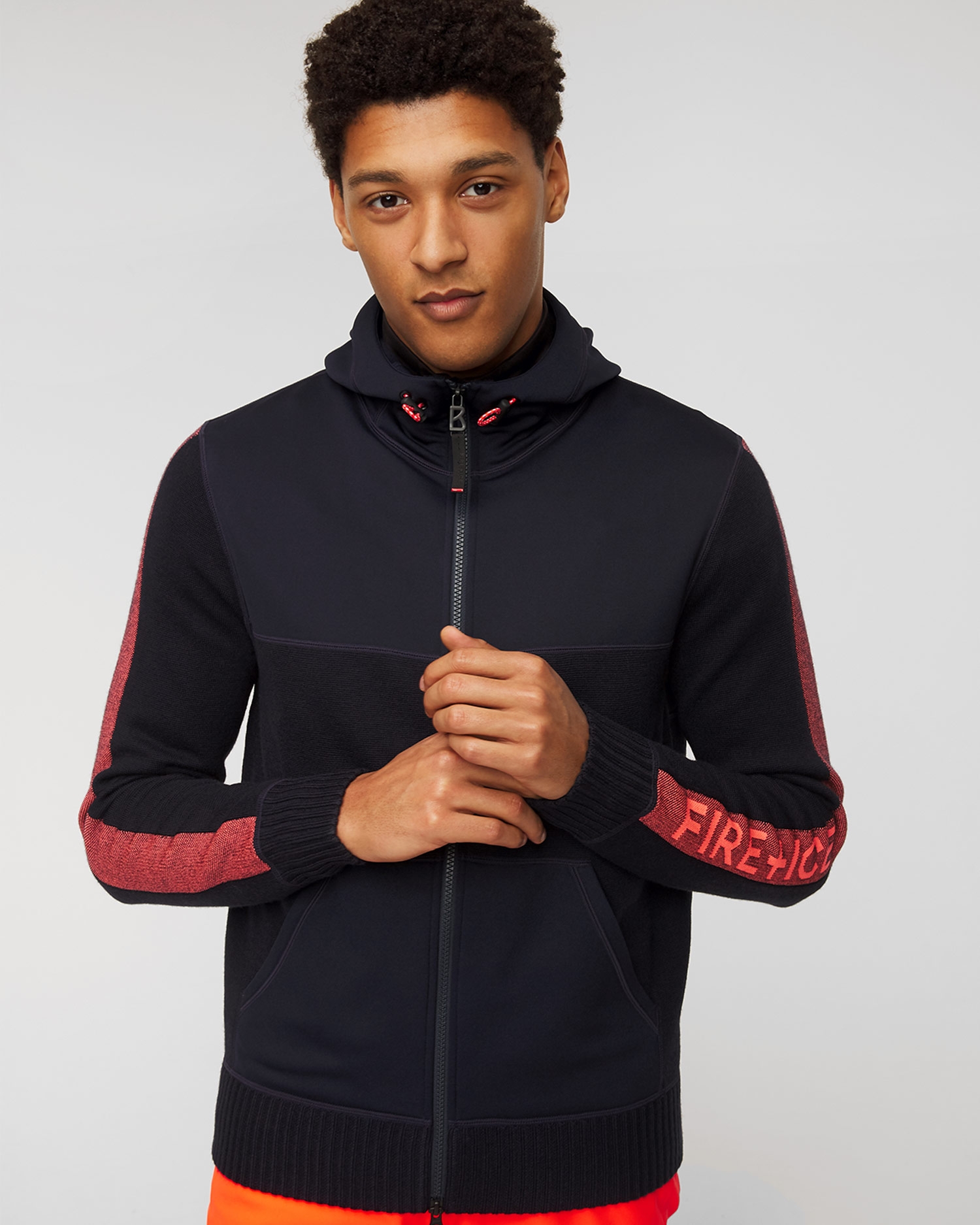 Das BOGNER FIRE+ICE MAKSIM ist ein hybrides Kapuzensweatshirt mit Reißverschluss, das sowohl für das urbane Outfit als auch für den Après-Ski geeignet ist. Hergestellt aus glatten Platten und technischem Strick. Rippbündchen an Ärmeln und Saum sowie Jacquard-Streifen mit BOGNER-Schriftzug verleihen ihm einen einzigartigen Charakter. Mit Reißverschluss und B-Logo-Griff. Verstellbare Kapuze mit dekorativen Gummibändern mit Stoppern.