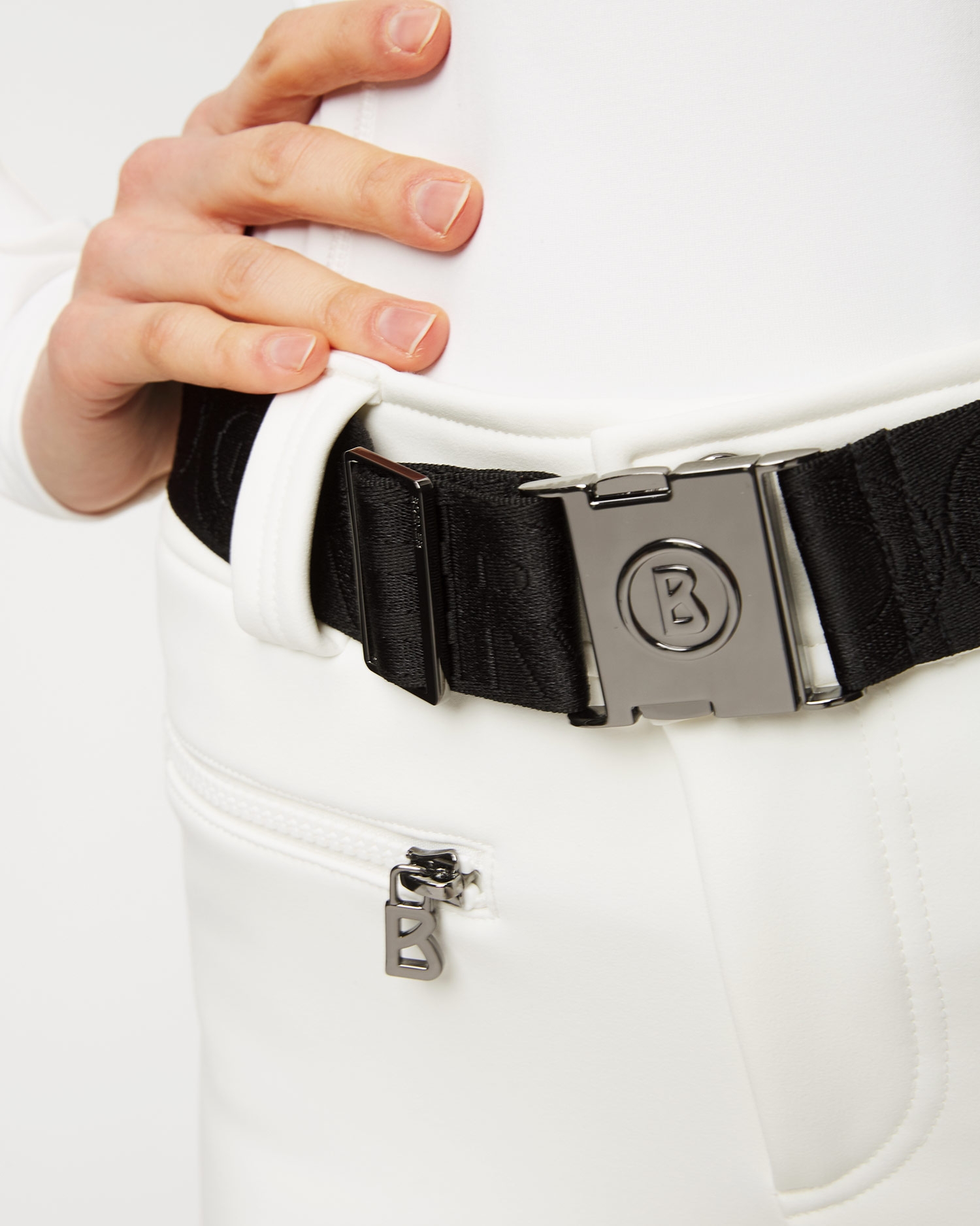 Die funktionale BOGNER MADEI Skihose aus der SPORT Linie mit geraden Hosenbeinen. Gefertigt aus technischem Softshell-Material. Die 4WAY-Stretch-Technologie bietet Dehnbarkeit in alle Richtungen und sorgt für Mobilität und Bewegungsfreiheit. Mit weichem Fleece-Futter. Mit einem Reißverschluss und Knopf geschlossen. Reißverschlusstasche vorne. BOGNER-Logo auf der Rückseite, Ton-in-Ton. Die Hosenbeine sind mit einem Reißverschluss versehen, der das Anziehen erleichtert. Ein Gürtel mit charakteristischer Schnalle vervollständigt den Look.