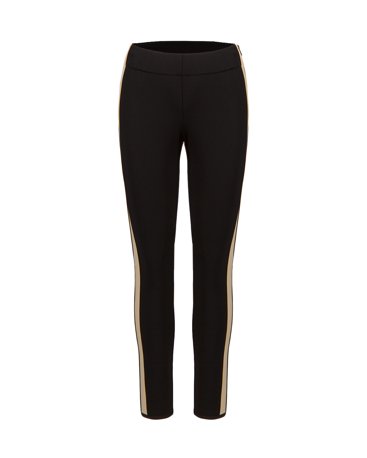 Mit einem Reißverschluss. Höhere Bundhöhe. Elastische Einsätze an den Seiten der Hosenbeine für noch mehr Bewegungsfreiheit.