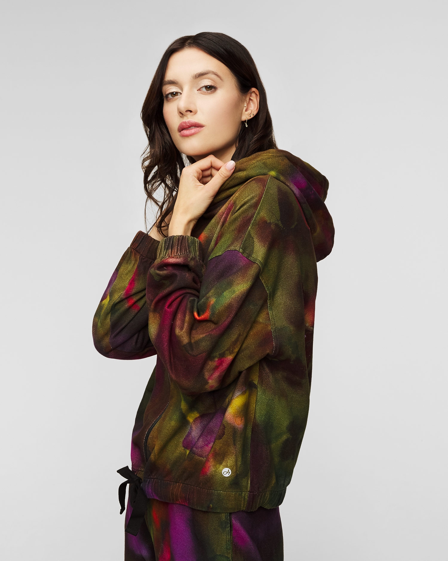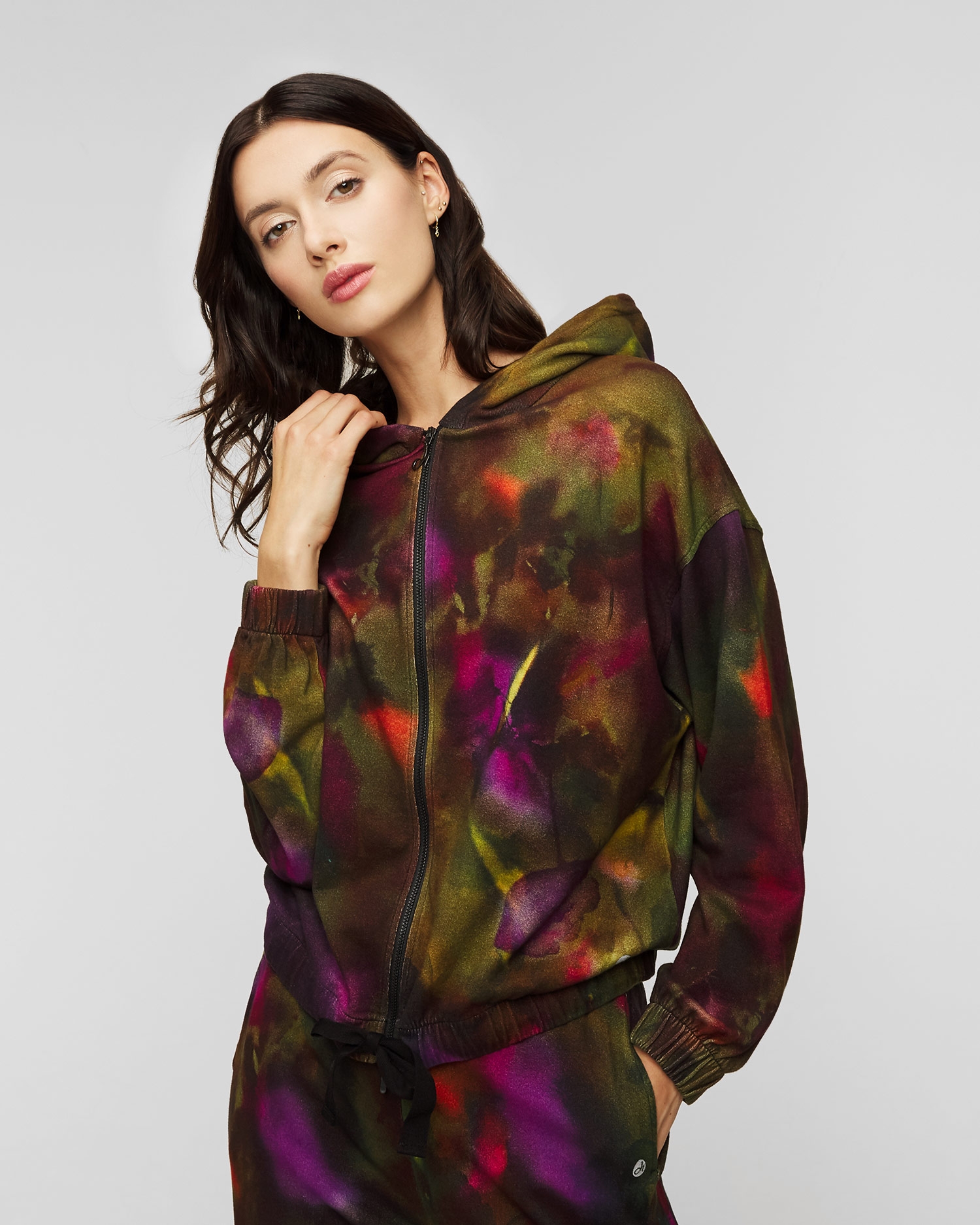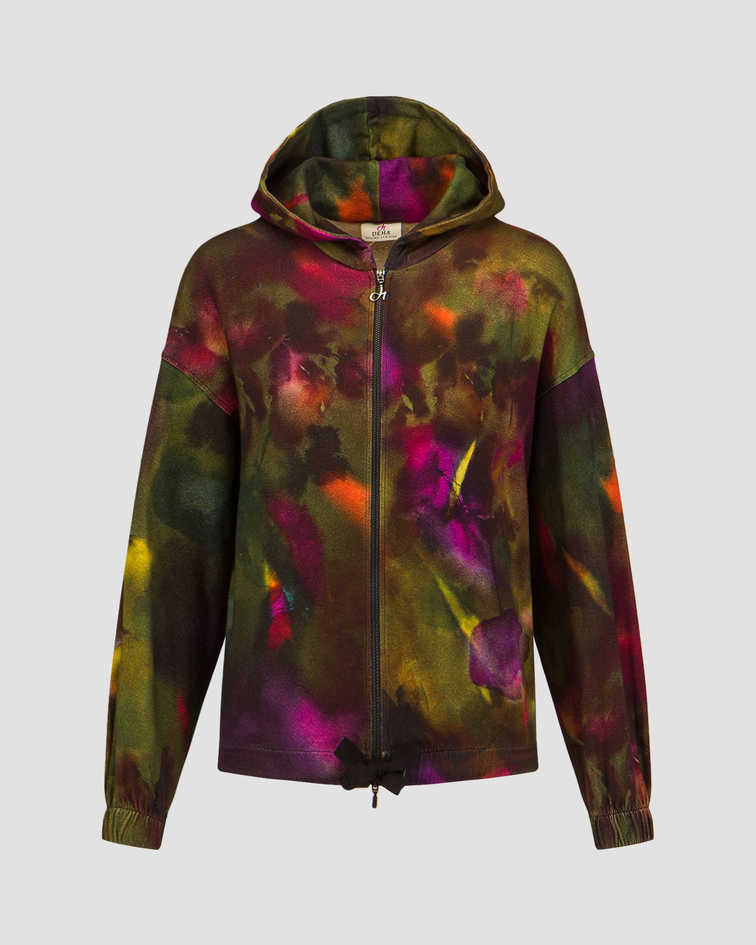 Das Deha Damen-Sweatshirt mit Reißverschluss mit originellem Muster ist extrem weich und fühlt sich angenehm an. Große Kapuze, die innen gefüttert ist, betont den lässigen Stil des Sweatshirts. Geschlossen mit einem praktischen Zwei-Wege-Reißverschluss, vollendet mit einem dekorativen Schieber mit dem Logo. Die Unterseite ist mit einem schwarzen Baumwollband gebunden und ermöglicht so eine individuelle Anpassung. Abgesenkte Schulterlinie mit Ärmeln, die in einem eingenähten Gummizug enden. Aus weicher Bio-Baumwolle, innen mit Fleece gefüttert.