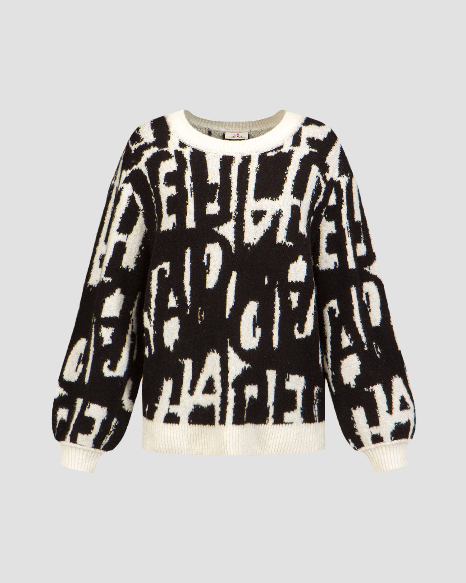 Der mit dem Original-Jacquardmuster von Deha verzierte Pullover ist vielseitig und bequem und sorgt an kälteren Tagen für Komfort und Wärme. Er kann mit einer Jeans für einen lässigen Look oder mit einem weiten Rock für einen persönlichen und einzigartigen Stil kombiniert werden. Hergestellt aus einer weichen und flexiblen Mischung aus Wolle und Baumwolle. Er hat einen Rundhalsausschnitt, weite Ballonärmel und einen gerippten Saum.