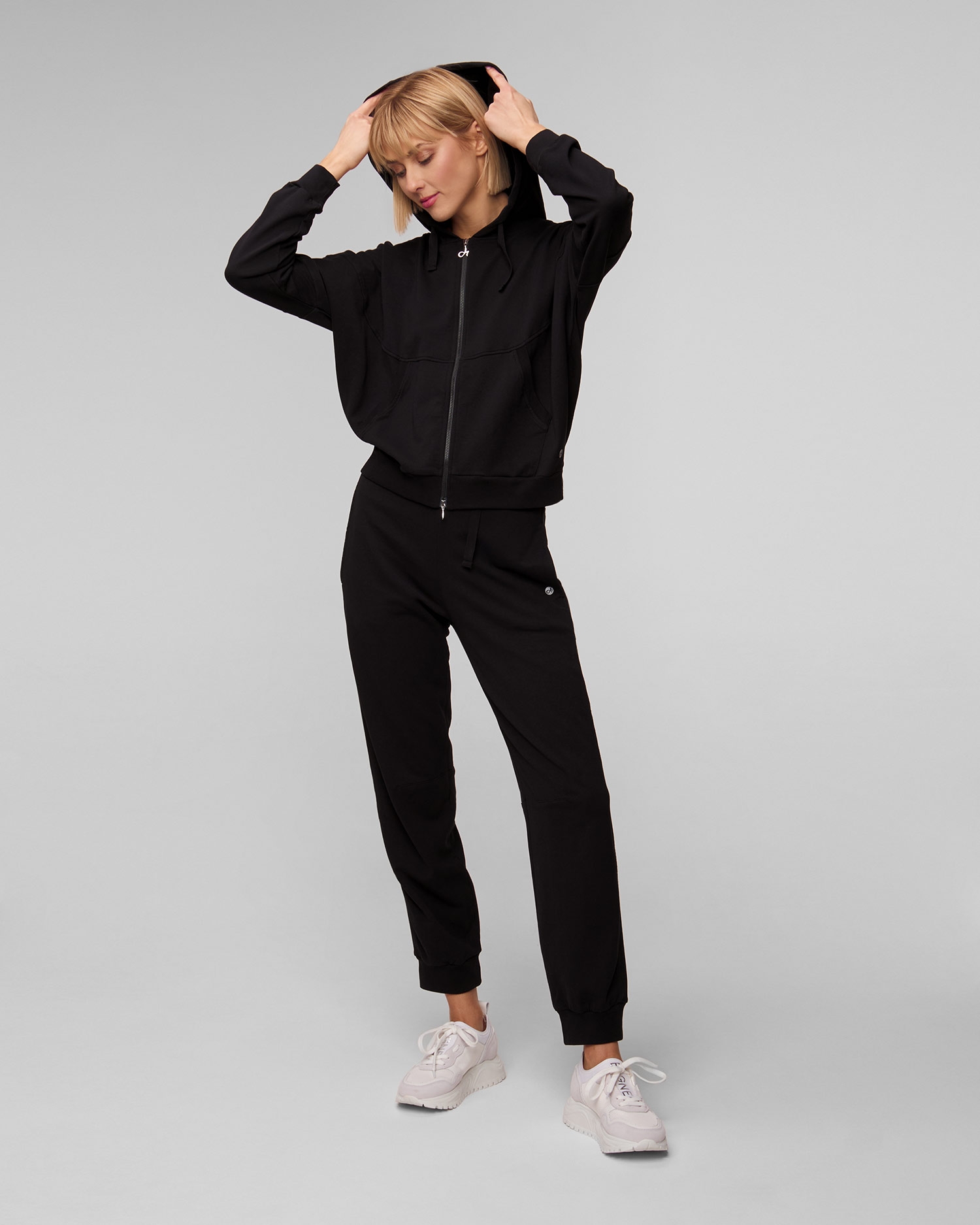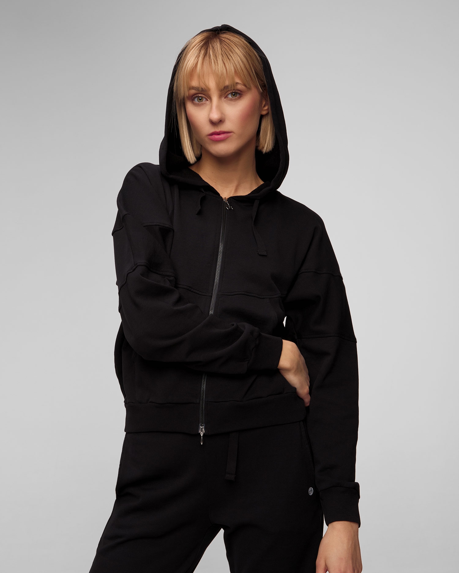 Das Deha Damen-Sweatshirt mit schlichtem Design und Kapuze, perfekt zum Training, Entspannen und den ganzen Tag. Kapuze mit Bändern festgezogen. Zwei seitliche Eingrifftaschen. Mit praktischem Zwei-Wege-Reißverschluss.