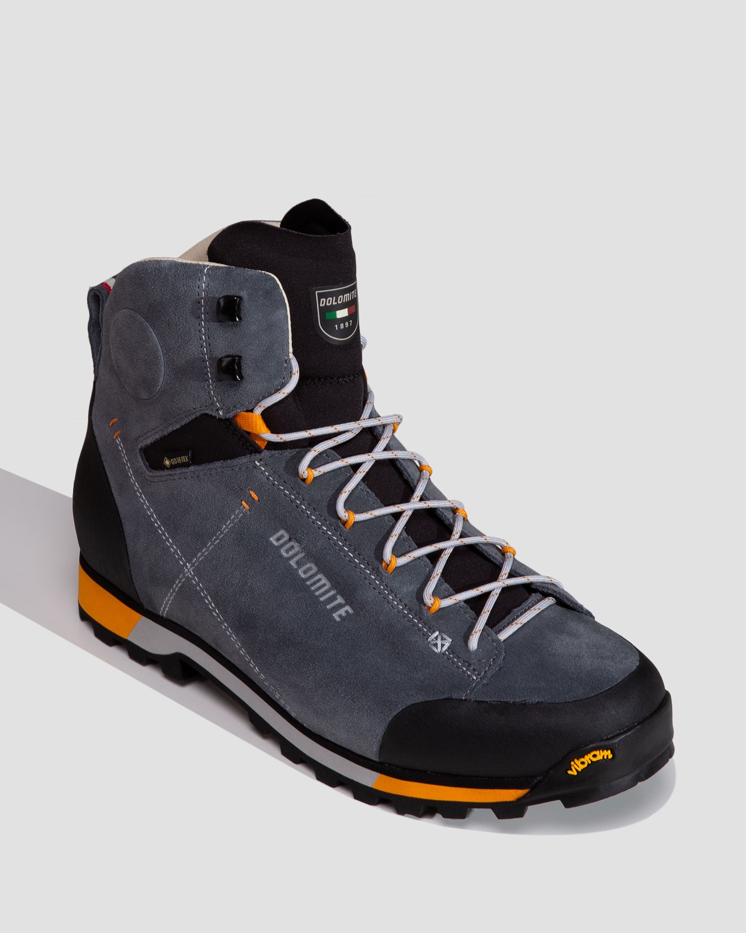 DOLOMITE 54 HIKE EVO GTX sind vielseitige High-Trekking-Schuhe, die die Ästhetik des legendären 54-Modells mit den neuesten Technologien kombinieren, die bei der Herstellung von Bergschuhen verwendet werden.