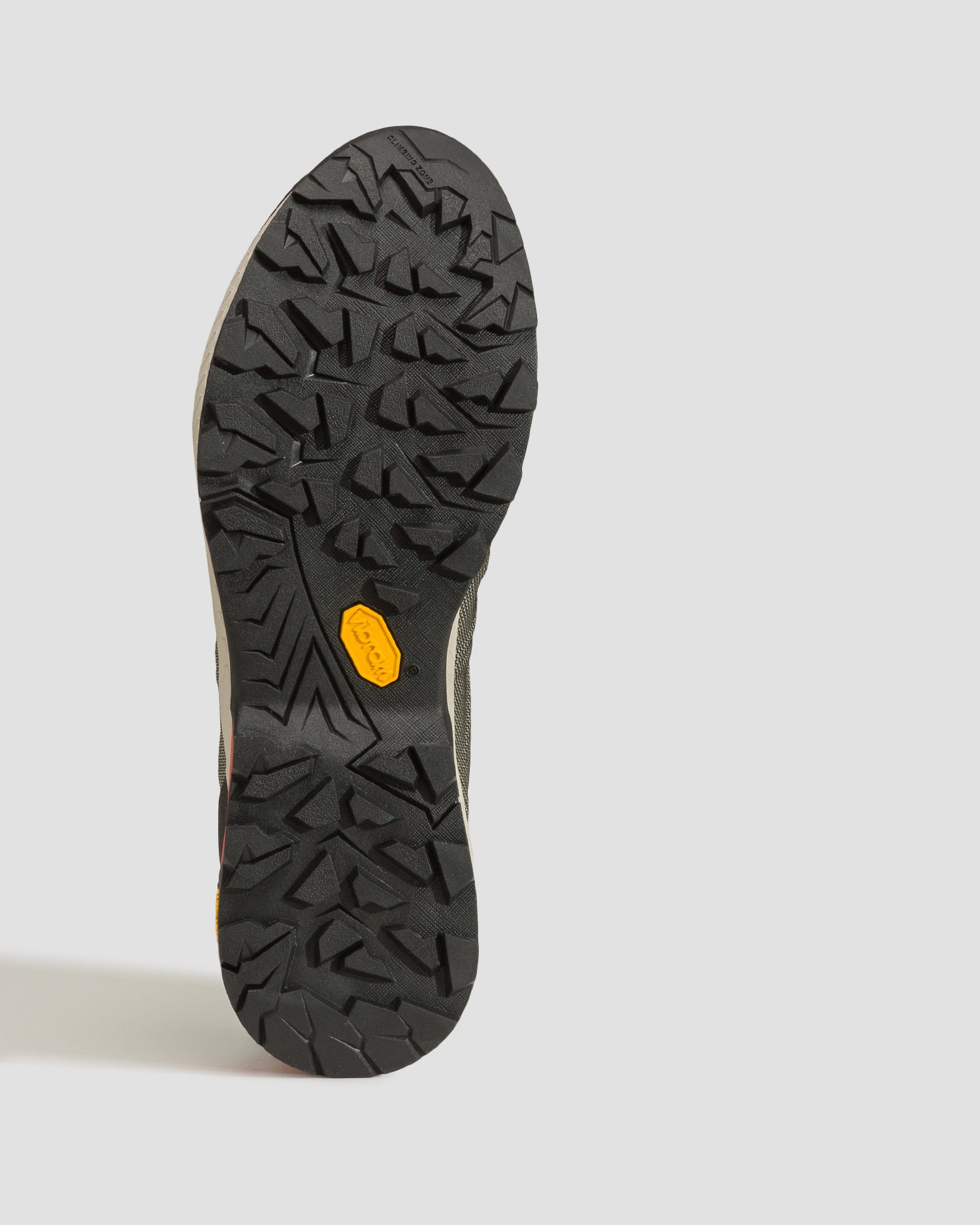 Die Zwischensohle ist so konzipiert, dass sie sich um 360° an den Fuß des Trägers anpasst und auf jedem Terrain für Komfort und Stabilität sorgt. Der Fersenbereich besteht aus weichem EVA-Schaum und garantiert so eine hervorragende Dämpfung und Aufprallschutz. Der vordere Teil hingegen ist steifer und verfügt über eine Kletterzone im Zehenbereich, die für Präzision sorgt und das Gewicht des Trägers auf kleinen Felsvorsprüngen und Rissen trägt, ohne sich zu verbiegen.