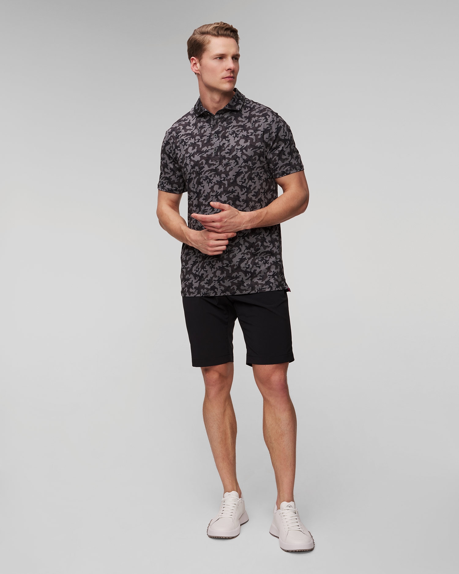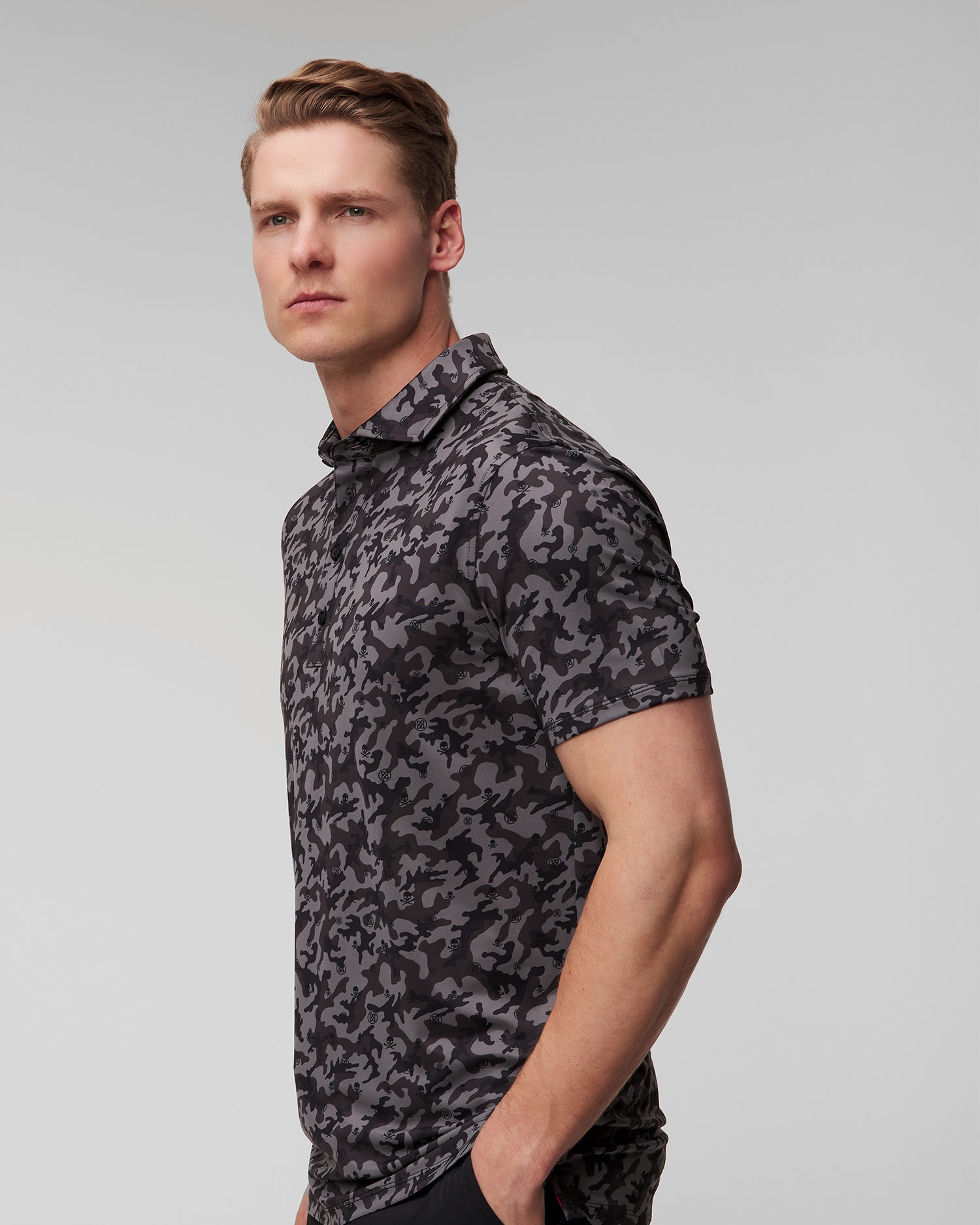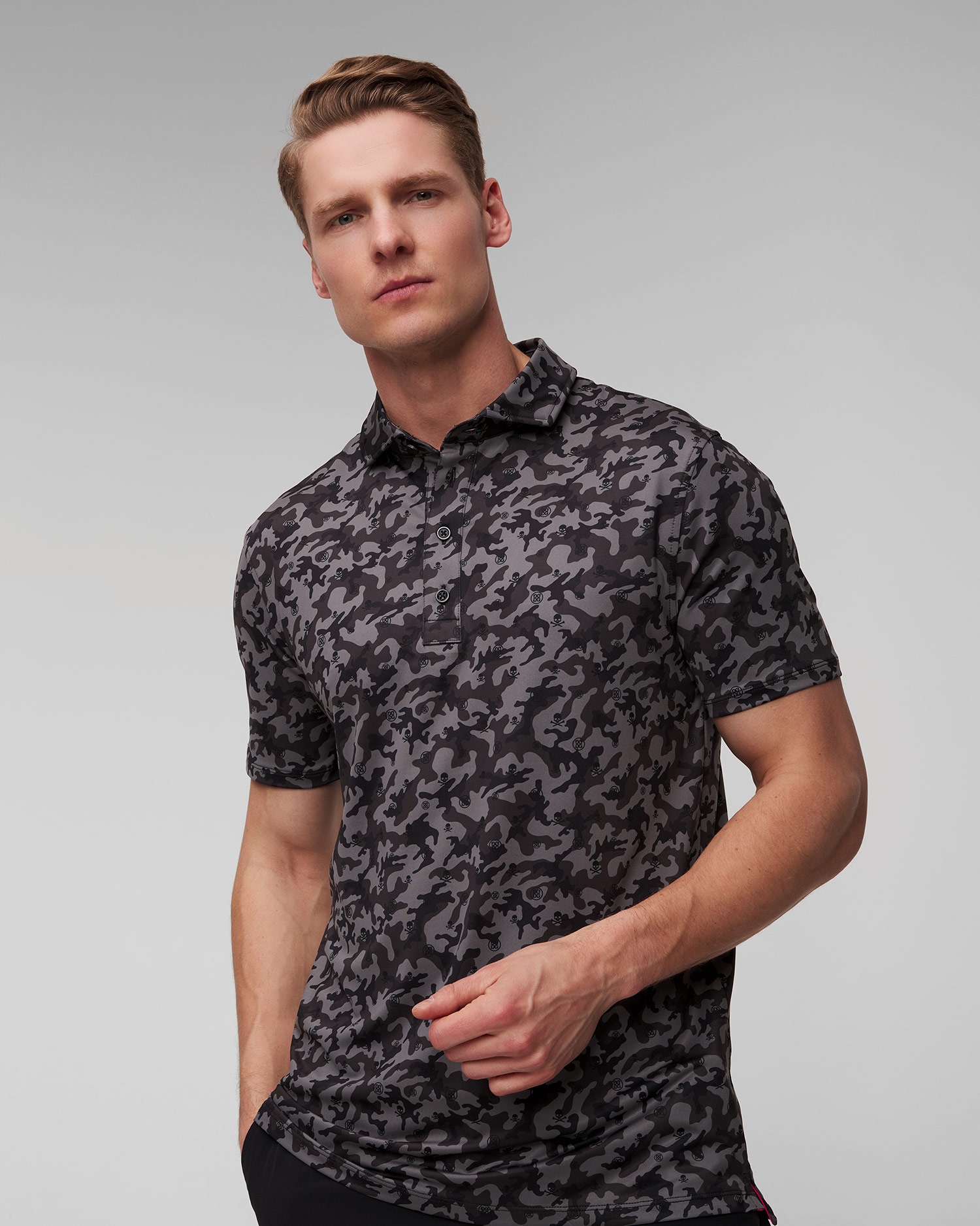 Das Poloshirt ist die perfekte Ergänzung Ihrer Sommergarderobe. Egal, ob Sie auf dem Golfplatz oder bei einem Geschäftstreffen sind, G/Fore Mapped Icon Camo Tech Jersey Polo wird mit seinem einzigartigen Stil und seinem Tragekomfort sicher die Aufmerksamkeit auf sich ziehen.