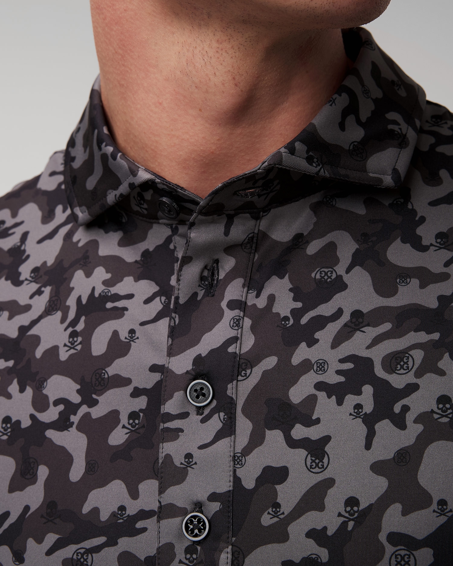 G/Fore Mapped Icon Camo Tech Jersey Polo Poloshirt für Herren mit Camouflagedruck in Grau und Schwarz gmp000001-onyx
