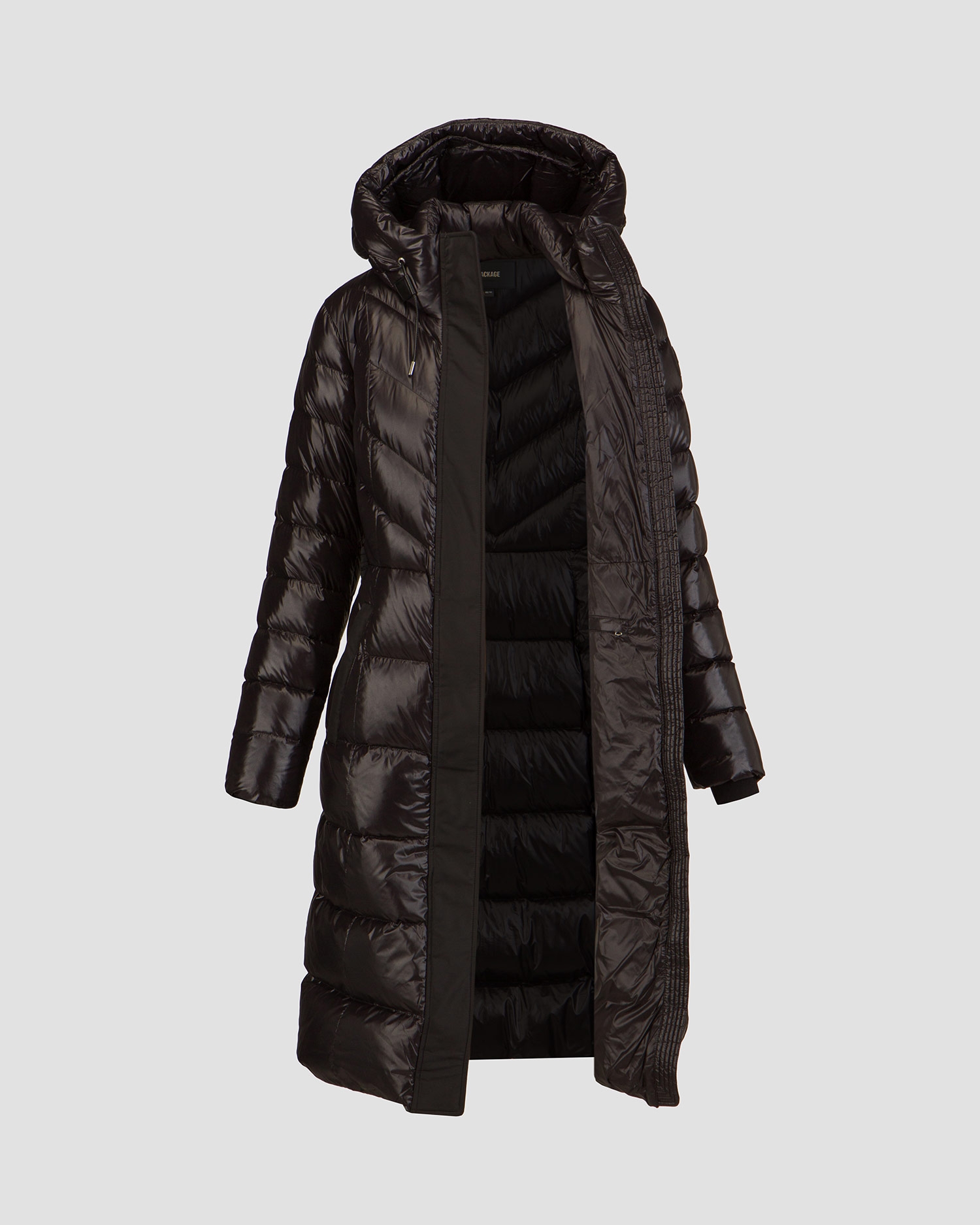 Der Mackage Coralia Daunenmantel für Damen ist ein Vorschlag für die Wintersaison, der Funktionalität und Modetrends perfekt vereint. Sein stilvoller Charakter wird durch die durchdachte, gesteppte Konstruktion mit einem verlängerten Schnitt mit Reißverschluss und einem Taillengürtel hervorgehoben, der eine individuelle Passform ermöglicht und die Form der Silhouette unterstreicht. Der Mantel besteht aus hochwertigen Materialien mit einer hydrophoben Beschichtung für ausreichenden Schutz vor Feuchtigkeit. Isoliert mit einer Füllung aus Entendaunen und Federn, die die Wärme perfekt isoliert und an kalten Tagen für Wärmekomfort sorgt. Der Mantel verfügt über eine Kapuze mit Sturmvisier. Lange Ärmel mit Innenbündchen für zusätzlichen Kälteschutz. Modell mit zwei Seitentaschen und einer zusätzlichen Innentasche. Verziert mit Markenaufnähern.