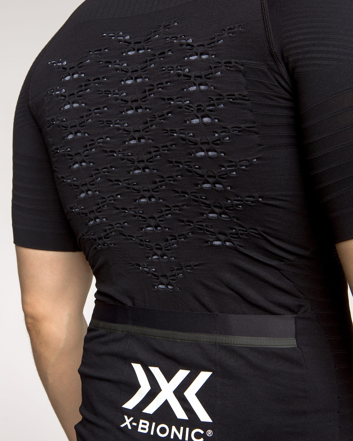 Unangenehme Gerüche werden dank der SKIN NODOR®-Fasern, die durch die Freisetzung von hautneutralen Ionen die Vermehrung von Bakterien verhindern, perfekt vom T-Shirt bewältigt. Die neue Generation von X-BIONIC 4.0 -Produkten ist die erste, die ultrahochwertige Retina® Qualität bietet – ein extrem dichter Stoff, in dem thermoregulierende Zonen mit höchster Genauigkeit arbeiten können.