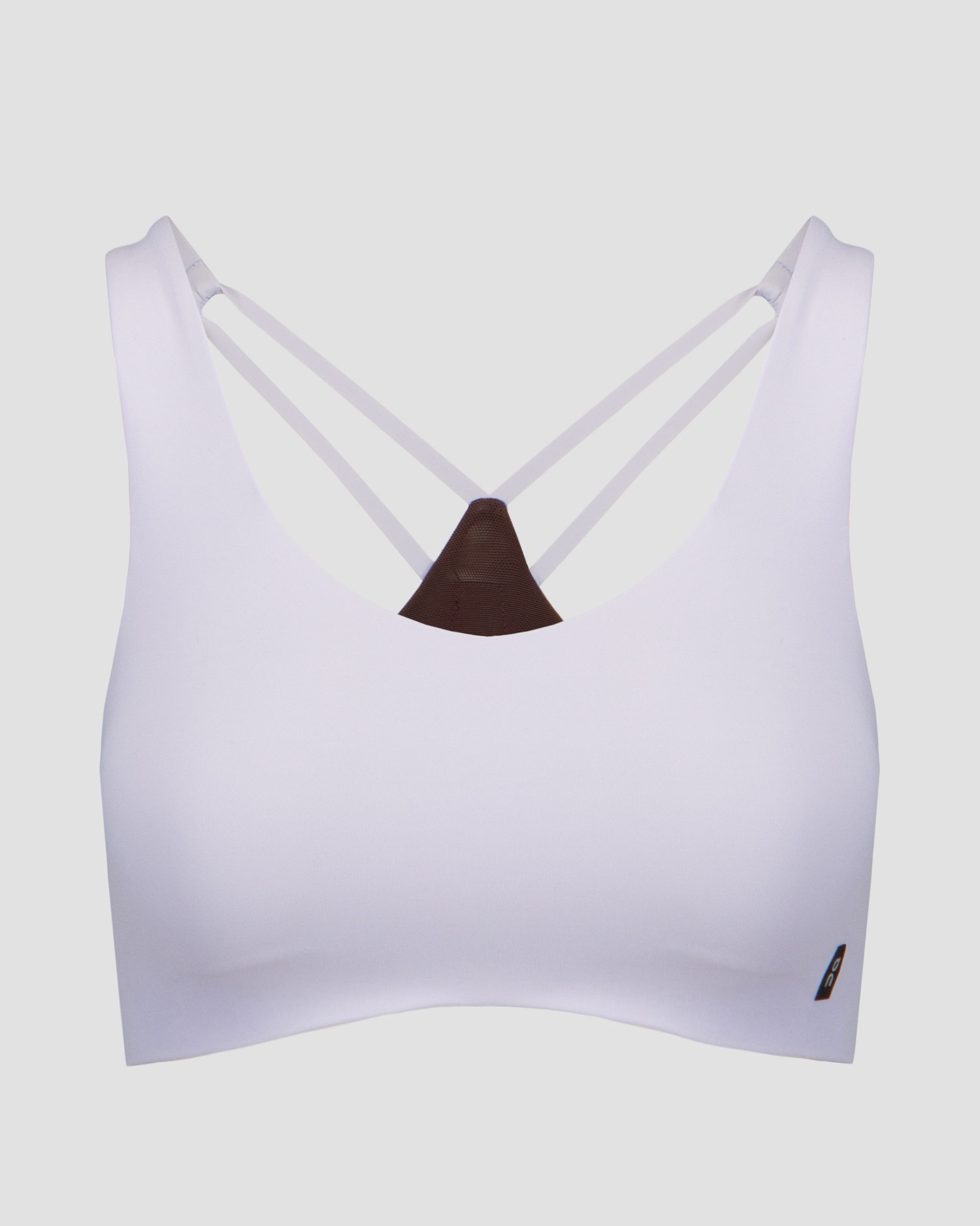 Das technische Garn sorgt für eine schnelle Trocknung und einen effizienten Abtransport von Schweiß und überschüssiger Wärme. Die leichte Polsterung sorgt für eine optimale Abdeckung, damit Sie sich sicher fühlen. Das einzigartige Design der Körbchen drückt die Brust nicht zusammen und enthält keine Elemente, die Reizungen verursachen können. Das moderne Design und die auffälligen, gekreuzten Träger ermöglichen es, sie auch ohne T-Shirt zu tragen.