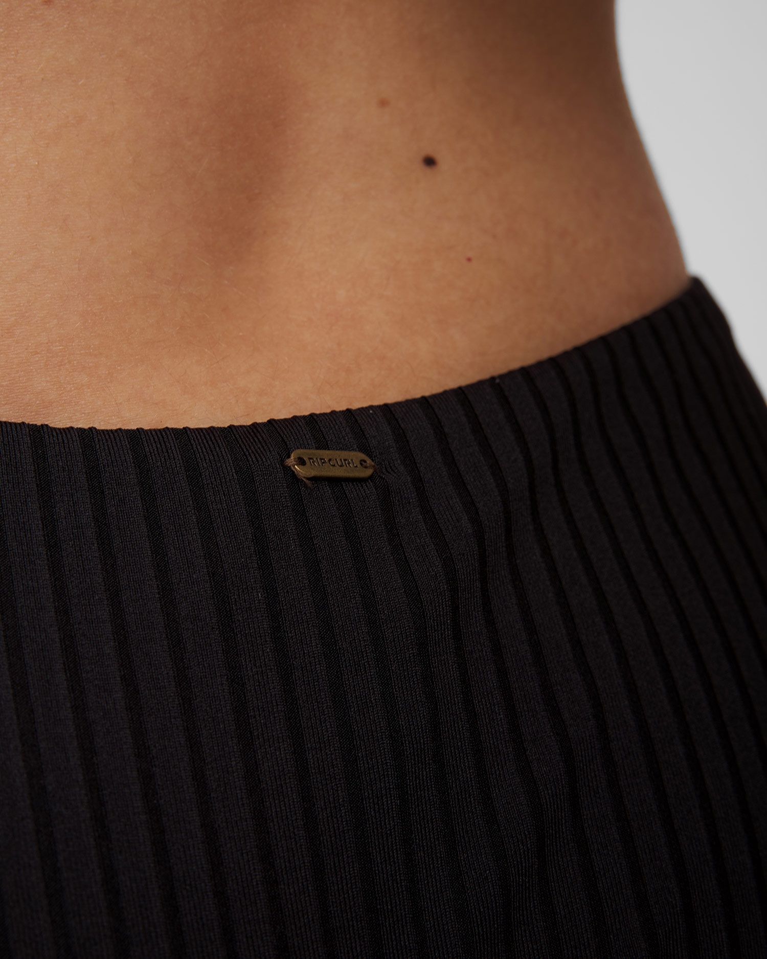 Der Rip Curl Premium Surf Cheeky Pant Bikini-Slip für Damen in Schwarz ist ein Angebot mit zeitlosem Design. Aus weichem und flexiblem Stoff mit charakteristischer Rippenstruktur. Bikini-Unterteil mit niedriger Taille. Hinten befindet sich ein Detail aus Metall mit Markenlogo.