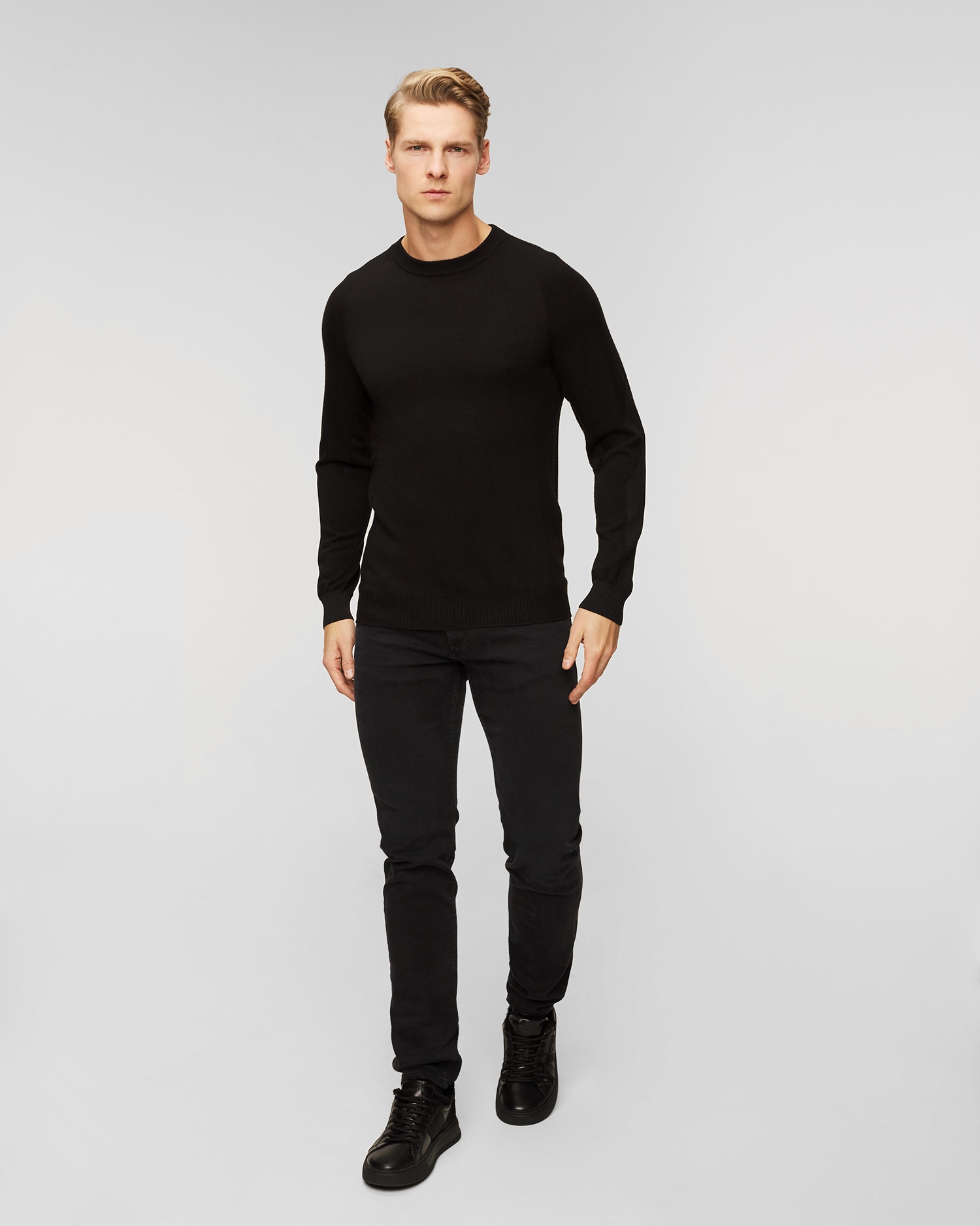 Der schwarze Sease Herrenpullover aus Wolle ist eine äußerst bequeme Option, die mit einer innovativen Technik hergestellt wird, die es ermöglicht, völlig nahtlose Pullover zu fertigen. Der Pullover hat keine Nähte, wodurch er leichter und angenehmer auf der Haut liegt. Das zeitlose Design und die vielseitige Farbgebung machen ihn zu einem perfekten Basisteil für viele Winteroutfits, sowohl für den Alltag als auch für Ihre Lieblingsaktivitäten im Winter. Er besteht aus extrem weichem Lammwollgarn, das dank seiner natürlichen feuchtigkeitsabsorbierenden Eigenschaften für trockenen Tragekomfort sorgt. Pullover mit Rundhalsausschnitt. Er passt sich Ihrem Körper optimal an und gewährleistet gleichzeitig volle Bewegungsfreiheit.
