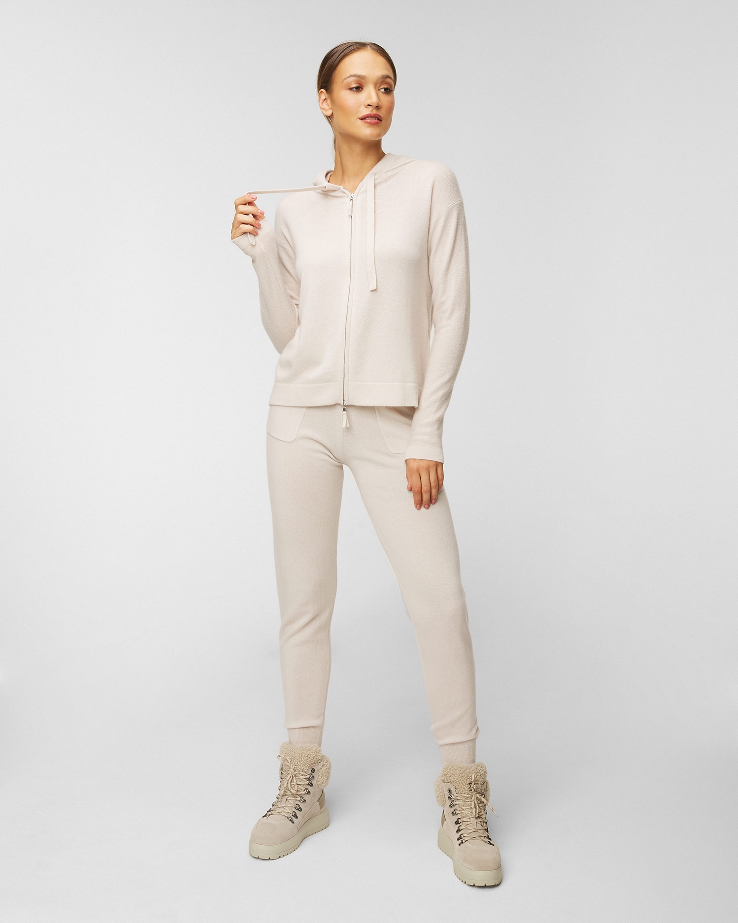 The ALLUDE wool jumper is a comfortable piece that is perfect for everyday casual styling. It is made from a high quality wool and cashmere blend with natural breathability and thermoregulation properties. The jumper has a sporty cut and fastens with a two-way zip. Adjustable hood with drawcord. Ribbed hem and sleeves.