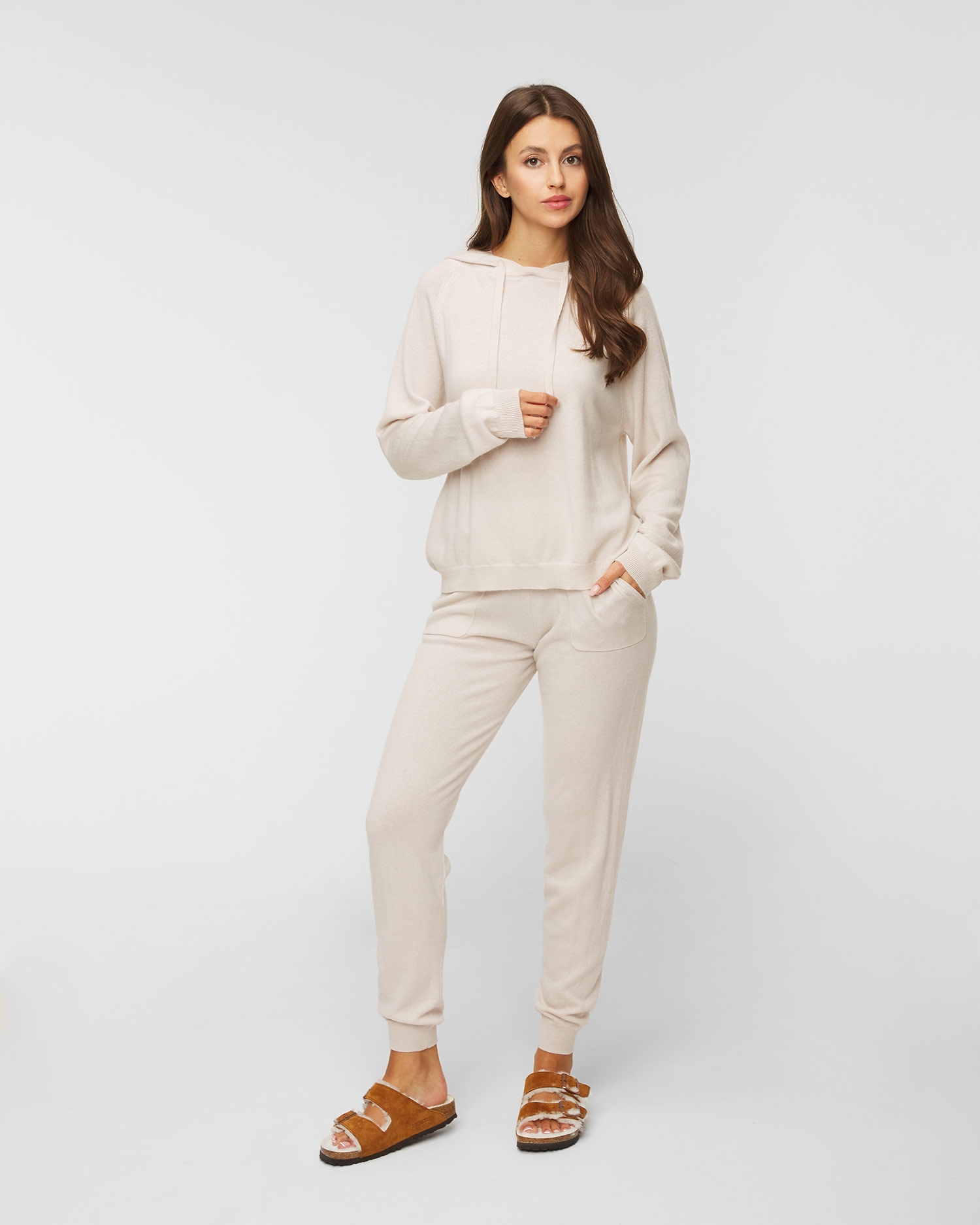 The ALLUDE wool jumper with a sporty cut is made from a blend of virgin wool and fine cashmere. A material with natural hygroscopic and thermo-insulating properties, it will ensure thermal comfort on winter days, keeping you perfectly warm. Extremely soft and pleasant in contact with the skin. A regular-fit jumper with a generous hood adjustable with dangling drawstrings. Perfect as part of a casual look for both everyday wear and the home office. Ribbed cuffs and bottom hem.
