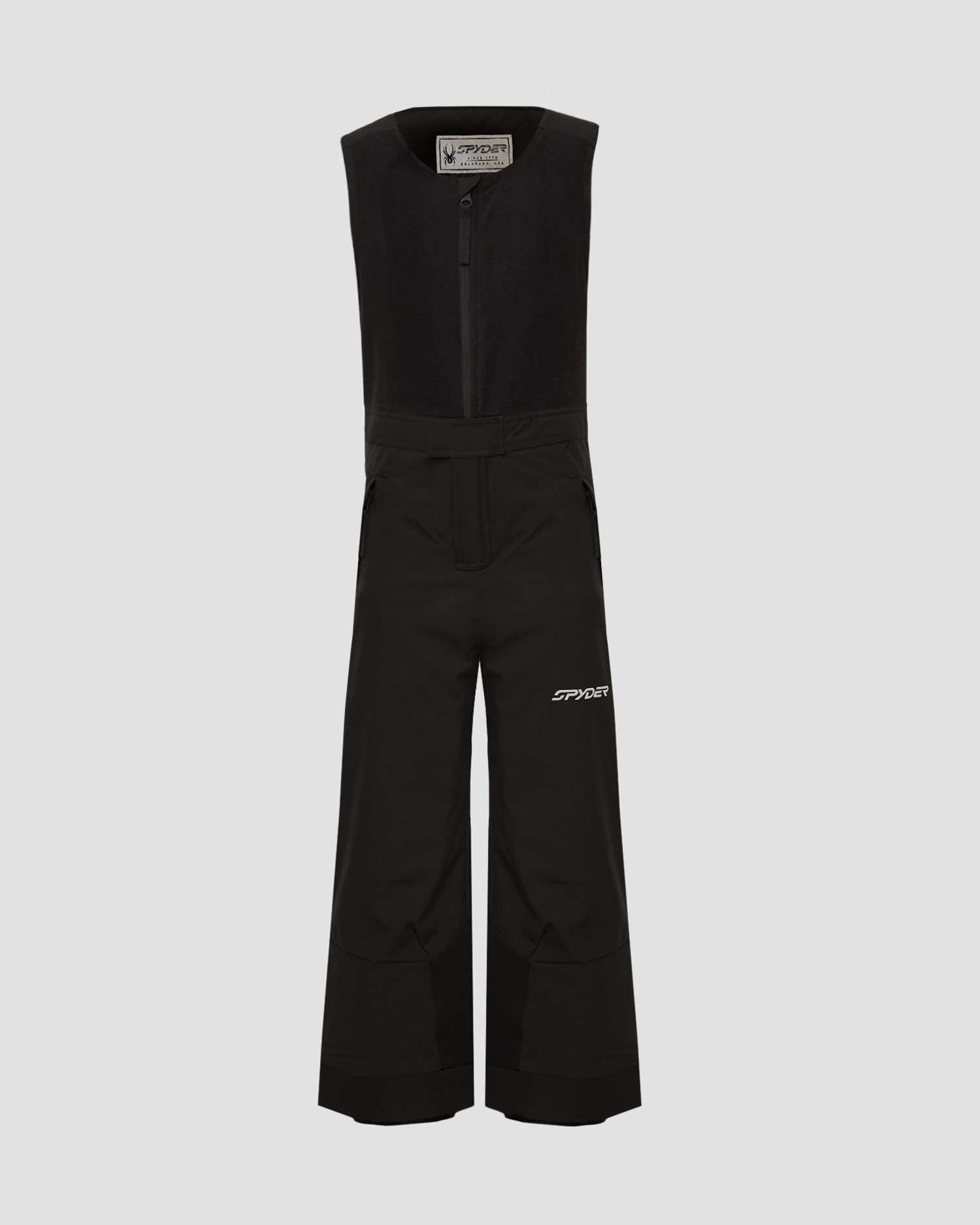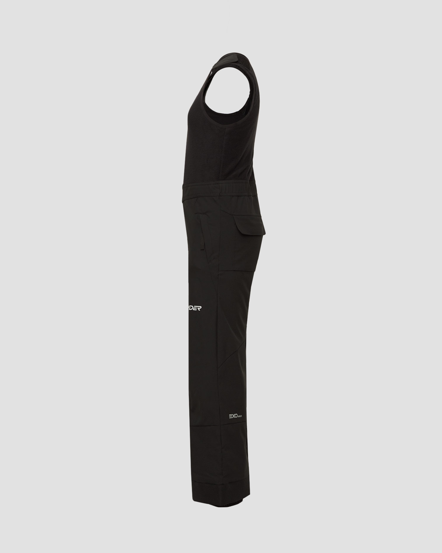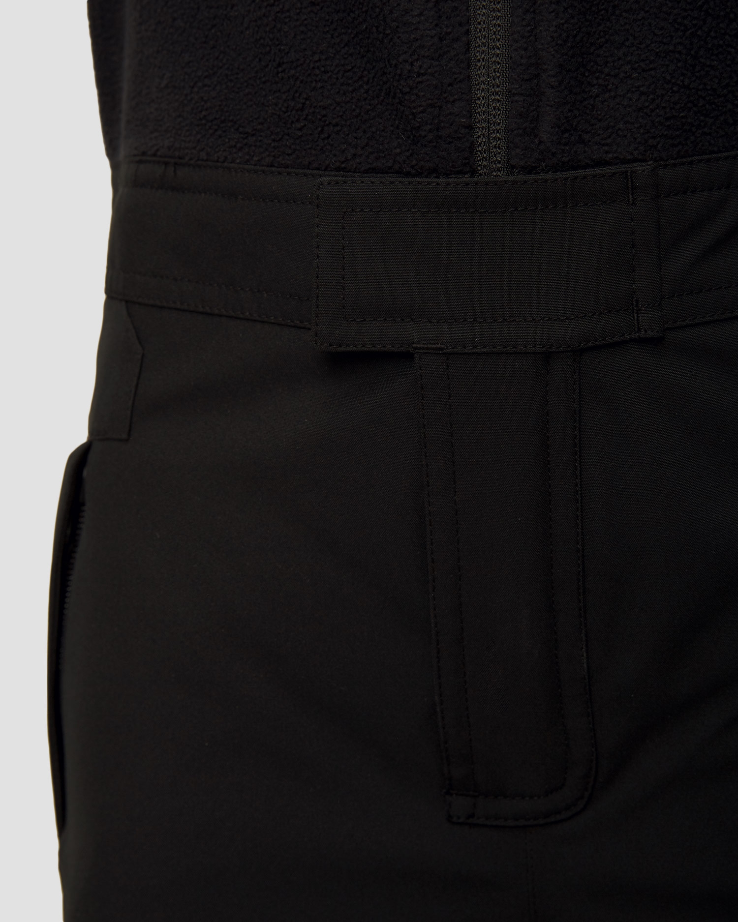 A fleece-integrated bib with Velcro straps allows you to put on and take off the trousers in no time. Fastened pockets. Leg bottoms reinforced with additional fabric. Internal snow cuffs with silicone strip to prevent rolling.