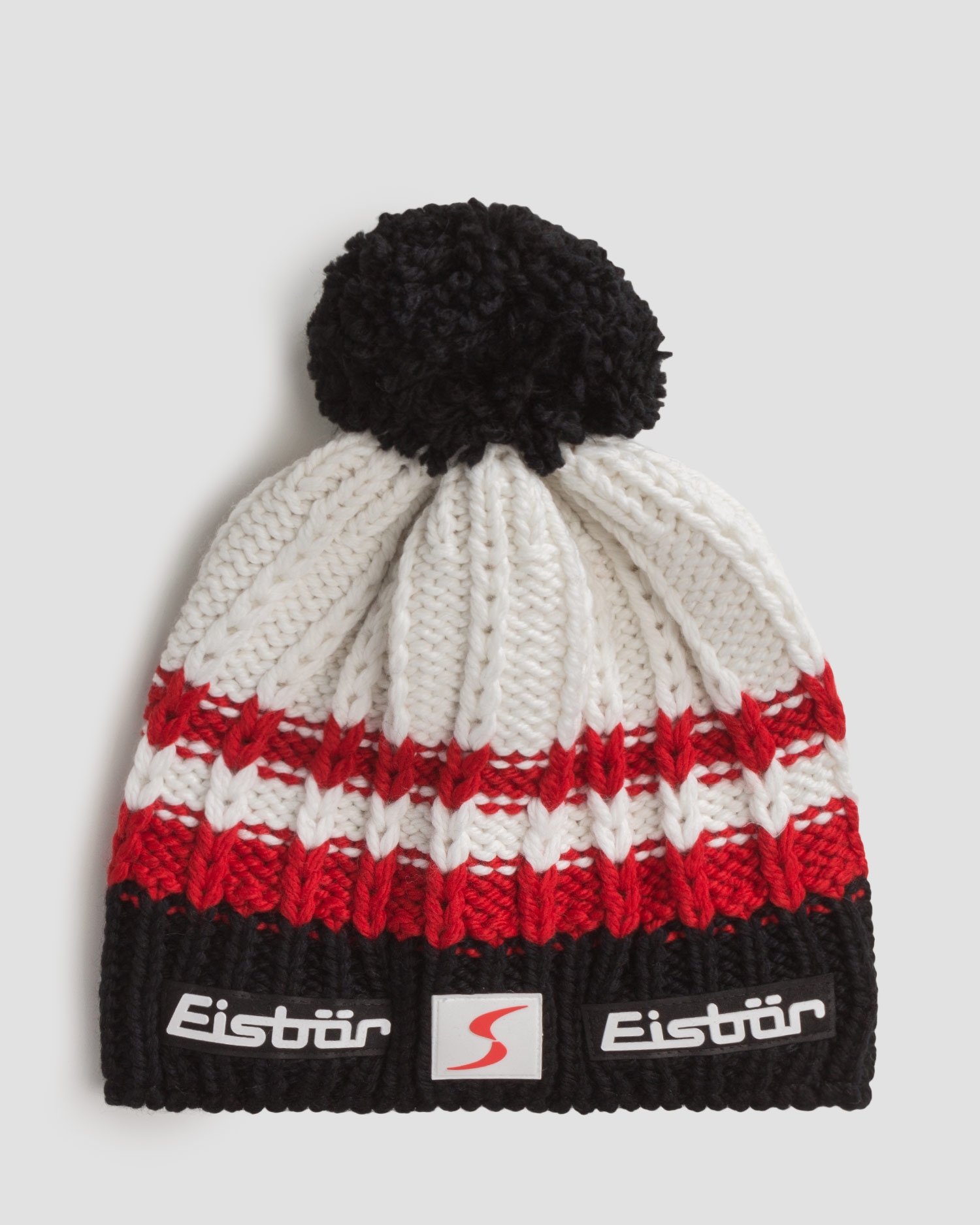 EISBAR Kova Pompon MÜ SP hat. The combination of colors brings the ski world cup to mind. Made from the best quality Merino wool that provides perfect insulation, features thermostatic and antibacterial properties, doesn’t cause skin irritations or allergies. Elastane addition provides perfect adjustment. Signature patches on the front and sides of the piece.
