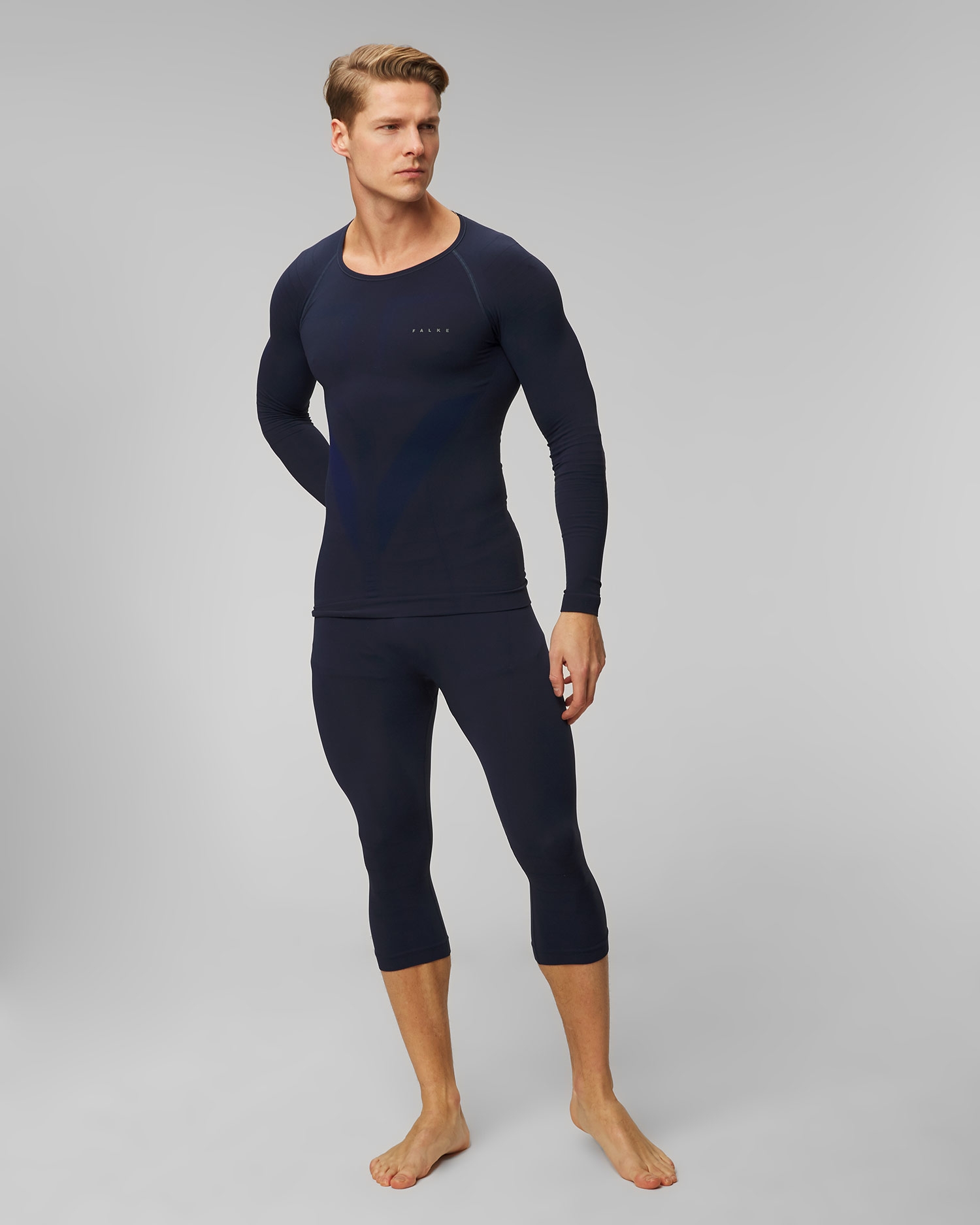The FALKE WARM men's longsleeve is the perfect protection against the cold during winter physical activities. Suitable for mild to cold conditions. Technical stretch fibres keep you warm and dry. The special inner fabric construction and the double-layered structure in the kidney area store heat perfectly. The anatomical cut and profiled sleeves ensure freedom of movement.