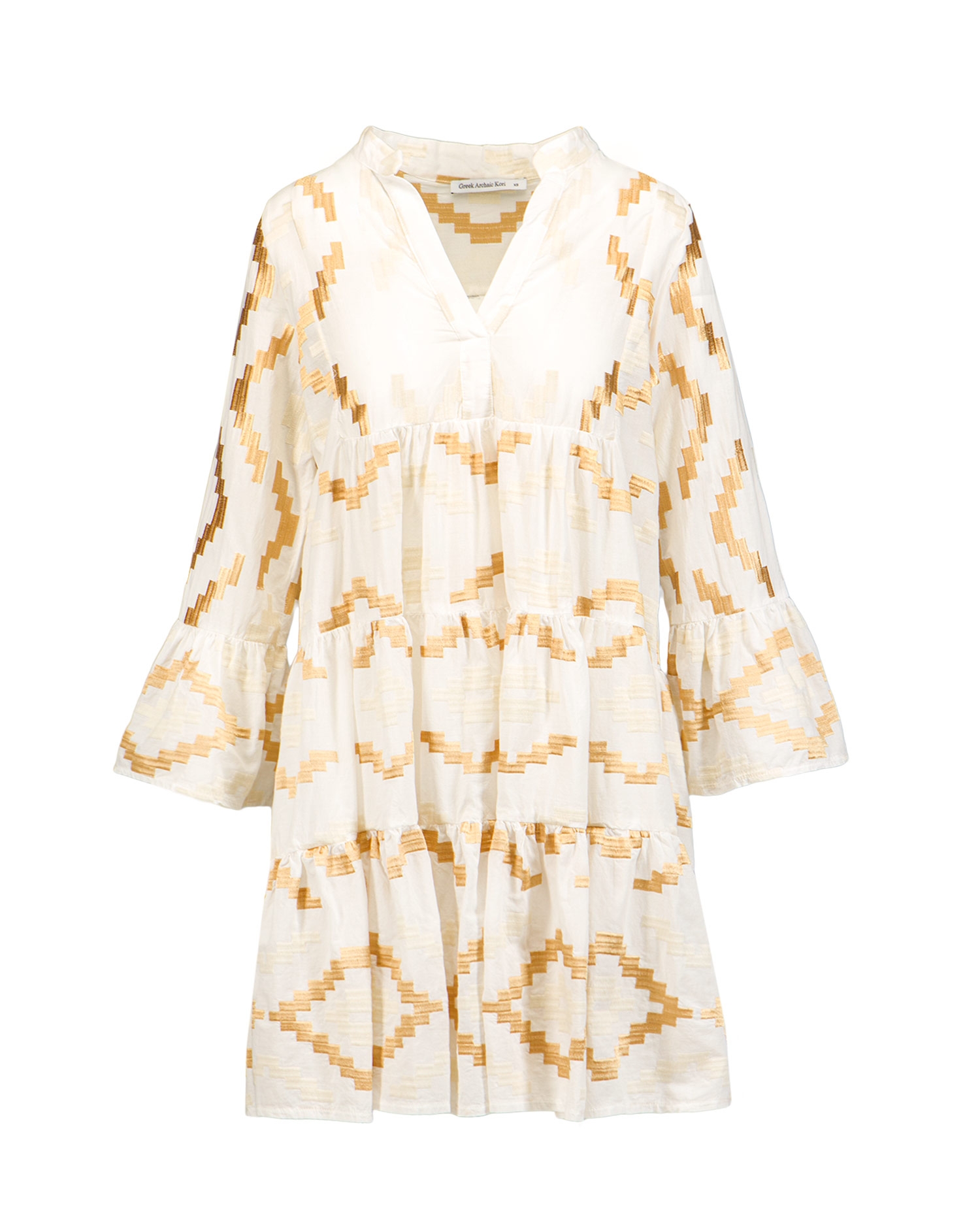 Kori dress will freshen up your summer look. Made from high quality cotton with breathable properties. Lightweight fabric is soft and pleasant to the touch, it ensures comfort during various activities. Casual fit with a V-neck will make you look slimmer and taller, the dress also provides comfort and full freedom of movement. Eye-catching embroidered pattern makes the dress unique.