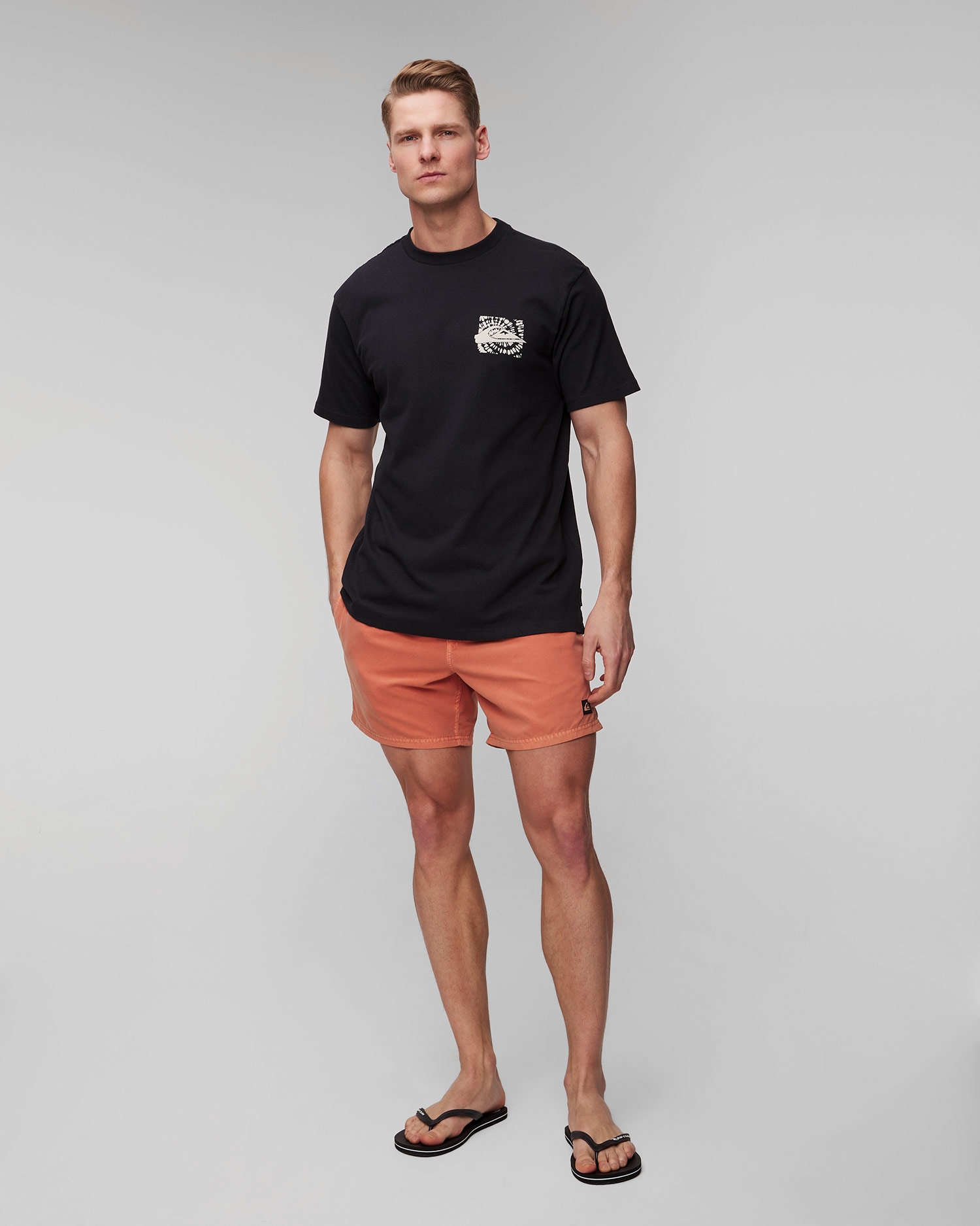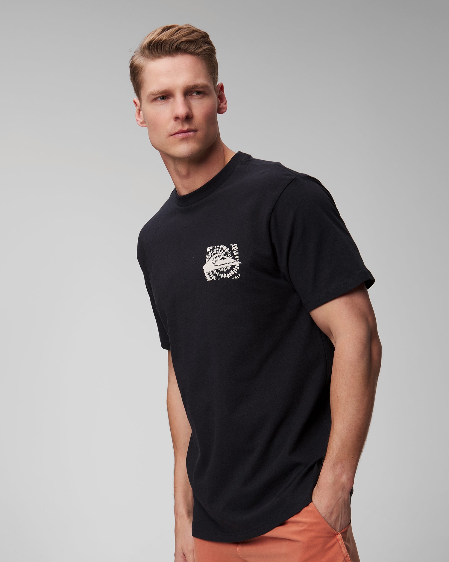 Quiksilver Hurricane or Hippie Moe T-shirt made of cotton. 220 g/m2 grammage ensures durability. The T-shirt has a regular fit that provides freedom of movement and comfort. Round neckline. Interesting pattern and colours add a unique touch to the piece, ideal for the beach, meetings with friends or summer adventures.