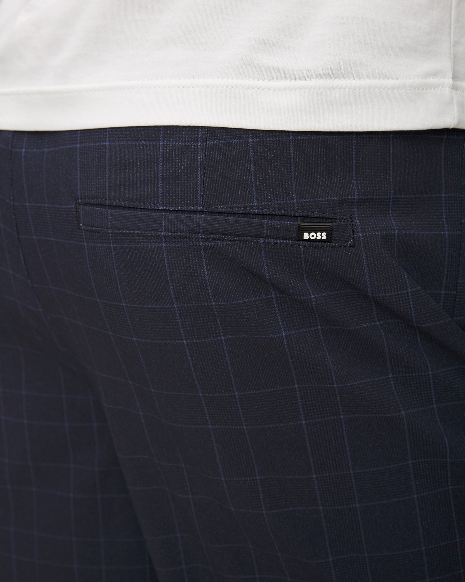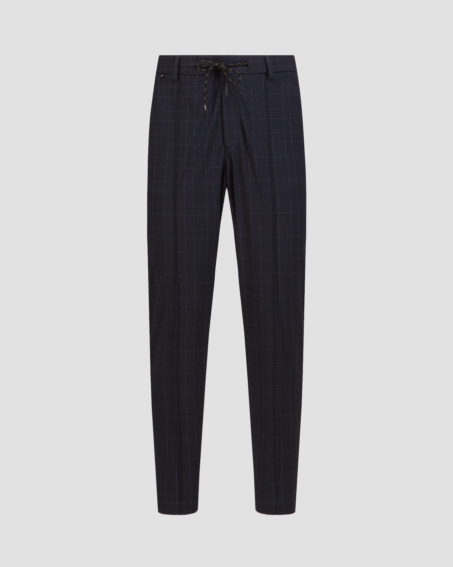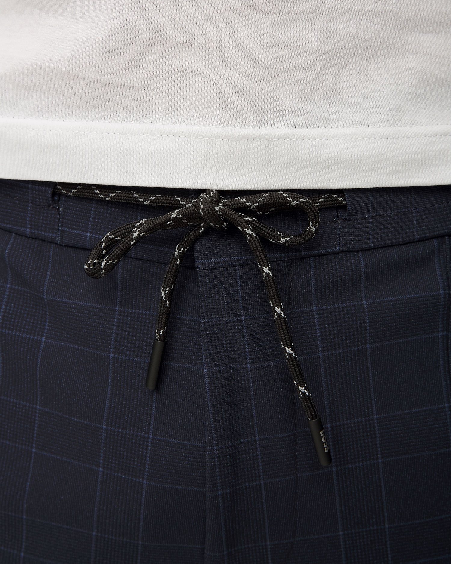 Hugo Boss Perin men's checked pants are for men who don’t want to give up on style to keep comfort. The high elasticity knit fabric provides the comfort of wearing. Tapered legs with vertical stitching emphasize the elegant style of the pants. Waist belt loops, the trousers are tied with a decorative cord with aglets.