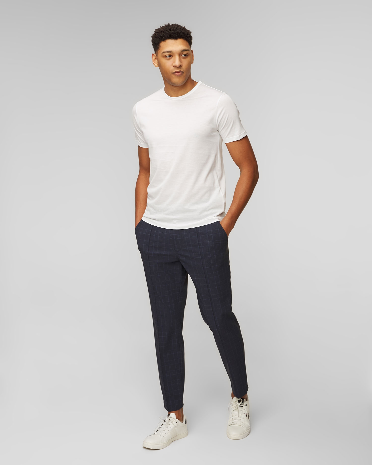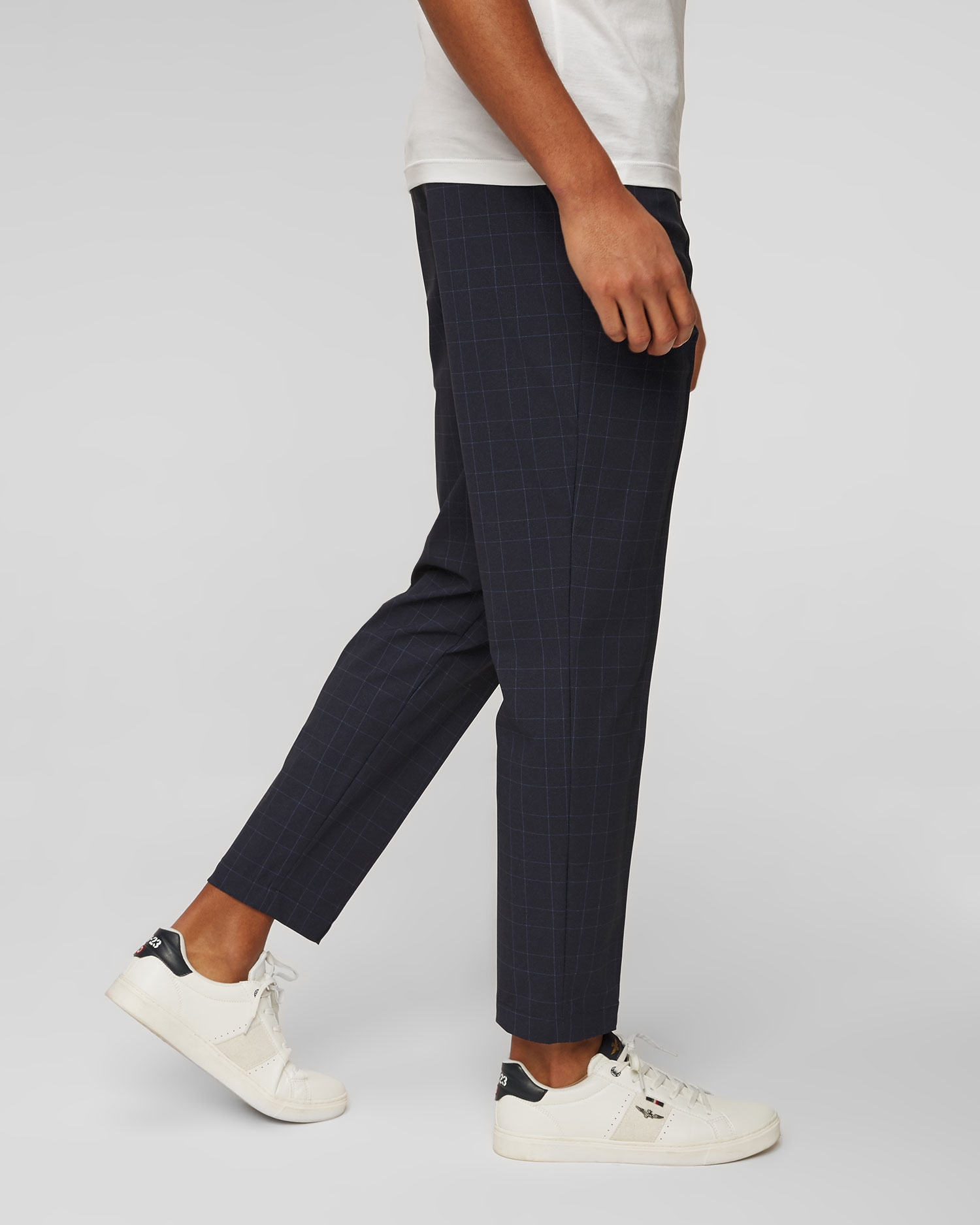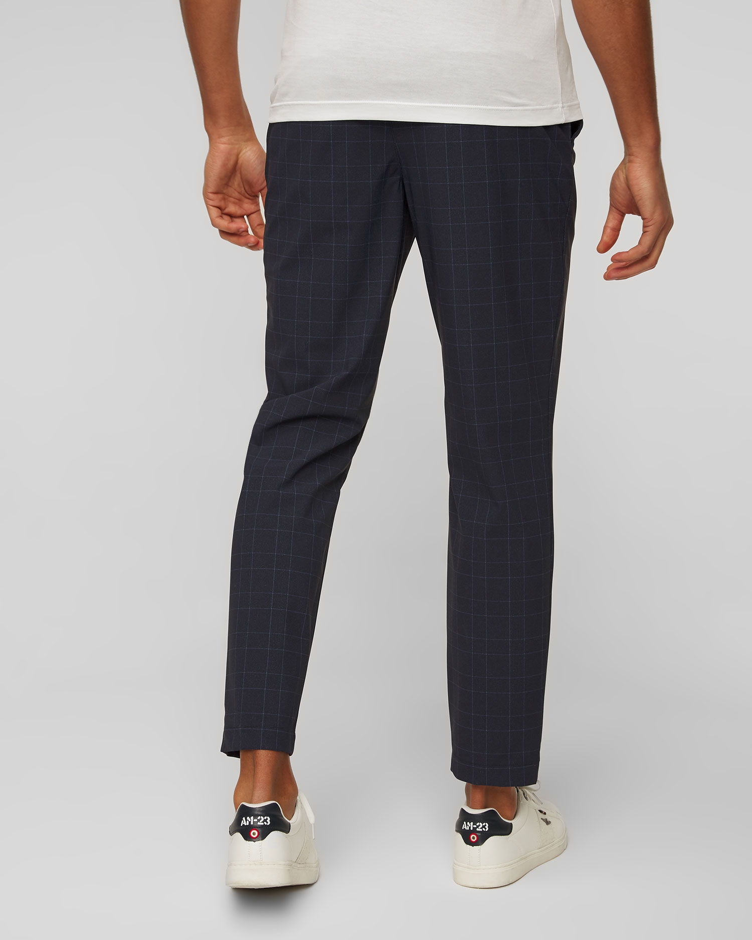 Hugo Boss Perin men's checked pants are for men who don’t want to give up on style to keep comfort. The high elasticity knit fabric provides the comfort of wearing. Tapered legs with vertical stitching emphasize the elegant style of the pants. Waist belt loops, the trousers are tied with a decorative cord with aglets.