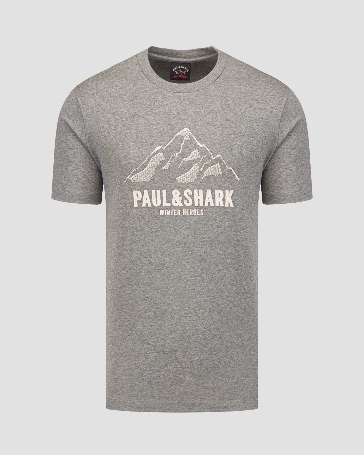 Paul&Shark T-shirt decorated with embroideries and a Paul&Shark logo in beige. Straight cut with a round neckline, finished with piping.