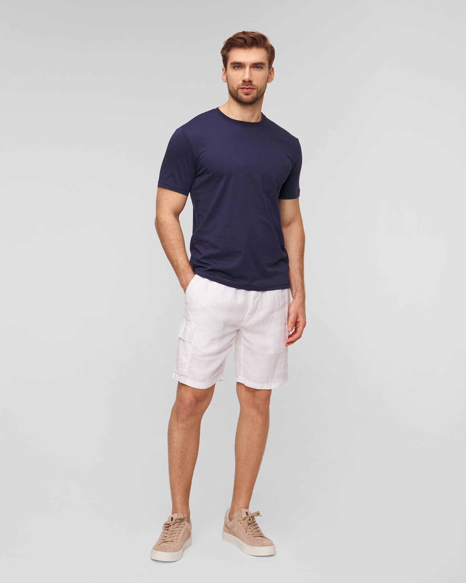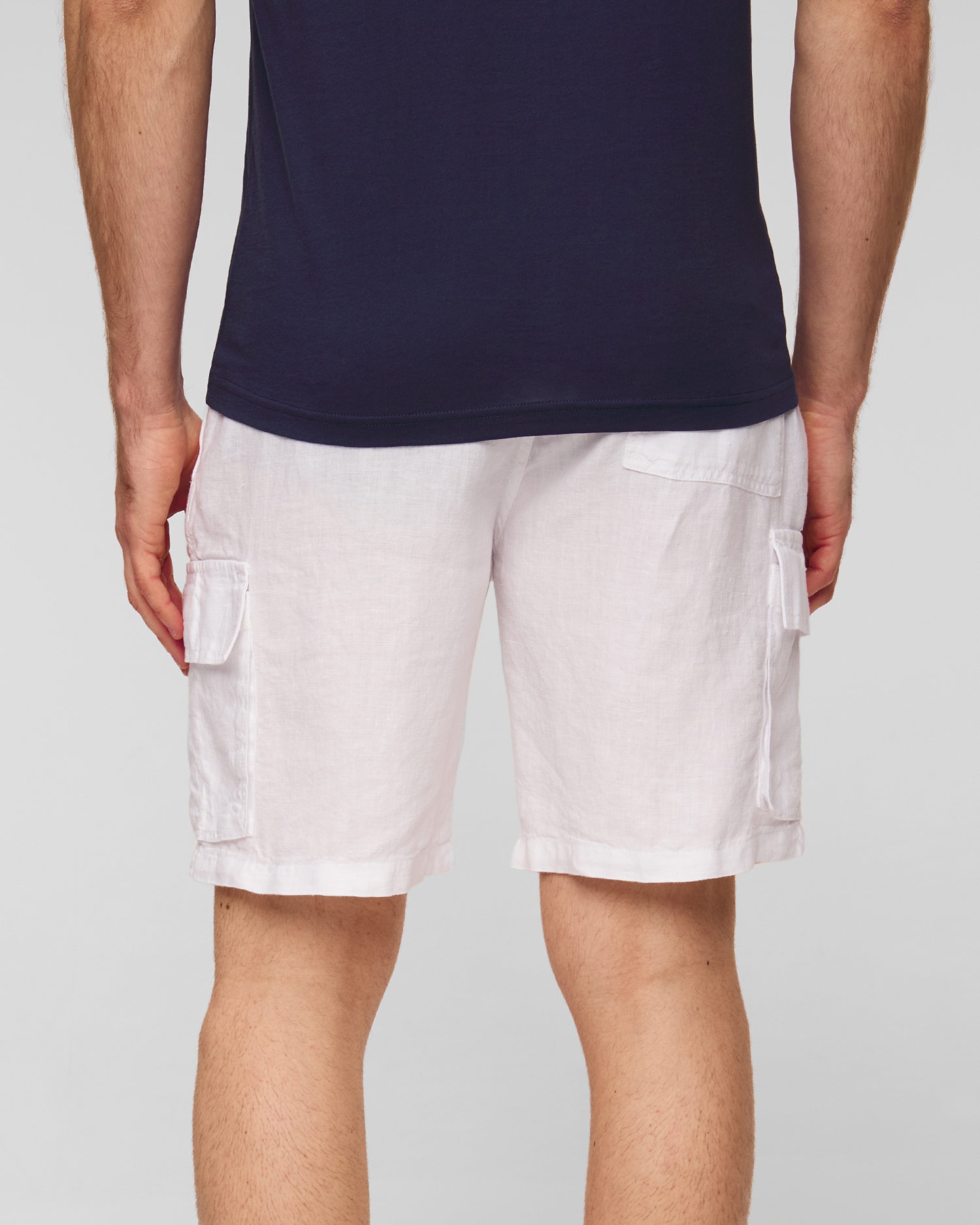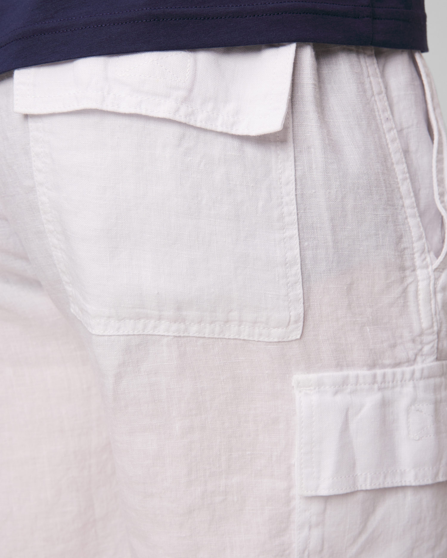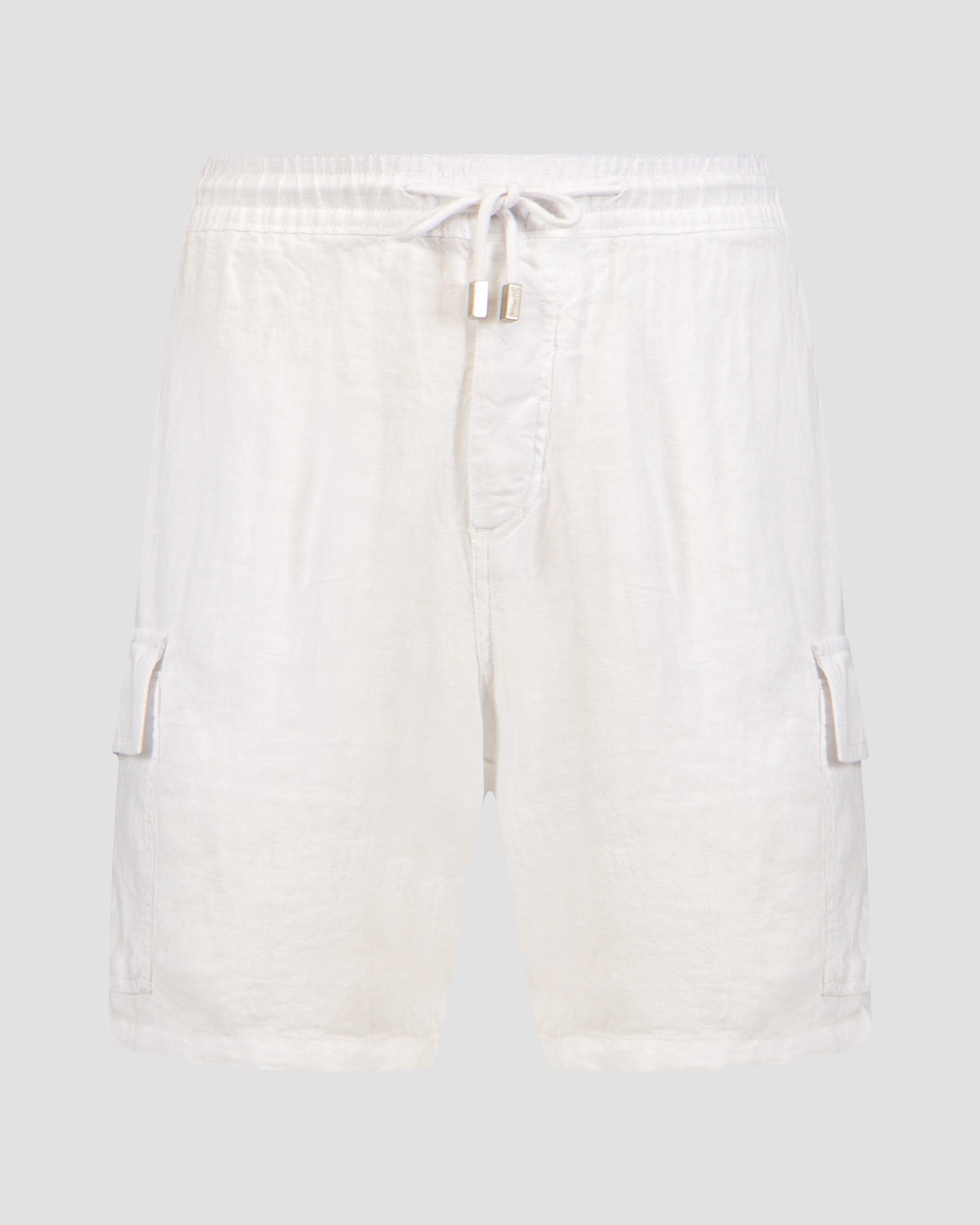 The Vilebrequin Baie men's linen shorts with cargo pockets will work for a casual summer look. Two slip pockets on the sides and two patch pockets on the back. There is an elastic waistband and a drawstring tie.