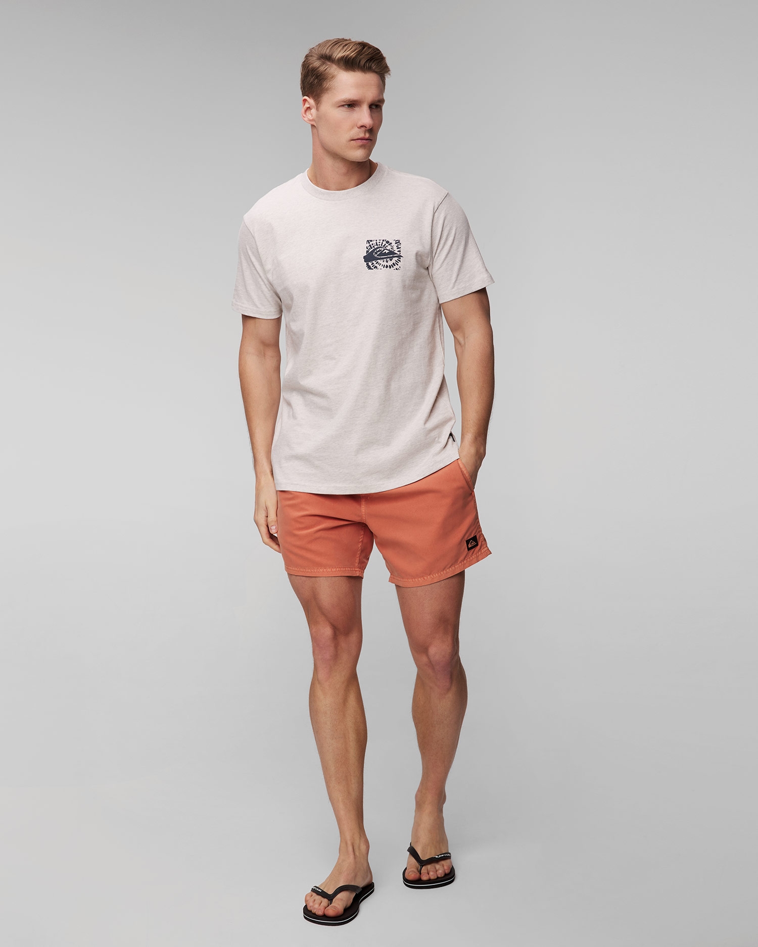Quiksilver Hurricane or Hippie Moe T-shirt made of cotton. 220 g/m2 grammage ensures durability. The T-shirt has a regular fit that provides freedom of movement and comfort. Round neckline. Interesting pattern and colours add a unique touch to the piece, ideal for the beach, meetings with friends or summer adventures.