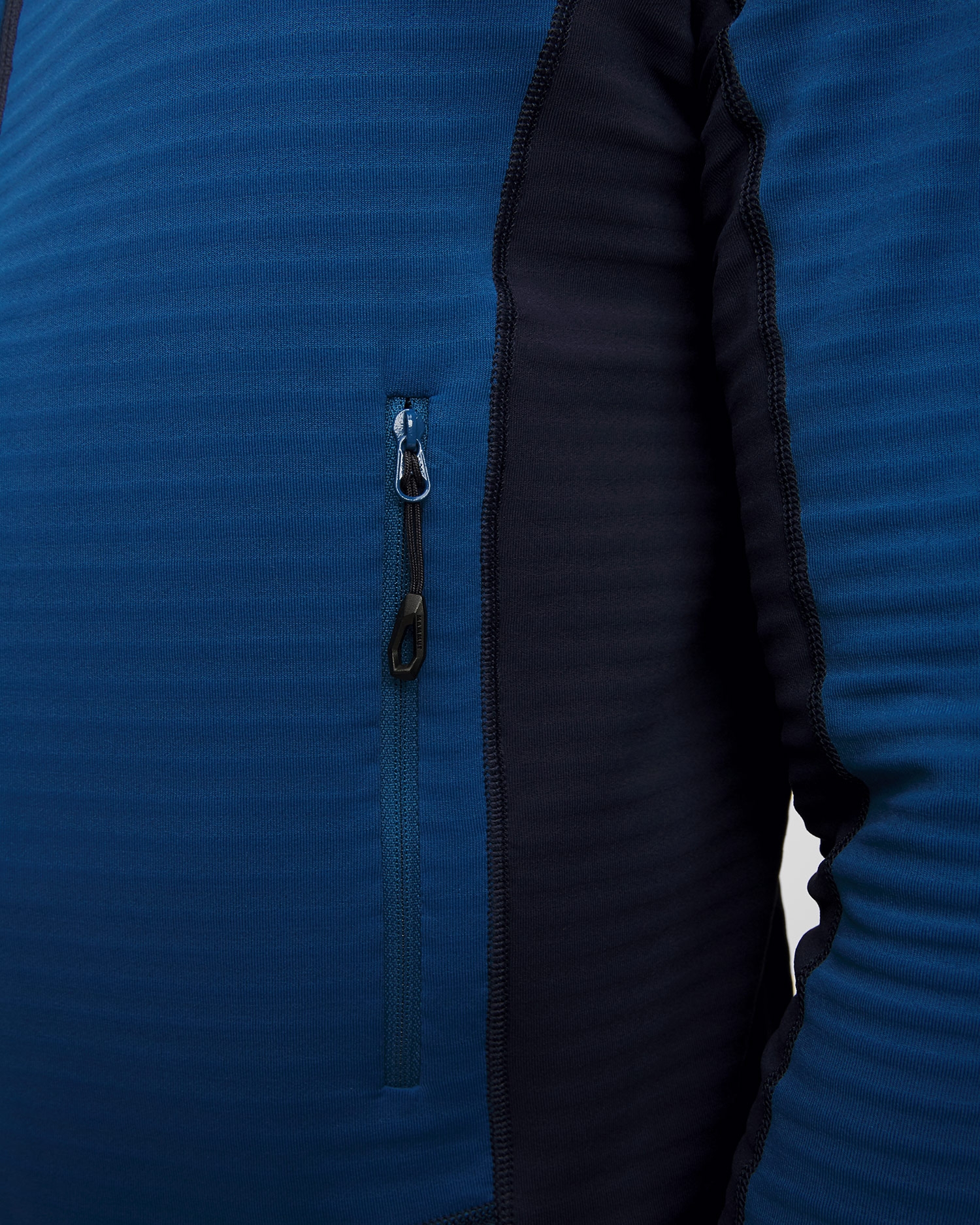 TAISS men's sweatshirt by Mammut will serve you well as an mid-layer and top layer of your mountain outfit. Made of lightweight, technical fleece with a waffle-like texture. Excellent breathability and quick-drying properties will take care of dry comfort and the roomy structure prevents chilling. Zippered. Side pockets with zips are located placed higher to cooperate with harness and the hip belt. Sleeve cuffs with thumbholes. Edges trimmed with elastic piping for an even better fit.