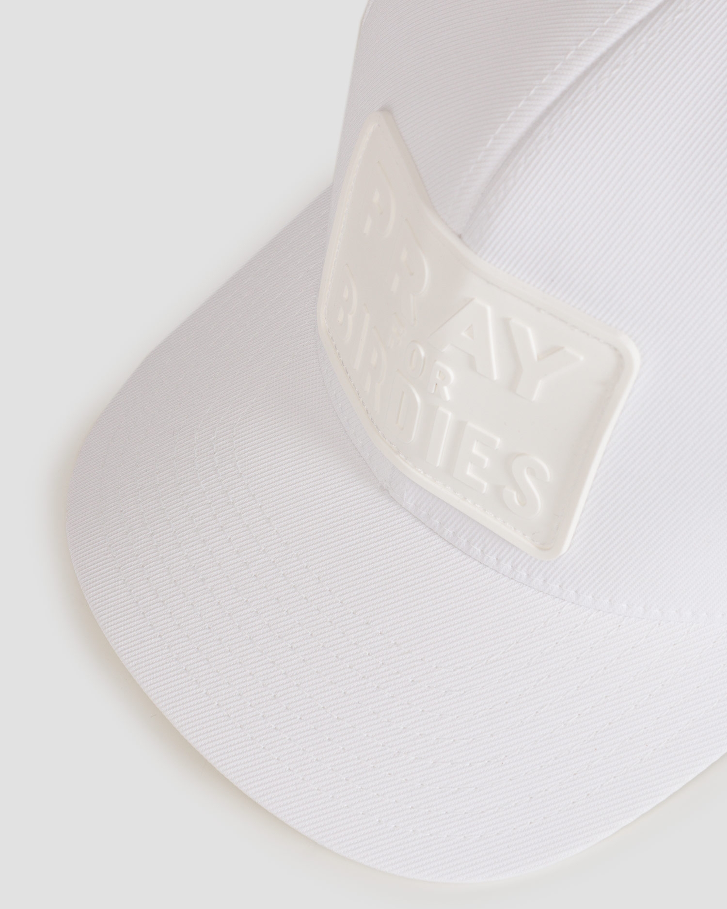 The cap will add a elegant vibe to your golf outfit. Minimalist cap with "Pray for Birdies” writing.