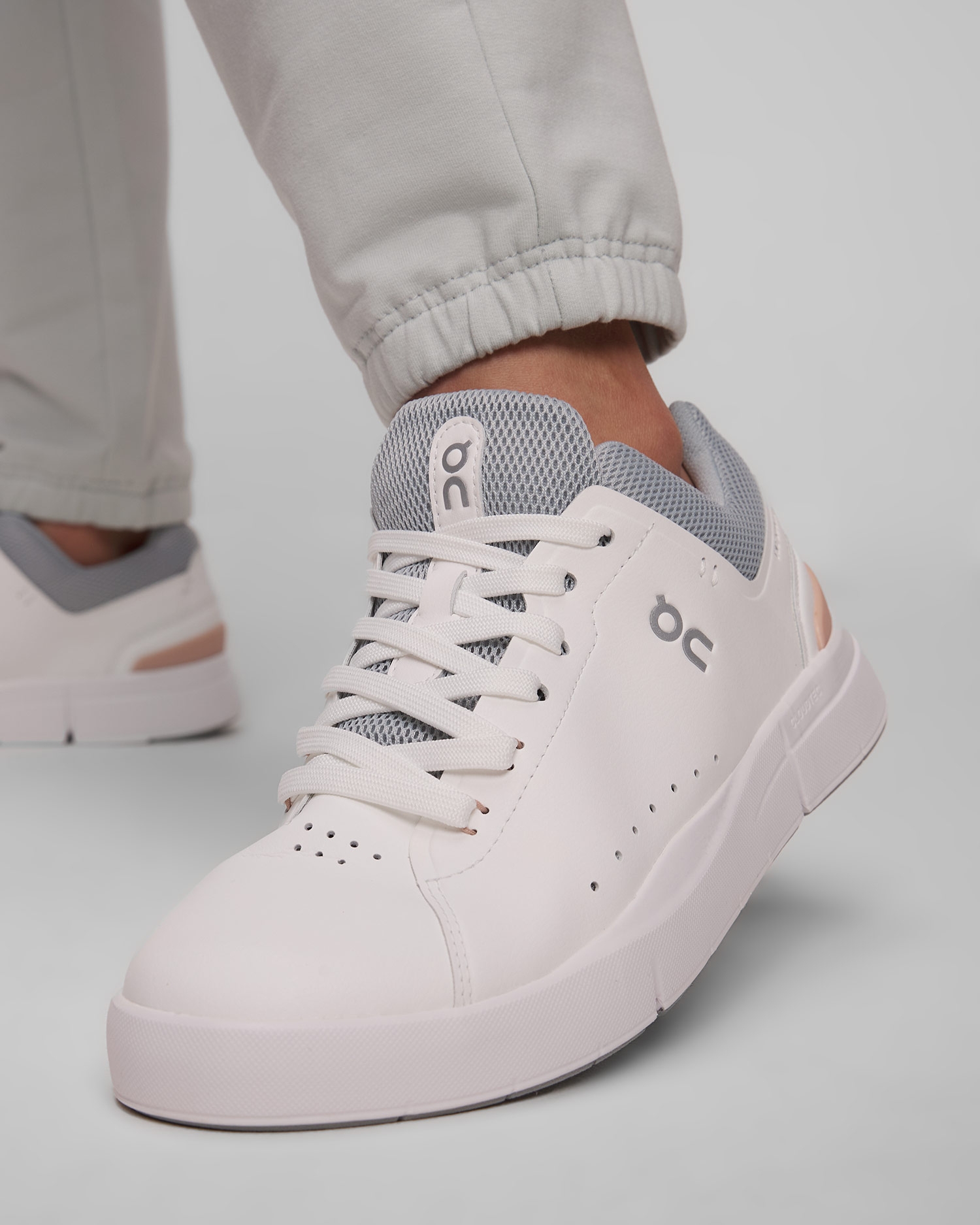ROGER ADVANTAGE sneakers inspired by Roger Federer's tennis world. With a timeless look with retro elements and sustainably sourced materials, this piece combines ON Running's advanced running shoe technologies, but also environmental concerns.