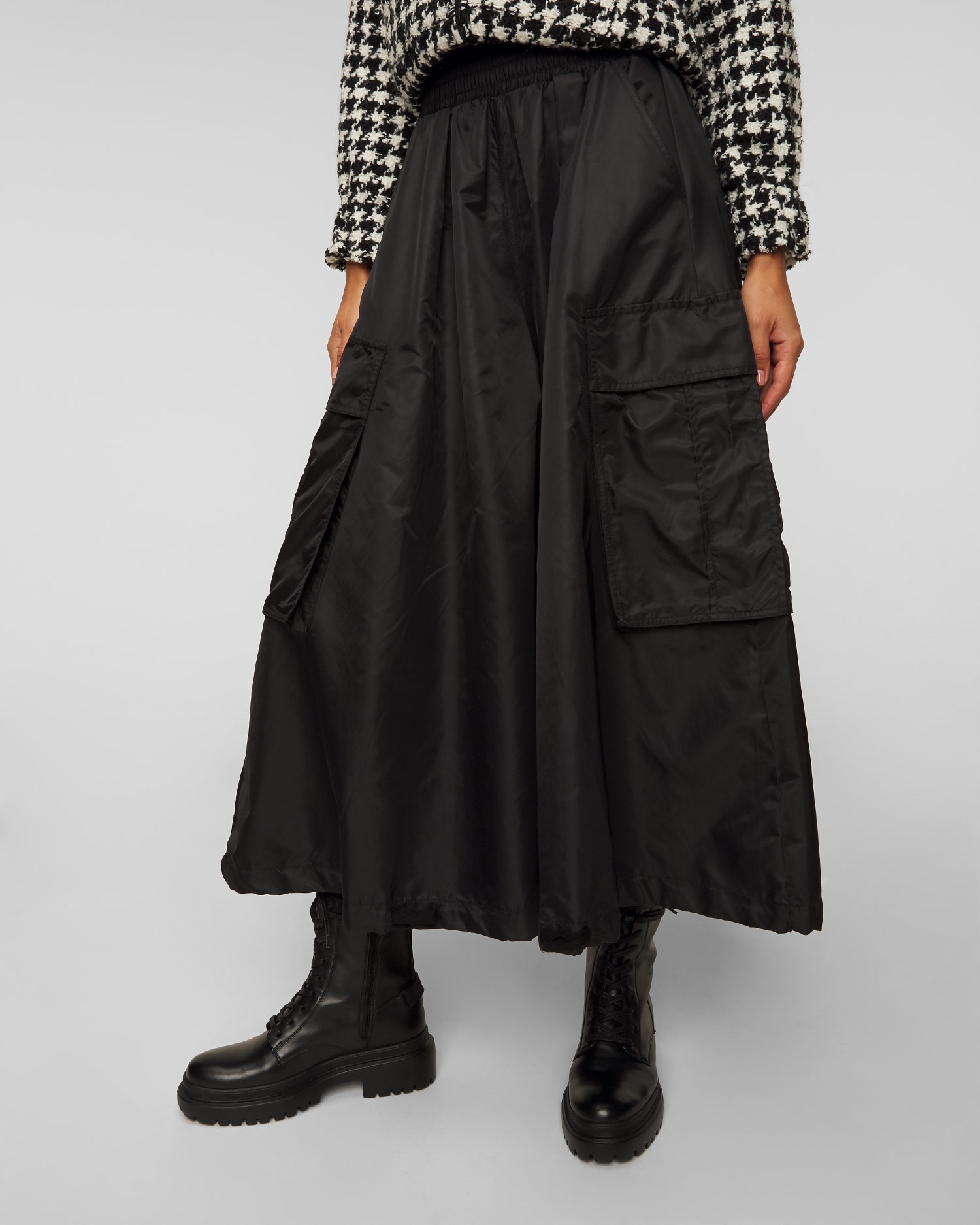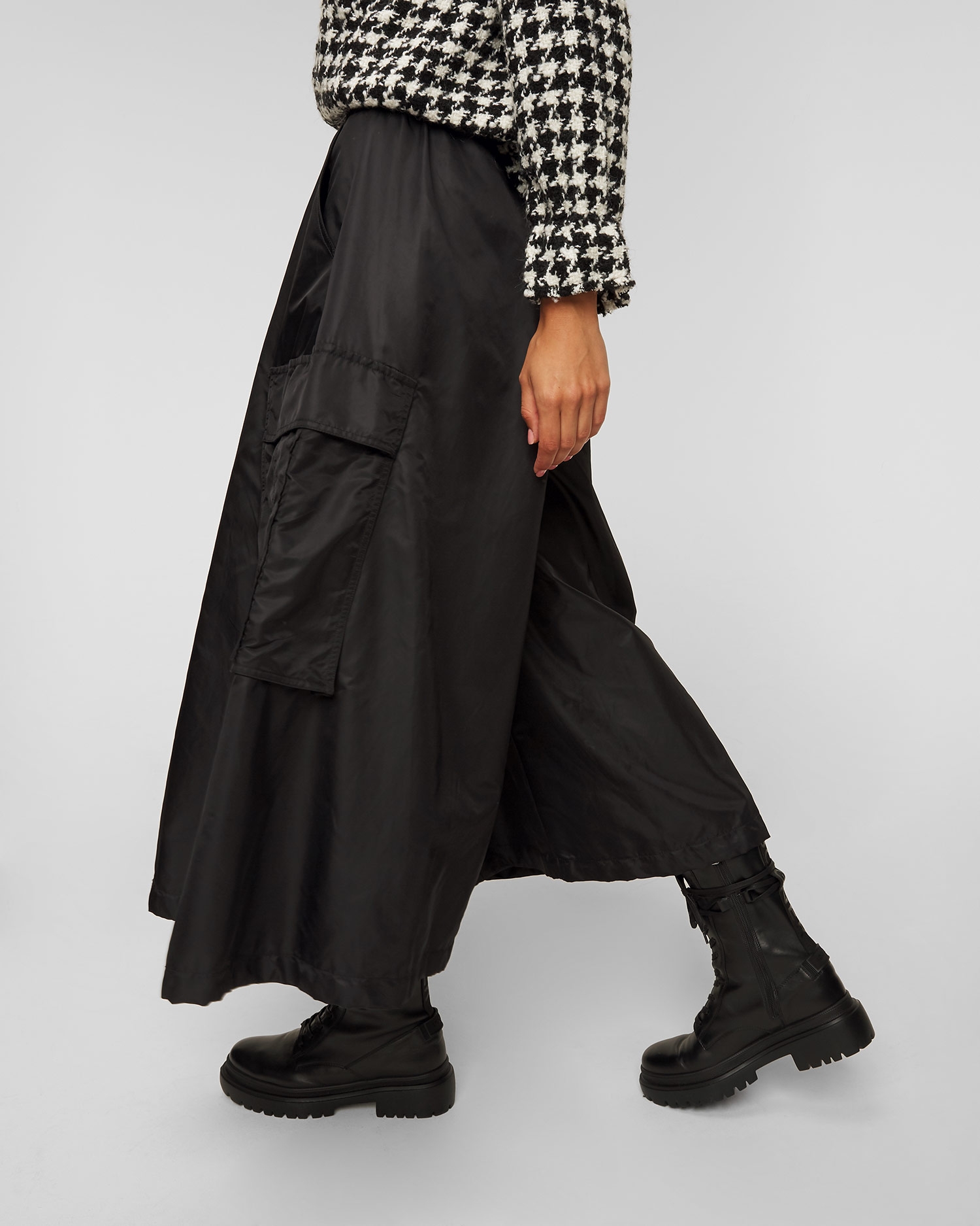 Deha's wide-leg women's trousers, made from soft nylon, are distinguished by their coulotte-style cut. Two spacious patch cargo pockets underline their unique character. They feature drawstrings at the ends of the wide legs. Two slip-on side hand pockets. Wide elastic waistband for a snug fit.