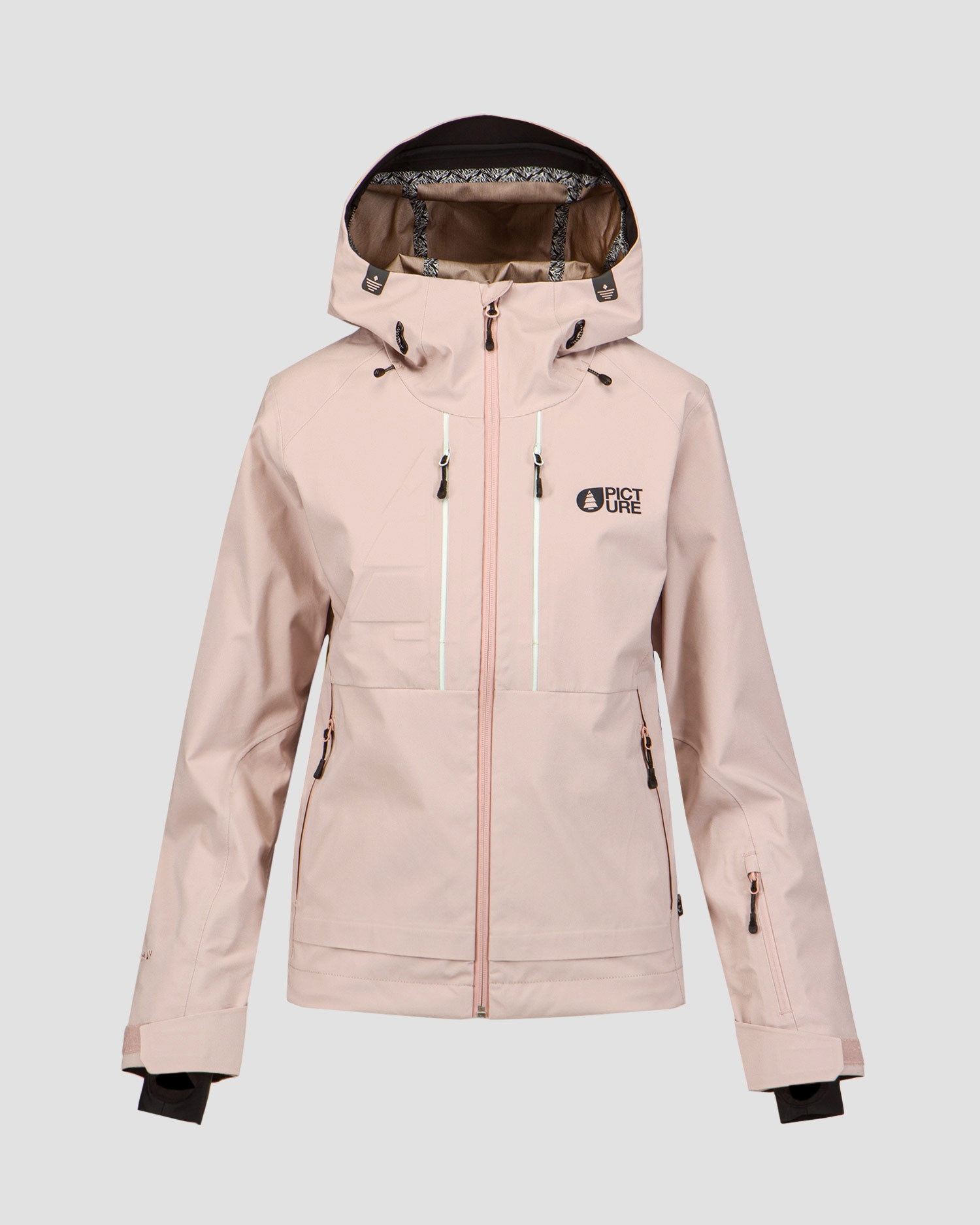 The women's Picture Organic Aeron 3L 20/20 jacket is a great stretch hardshell jacket for skitouring and freeriding enthusiasts, it is ready for all your big mountain adventures and made for long days of riding on untracked powder.