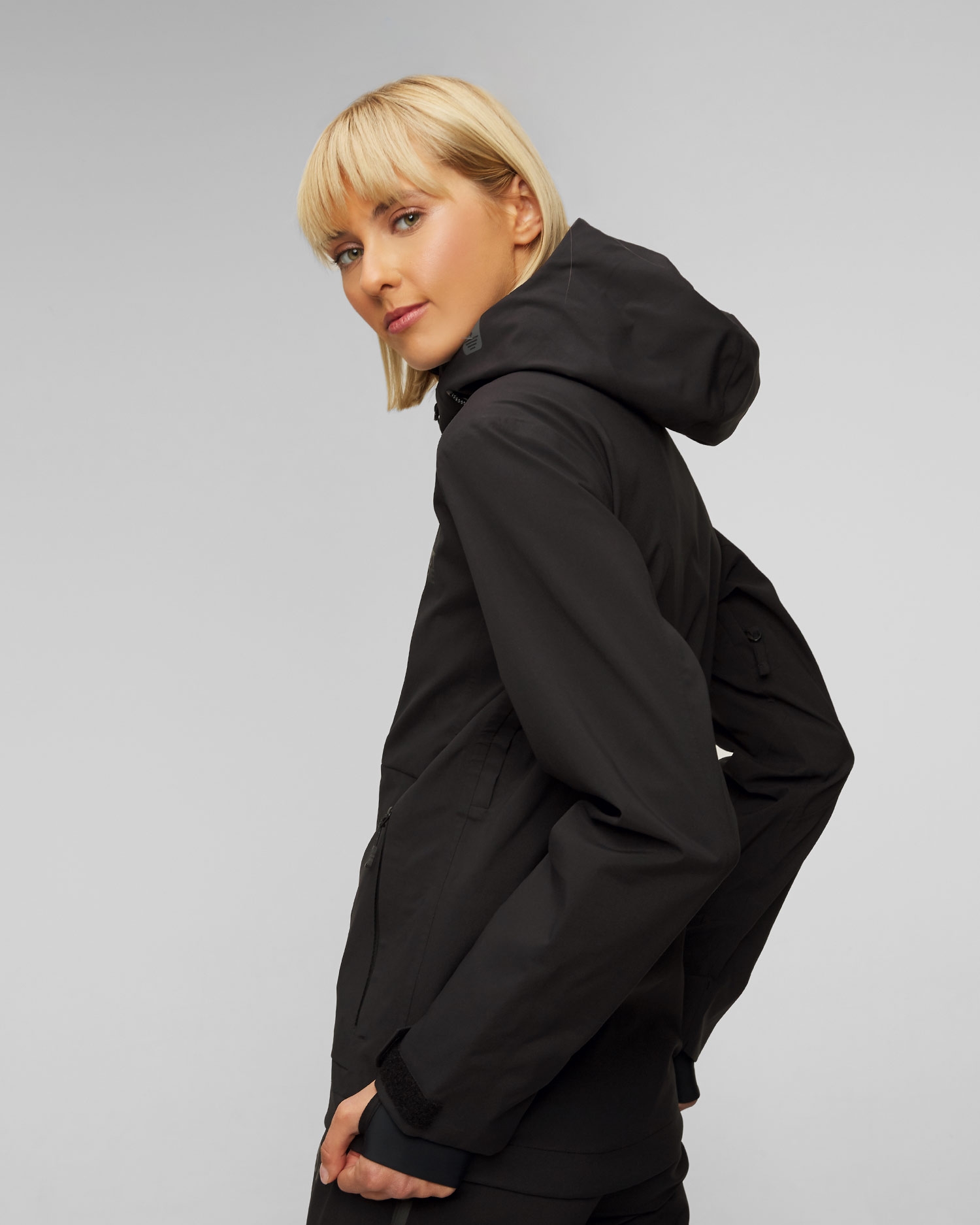 The jacket has adjustable cuffs, hood, and jacket hem. This set of features provides excellent protection in winter weather conditions. The pre-shaped, sewn-in sleeves with integrated hand protectors with thumb hole hold the jacket in place and warm the hands. In addition, reinforced high-factor zones provide even greater durability.