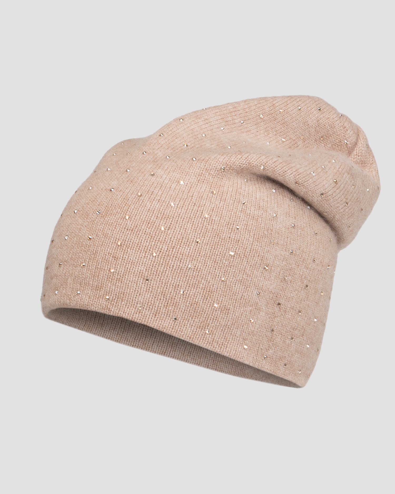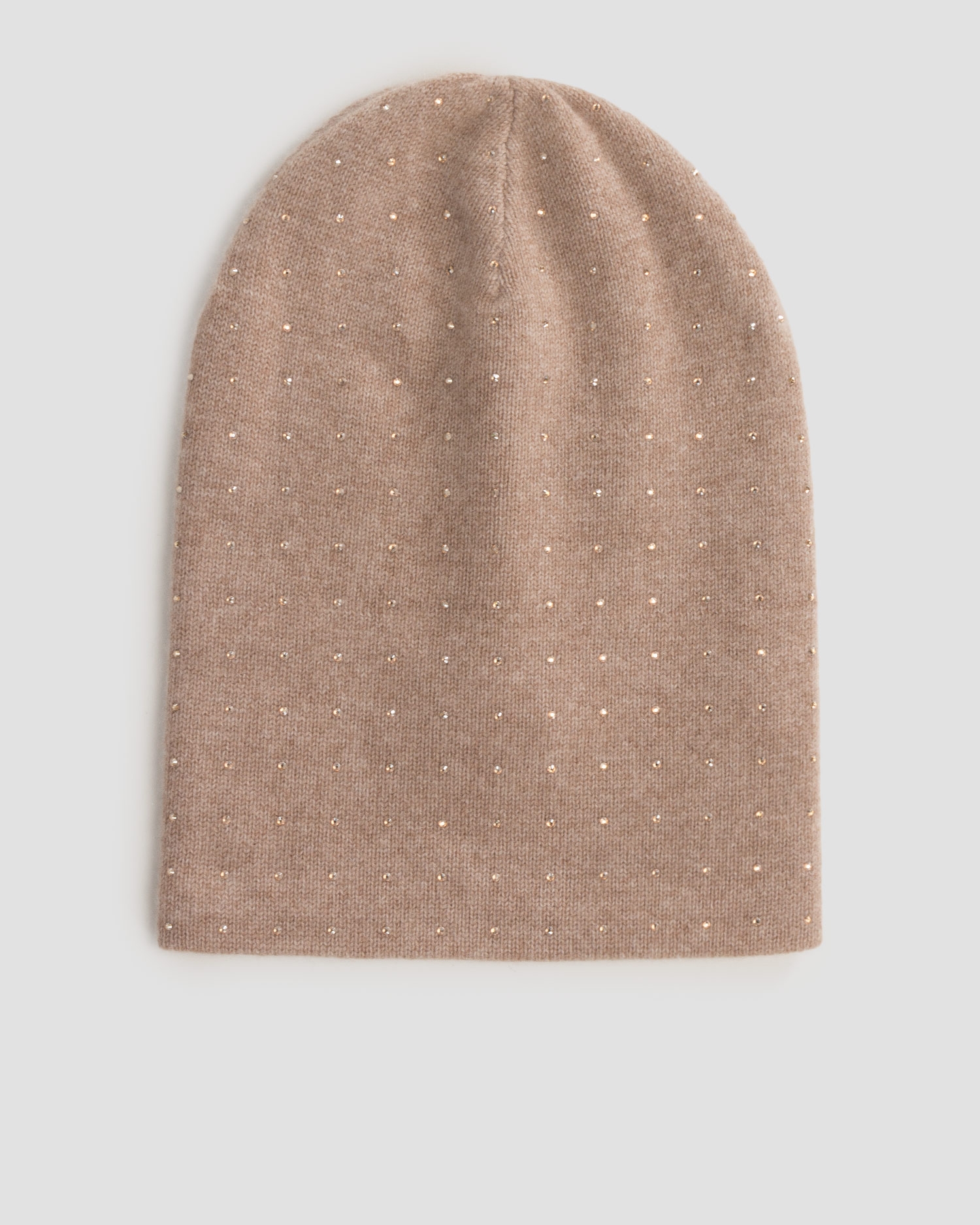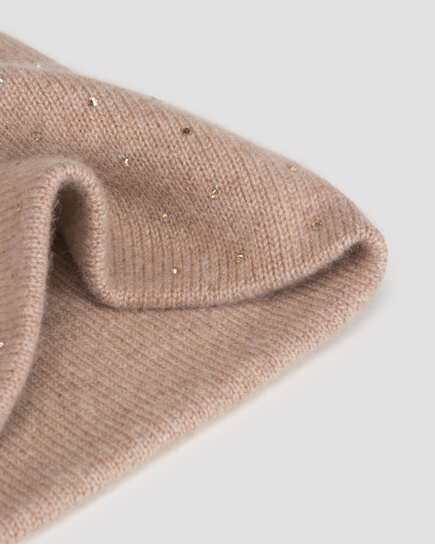 The brown William Sharp women's cashmere beanie will complement everyday winter styling. It is made from extremely soft and fine cashmere with natural breathability and thermoregulation properties to keep you comfortable in cold temperatures. With a classic design, the cap is decorated with hand-sewn Swarovski crystals that add a luxurious touch to the proposal.