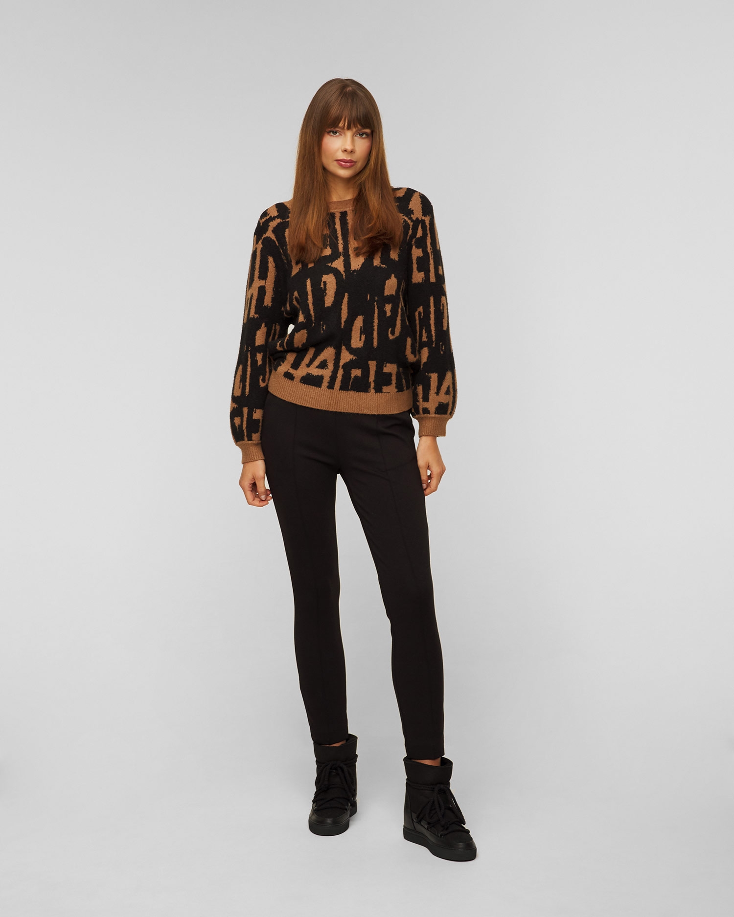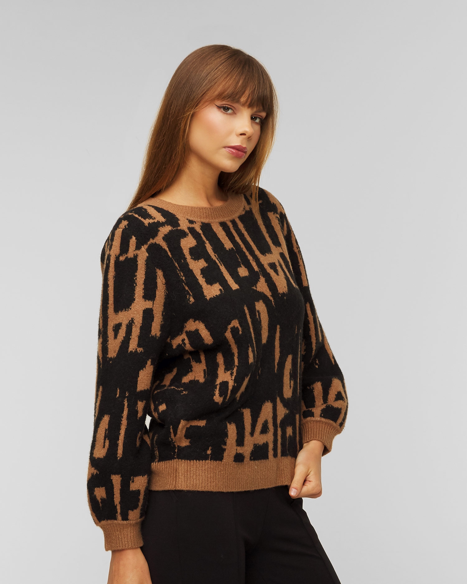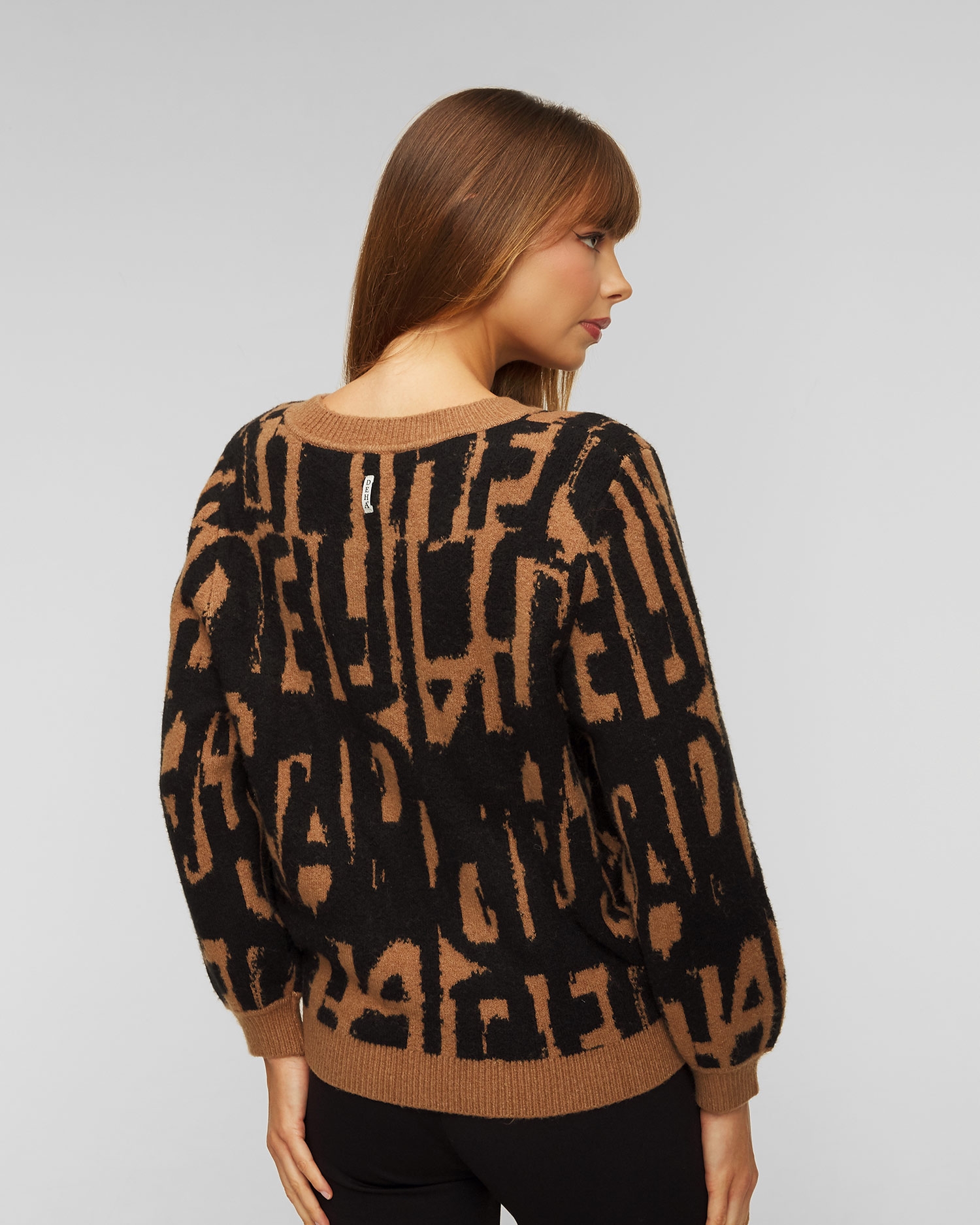 Embellished with Deha's own jacquard pattern, this jumper is versatile and comfortable, providing comfort and warmth on colder days. Pair it with a pair of jeans for a casual look or with a wide skirt for a personal and unique style. Made from a soft and stretchy blend with wool and cotton. Cut with a round neckline and featuring wide balloon sleeves, it is finished with a ribbed hem.