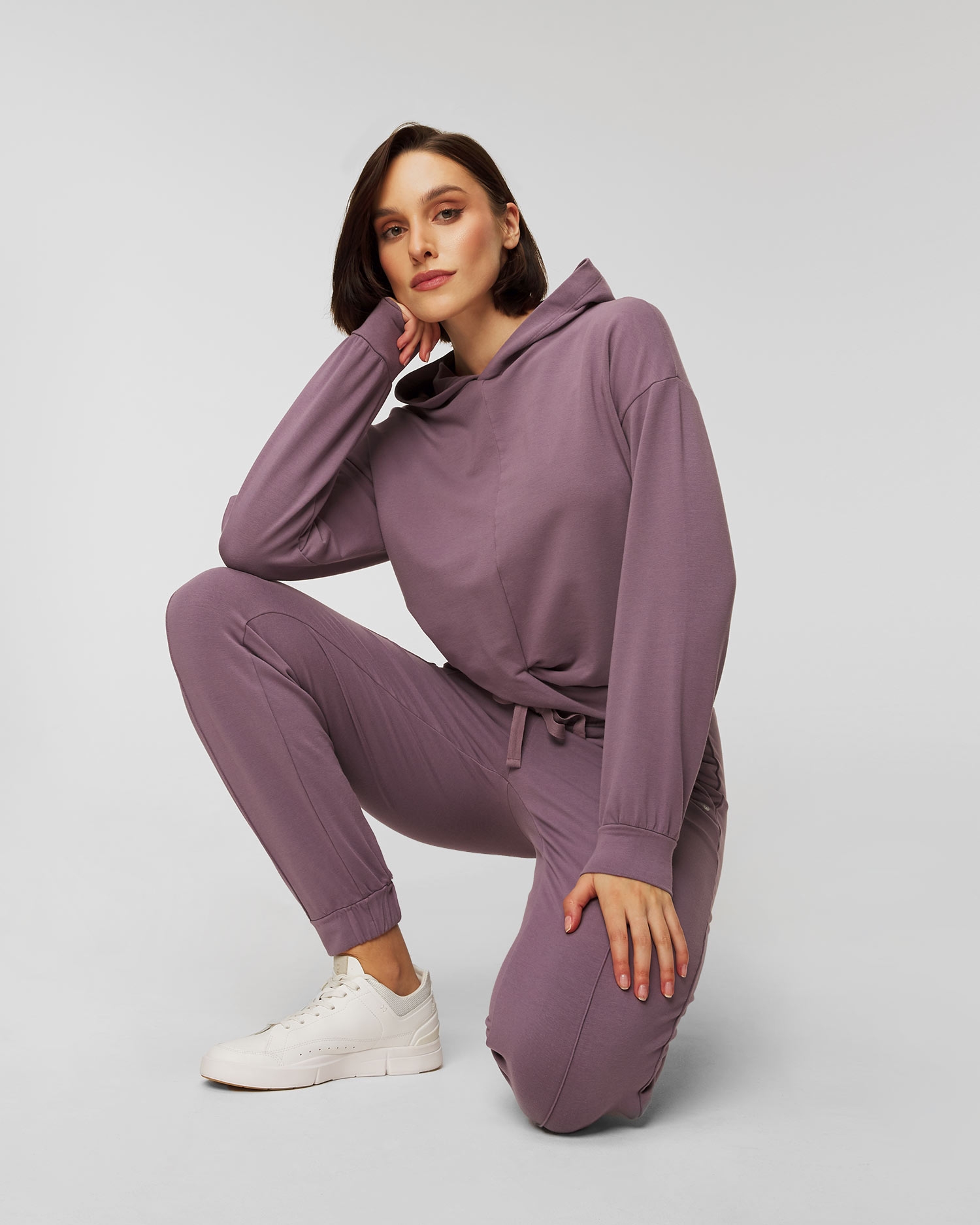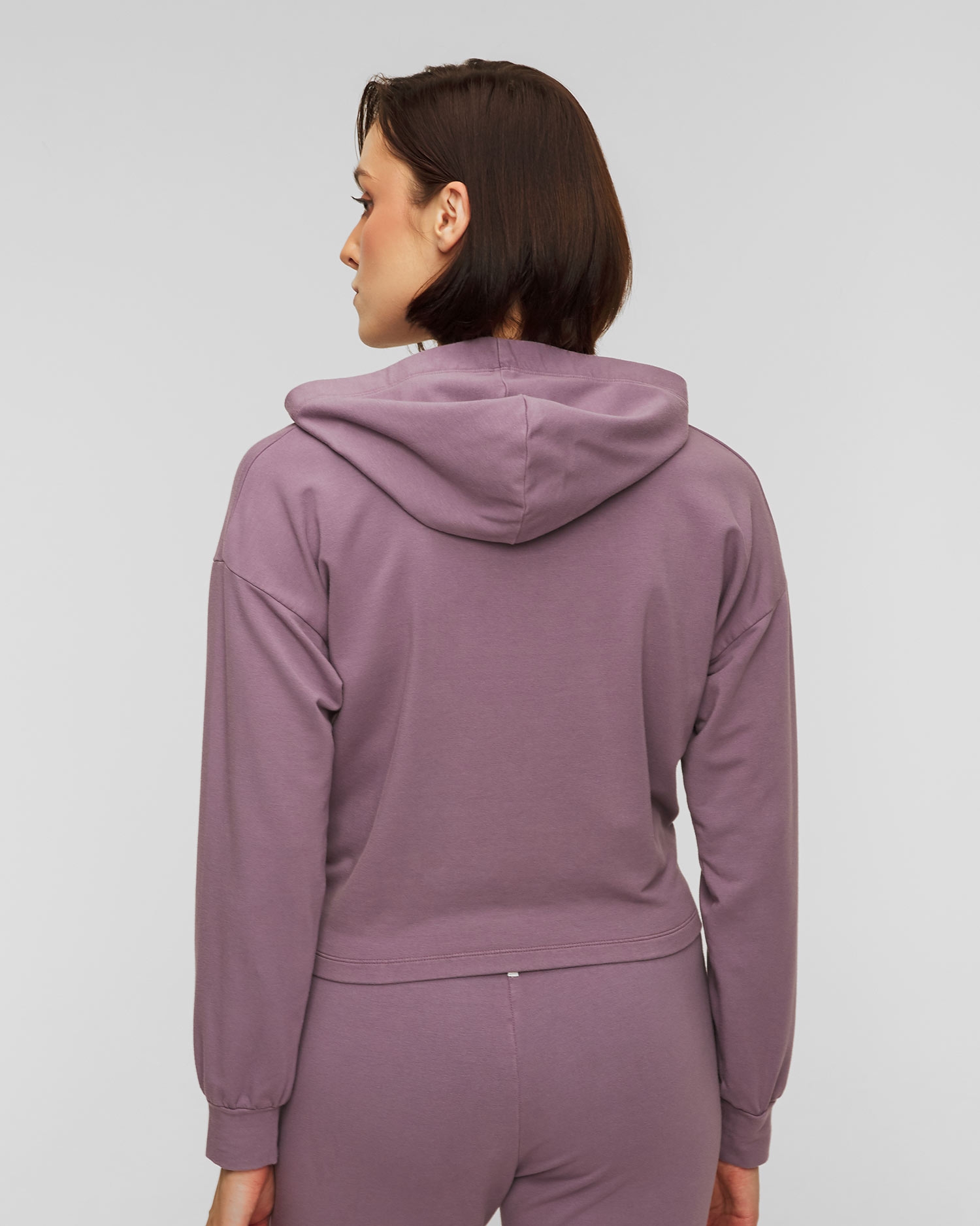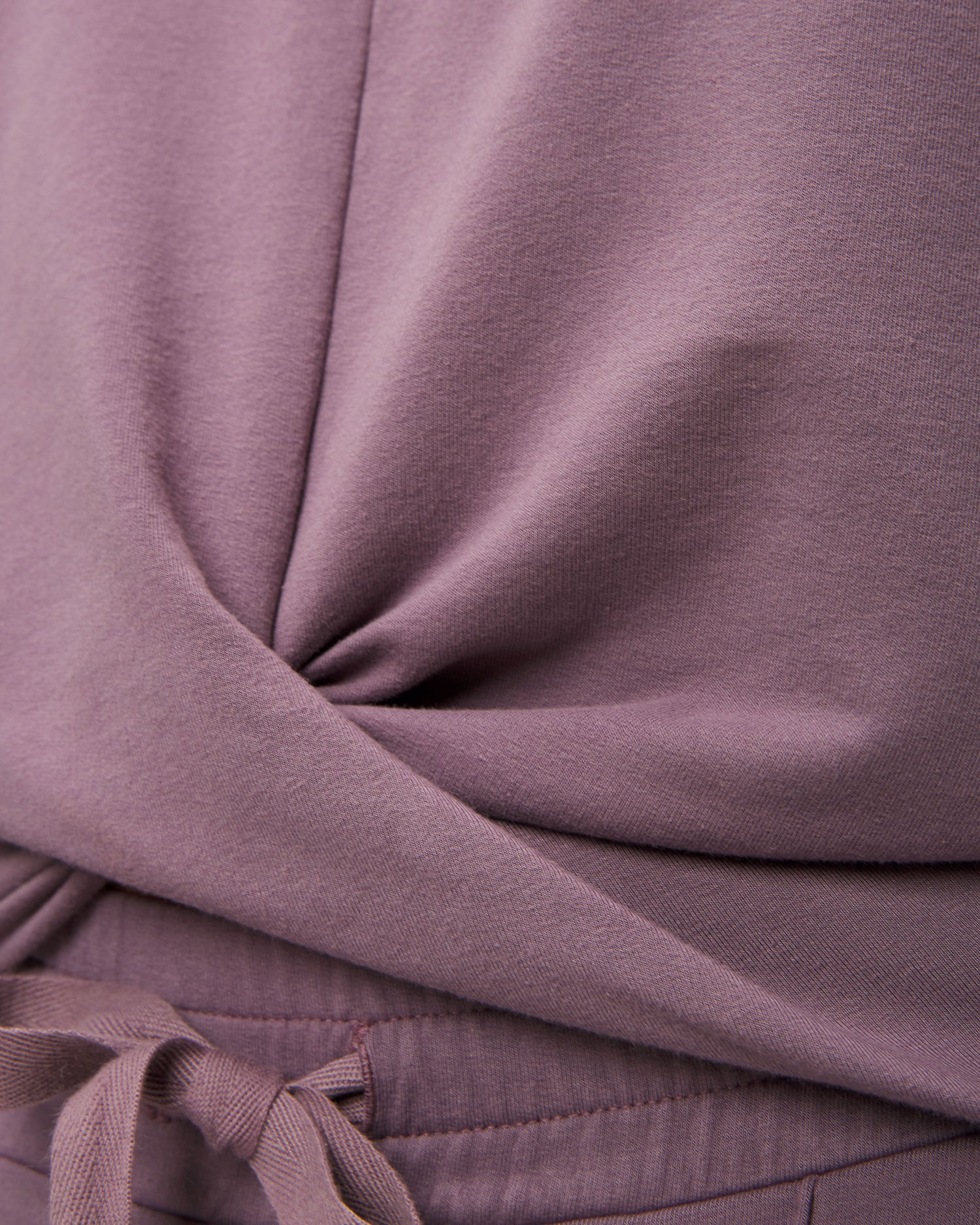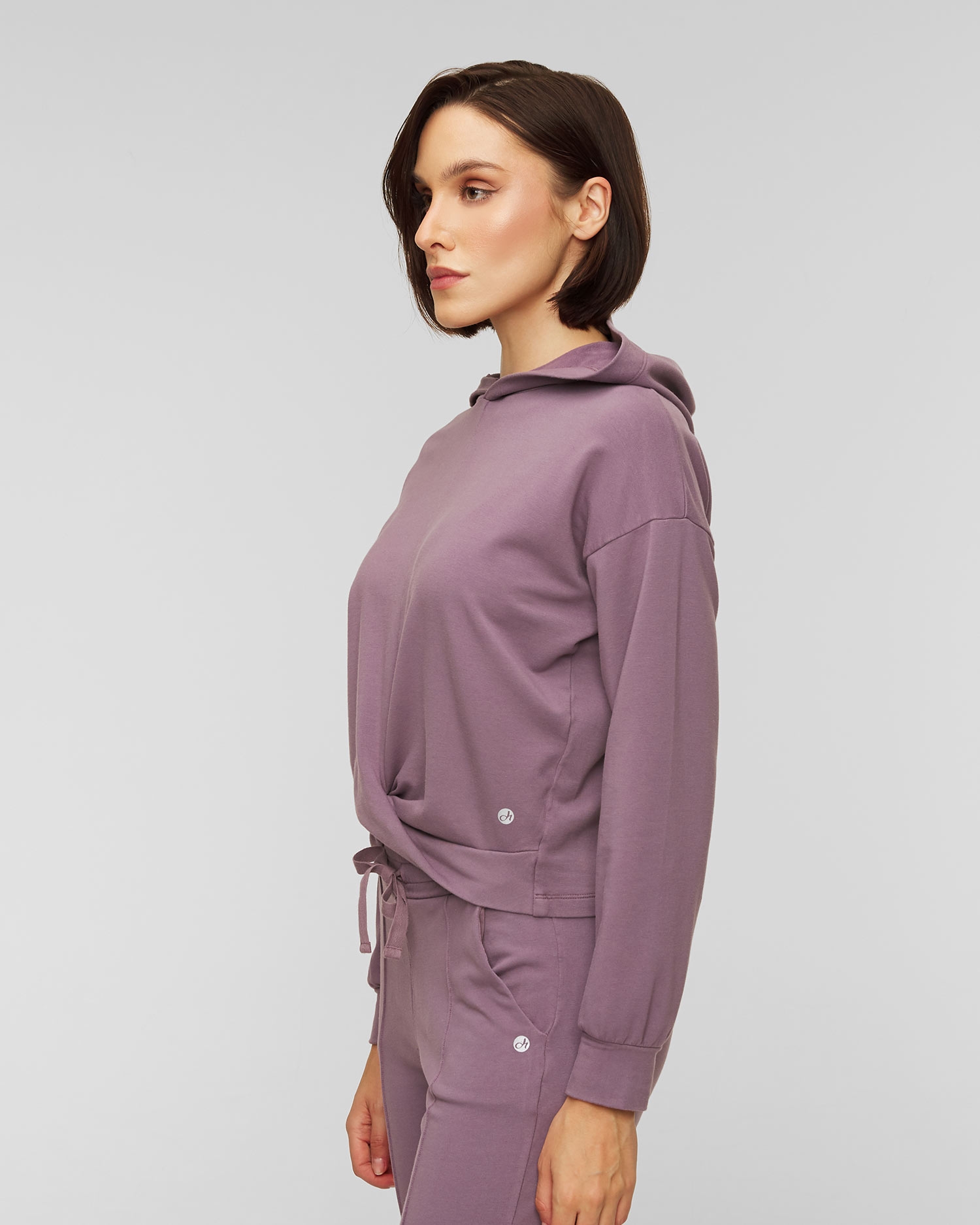 The Deha sweatshirt is a soft and tactile shorter hooded sweatshirt. The knot at the front emphasises its original character. The sleeves are finished with a ribbed hem. Made of modal, which is a breathable material that is pleasant to the skin, does not irritate even the most delicate parts of the body and does not cause allergies. It keeps you dry in comfort, absorbing up to 50% more moisture released by the body than cotton. Scientists claim that it also has properties that inhibit bacterial growth.