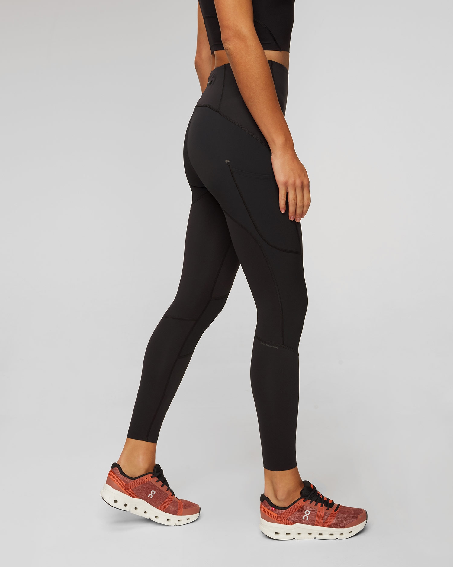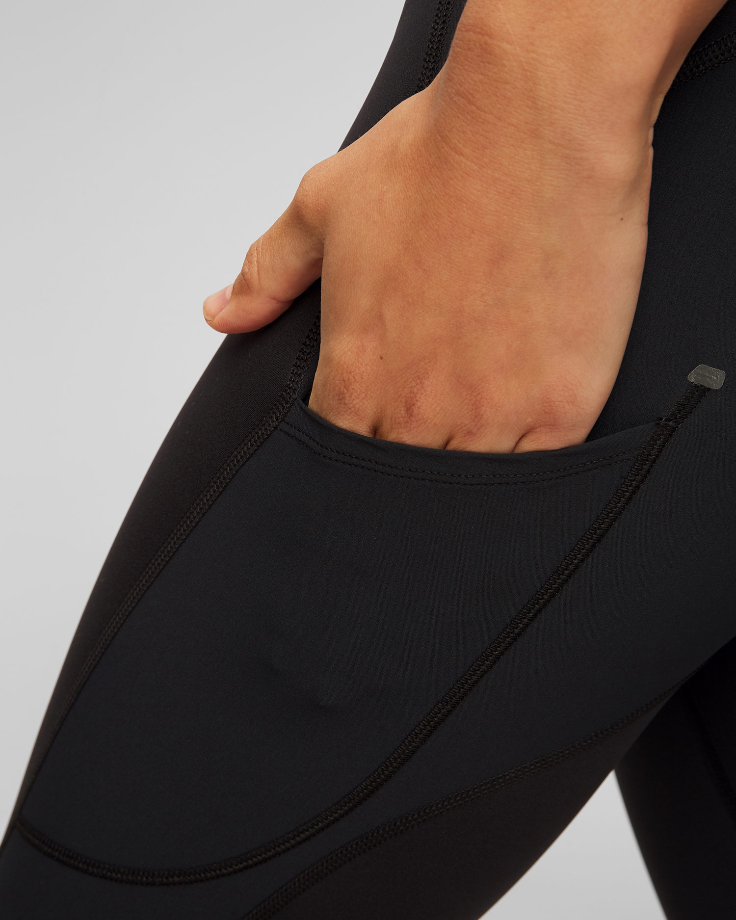 Made from lightweight, stretchable and quick-drying recycled fabric. Reinforced knee area, sides and back of leggings to minimise the risk of accidental abrasion. Elastic materials conform to the body. Raised top keeps leggings in place. Two cargo pockets on the thighs. Zipped pocket on waist for valuables.
