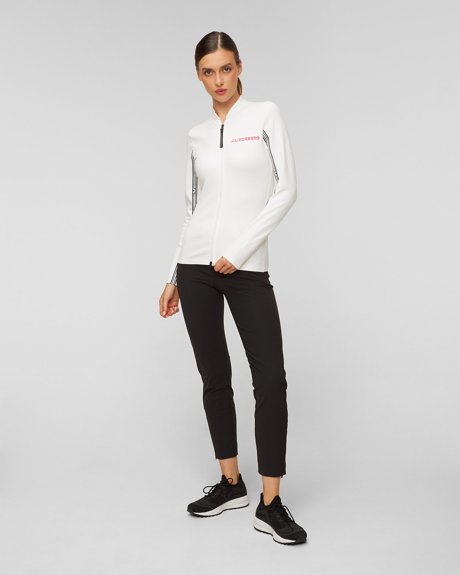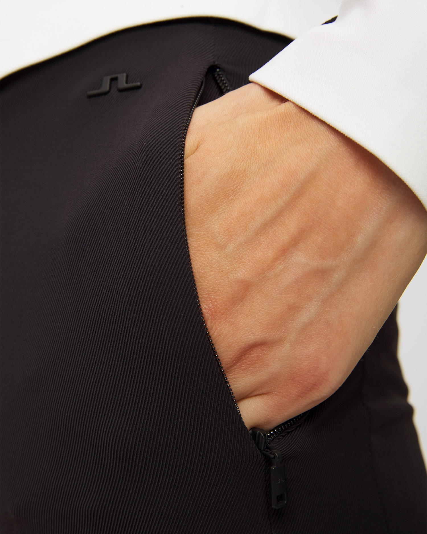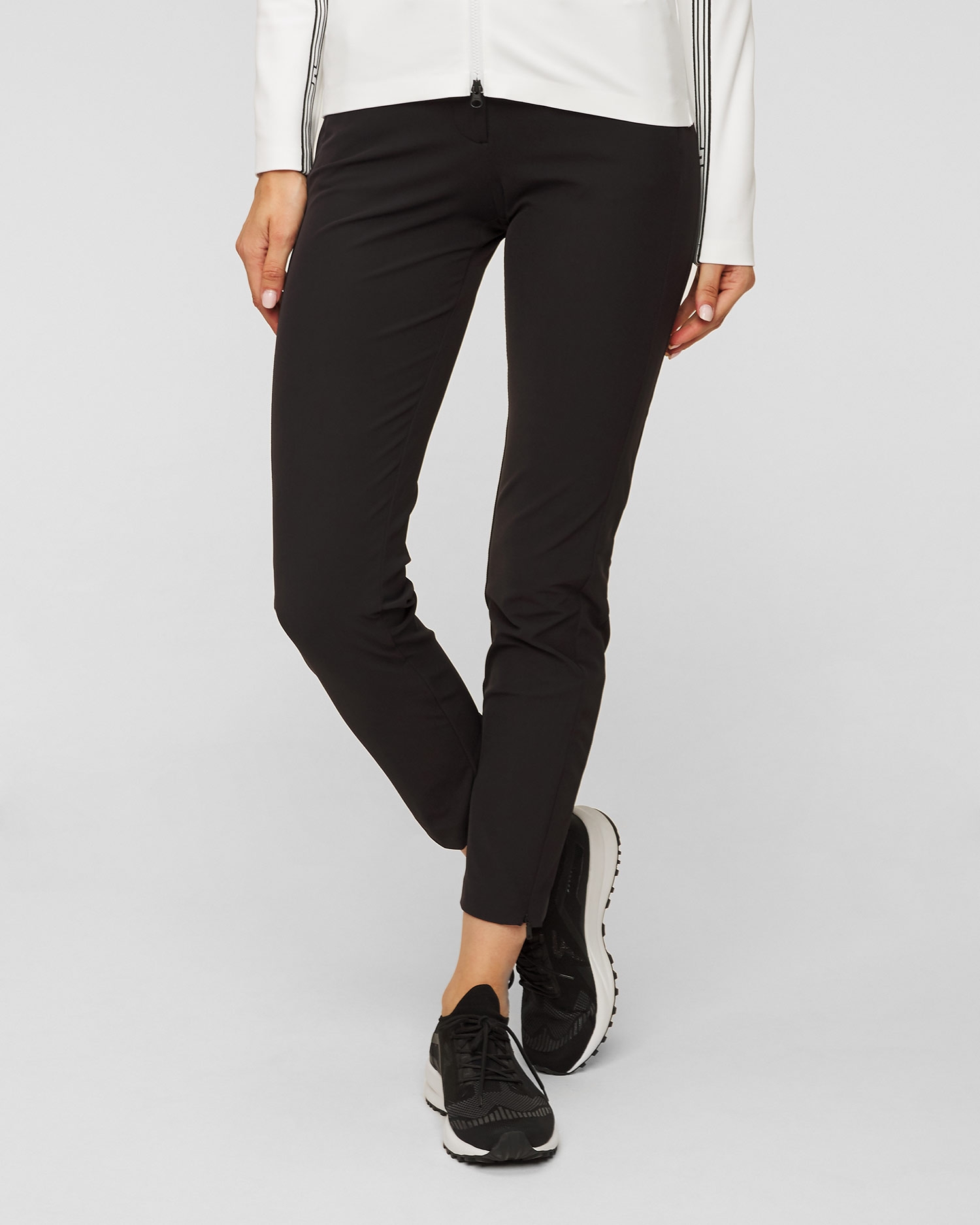 The J.Lindeberg Maria women's trousers are synonymous with sporty elegance. The classic design and versatile colours will make it easy to match them with your favourite pieces of clothing to create a stylish set for the golf course. The trousers are made entirely from a waterproof and quick-drying twill fabric, whose properties will ensure adequate protection from moisture and dry comfort during intensive play. The four-way stretch fabric adapts perfectly to the body while ensuring complete freedom of movement. Mid-rise trousers with button and zip fastening. Legs finished with a sewn-in zip. Trousers with two side pockets and two back pockets.