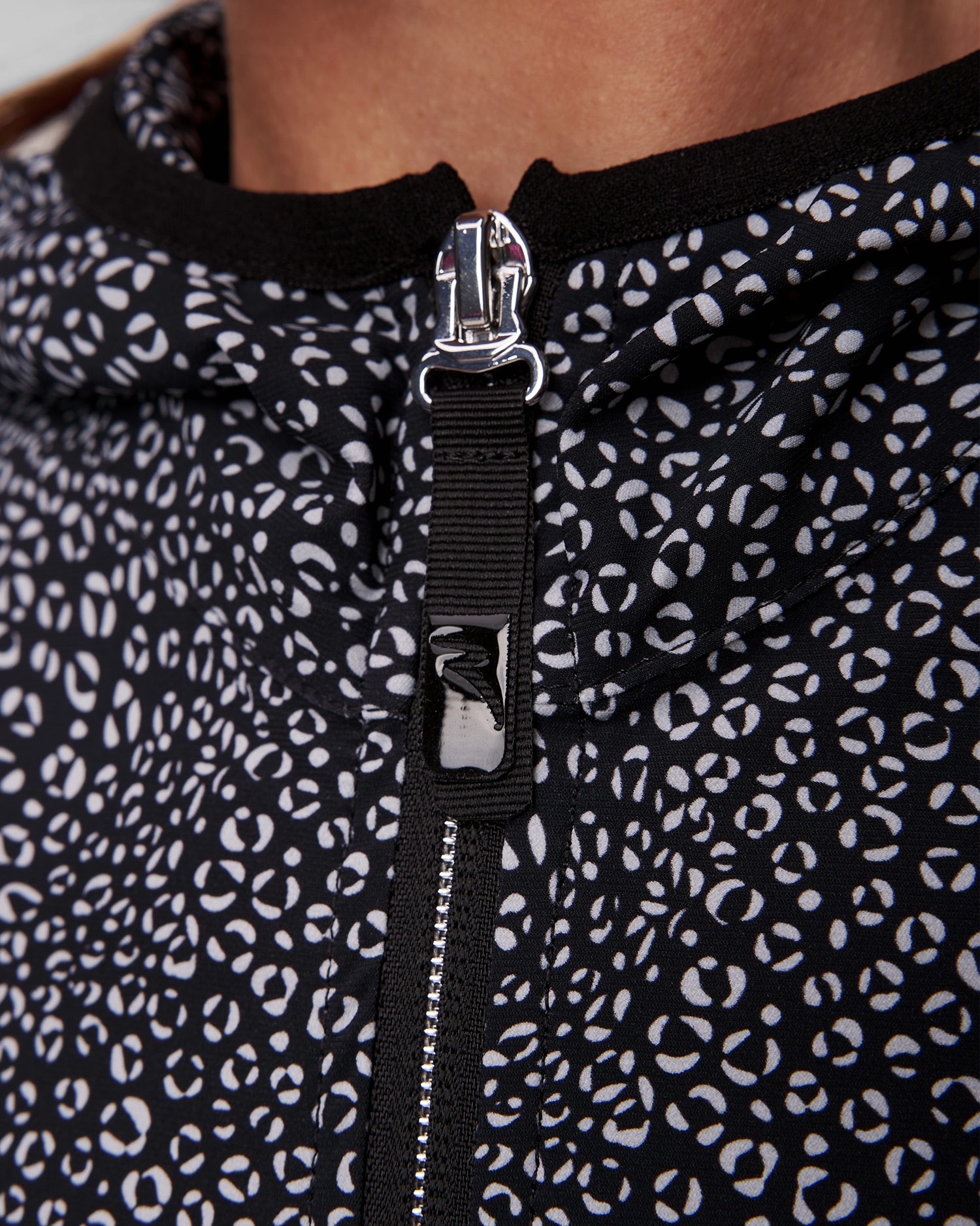 The Chervo Pasada technical sweatshirt is a practical piece that provides transitional protection and comfort even during more intense activity, thanks to its quick-drying DryMatic fabric. Geometrical stylish print on the whole piece. The sweatshirt is made of stretchy fabric that is coated with SUNblock filters, which protect from UV-A and UV-B rays Made from recycled polyester. Two-way zip closure. Side pockets with zip closures. Elastic hem on the hood and sleeves.