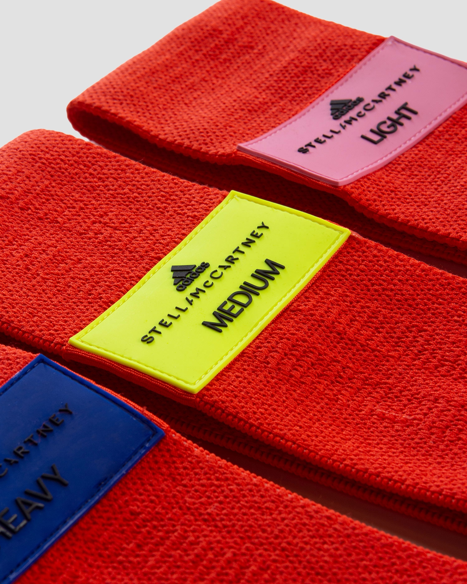 Les bandes de résistance ADIDAS BY STELLA McCARTNEY sont des bandes élastiques tricotées avec 3 niveaux de résistance différents. Les couleurs vous permettent de choisir une bande avec la force de résistance appropriée - légère, moyenne ou forte. Les bandes s'avéreront également utiles en voyage. La conception antidérapante maintient les bandes en place.